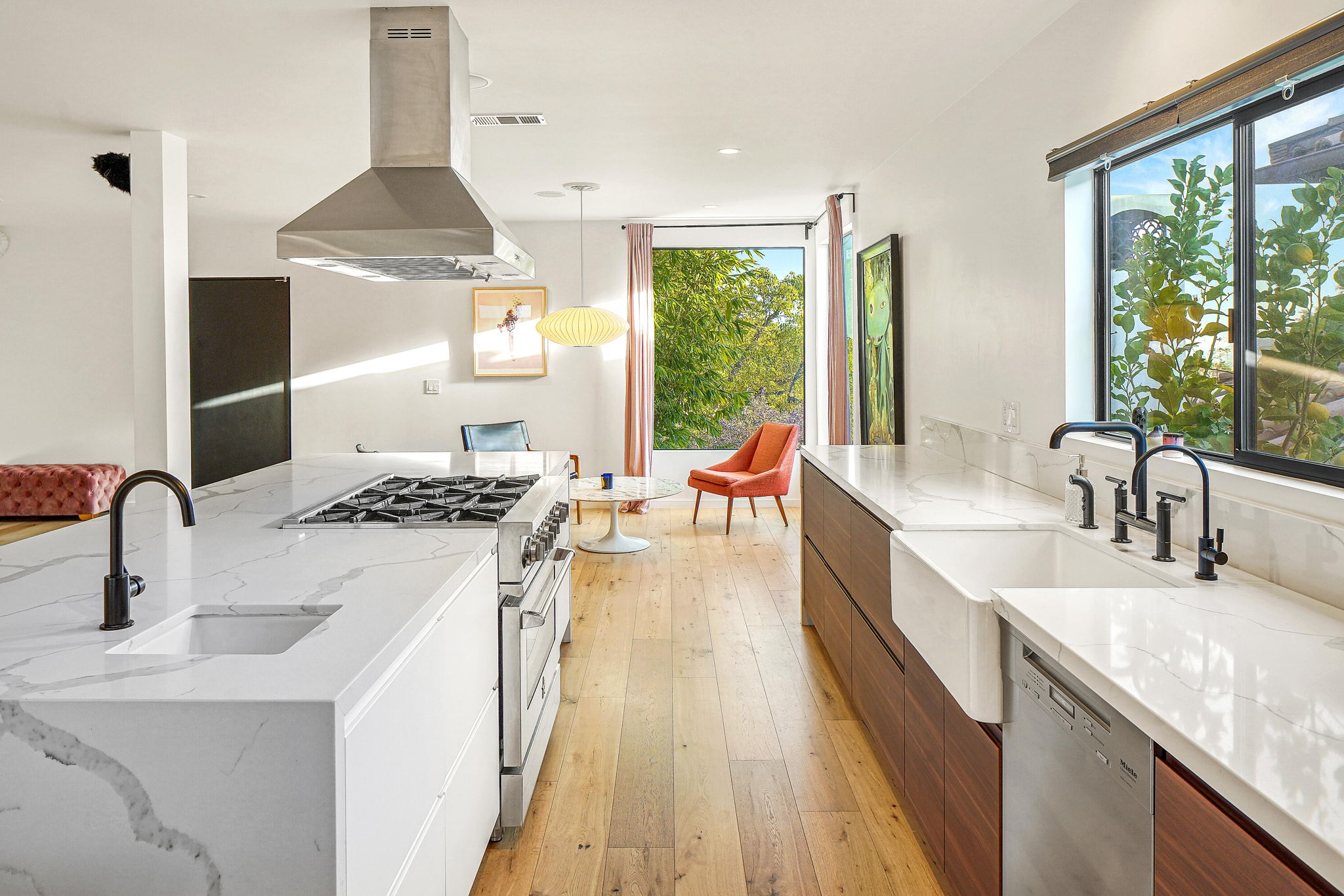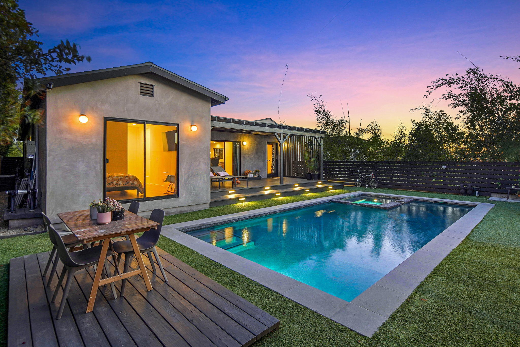 Located in the highly desirable Hillside neighborhood of Burbank, rests this stunning re-imagined home with detached ADU that defines California living. This newly renovated single-story property makes the most of its indoor/outdoor living spaces. Step inside the open concept main house, which boasts 3 bedrooms and 3 spacious bathrooms. A chef's kitchen featuring top-of-the-line stainless steel appliances opens up to the living room and dining area, perfect for entertaining. The owners suite offers a spa-like bathroom with oversized walk-in shower, separate soaking tub, walk-in closet, and serene views of the backyard. Sliding doors off the living room invites you to the outdoor deck which overlooks a private and gated pool and spa. Across the yard rests a 1,000+ sq. ft. permitted 1 bedroom and 1 bathroom ADU, which is the perfect in-law suite, music studio, home office, or income-producing rental unit that features its own gorgeous kitchen, loft, and full bath to complete this incredible property.