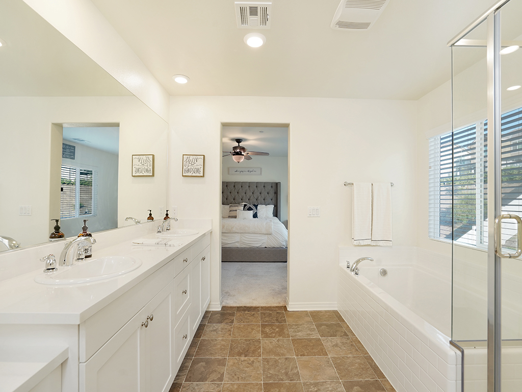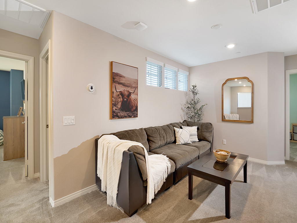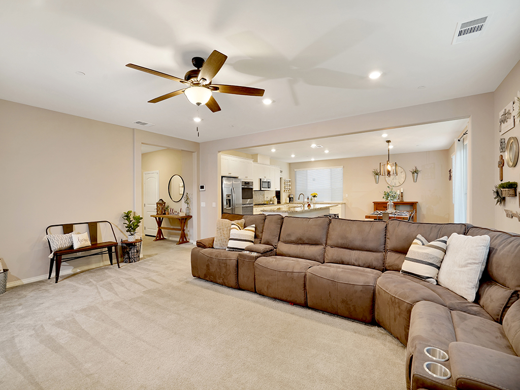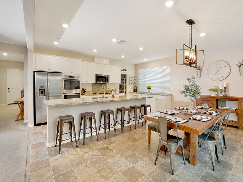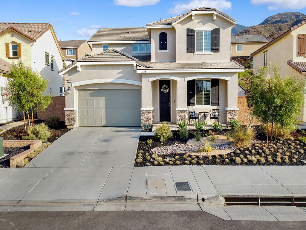 Nestled in the beautiful community of Sycamore Creek, this immaculate 4 bed/2.5 bath, 2,809 sq. ft. home is the perfect family abode. The newly landscaped front garden and smart entry set an impressive tone that continues throughout this Lennar Smart Home. This beautifully maintained property enjoys an expansive kitchen with granite countertops, an oversized island, and stainless steel appliances throughout, including a double oven, 5 burner gas stove, farmhouse sink, and separate sizable pantry. The open-concept first floor also boasts a spacious dining room and great room areas off of the kitchen with a gas fireplace and an abundance of natural light with sliding doors opening out to the large, private back garden. The first floor of this property has an office with a closet (5th bedroom if desired), a separate powder room, and entry to the 2-car garage with epoxy flooring and built-in storage. On the upper level of this beautiful home, the sweeping owner's suite enjoys mountain views and an accompanying en-suite with double vanity, tub and separate shower, and substantial walk-in closet. 3 further generously sized bedrooms, family bath, large laundry room, and cozy family room completes this wonderful home.