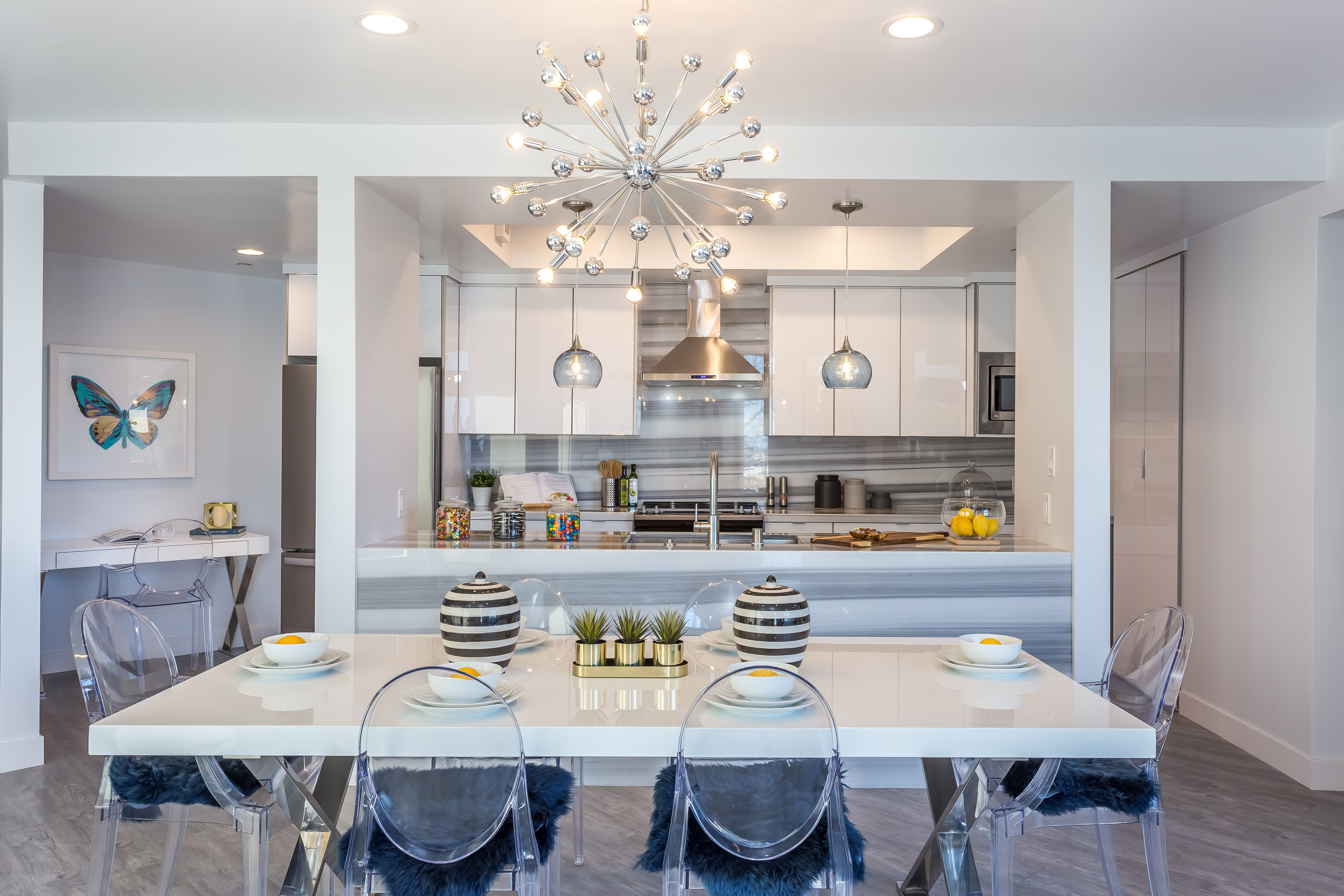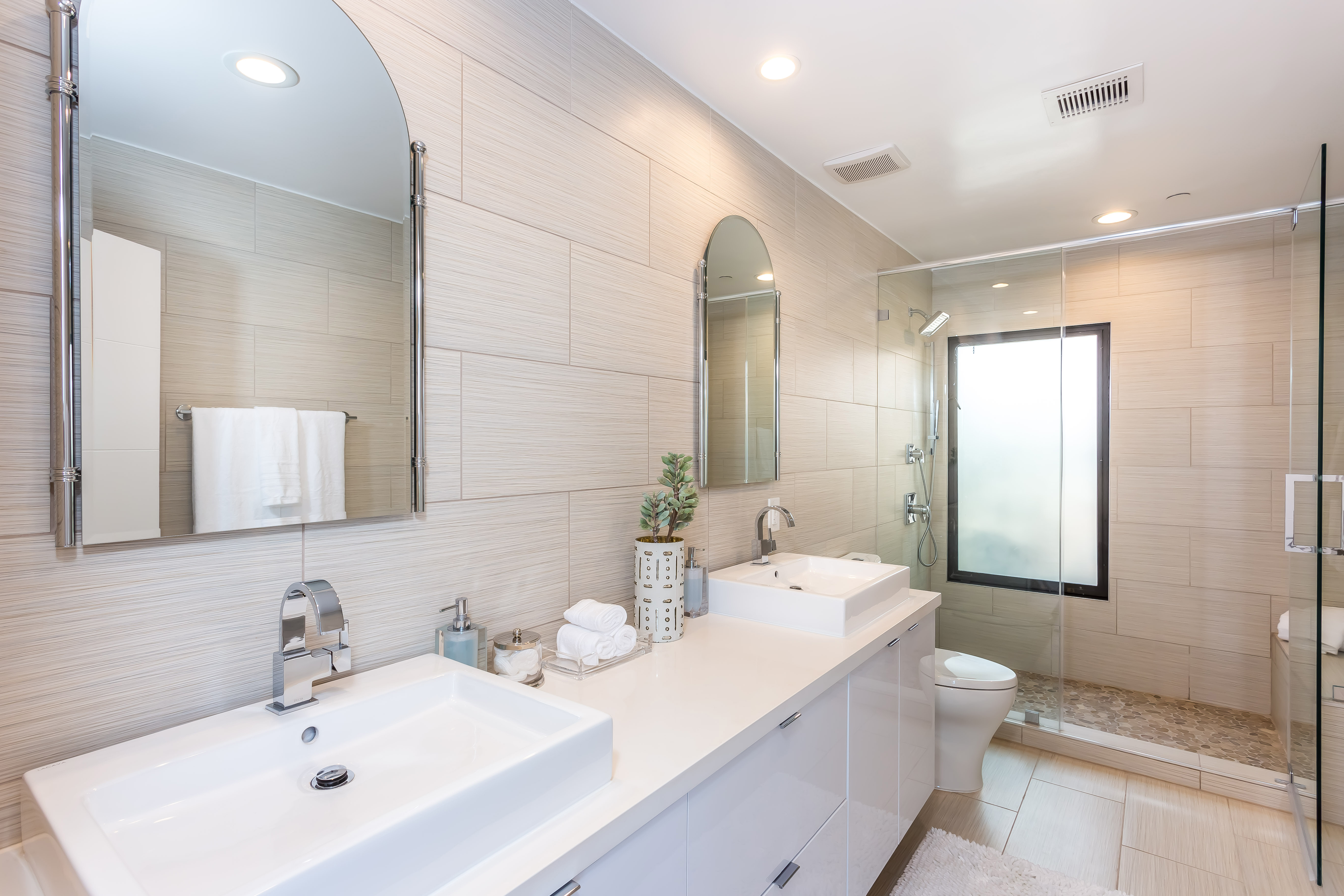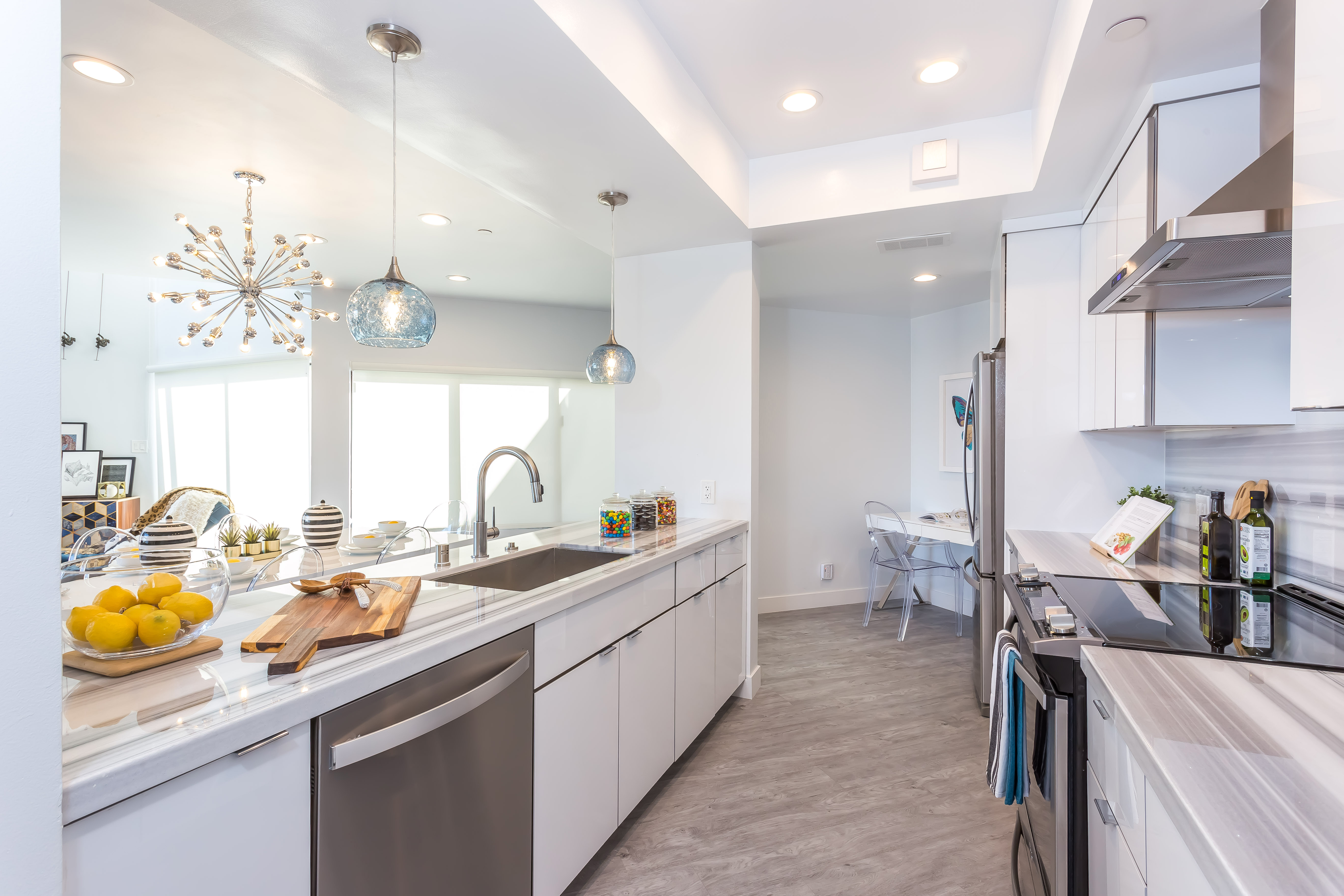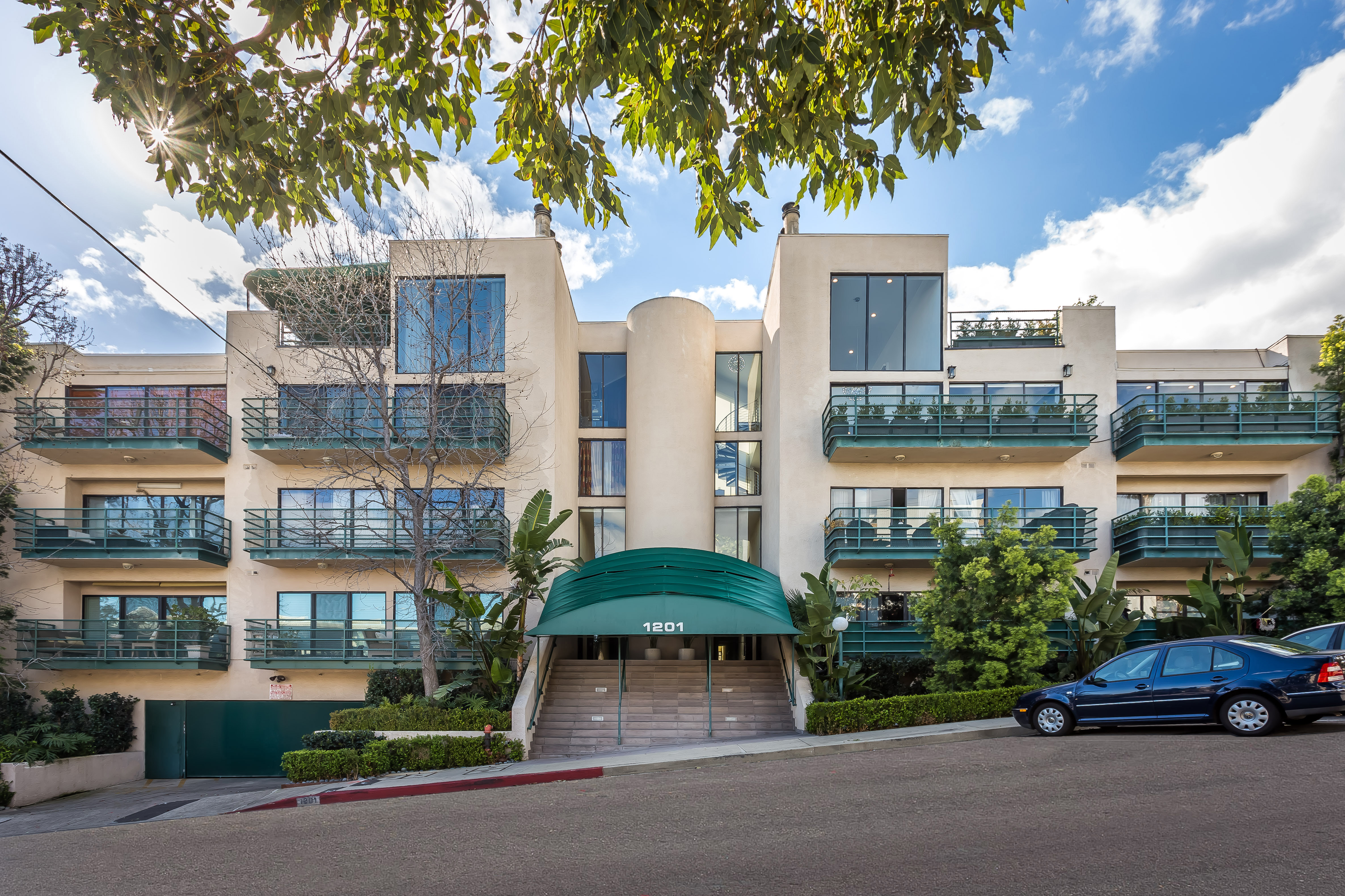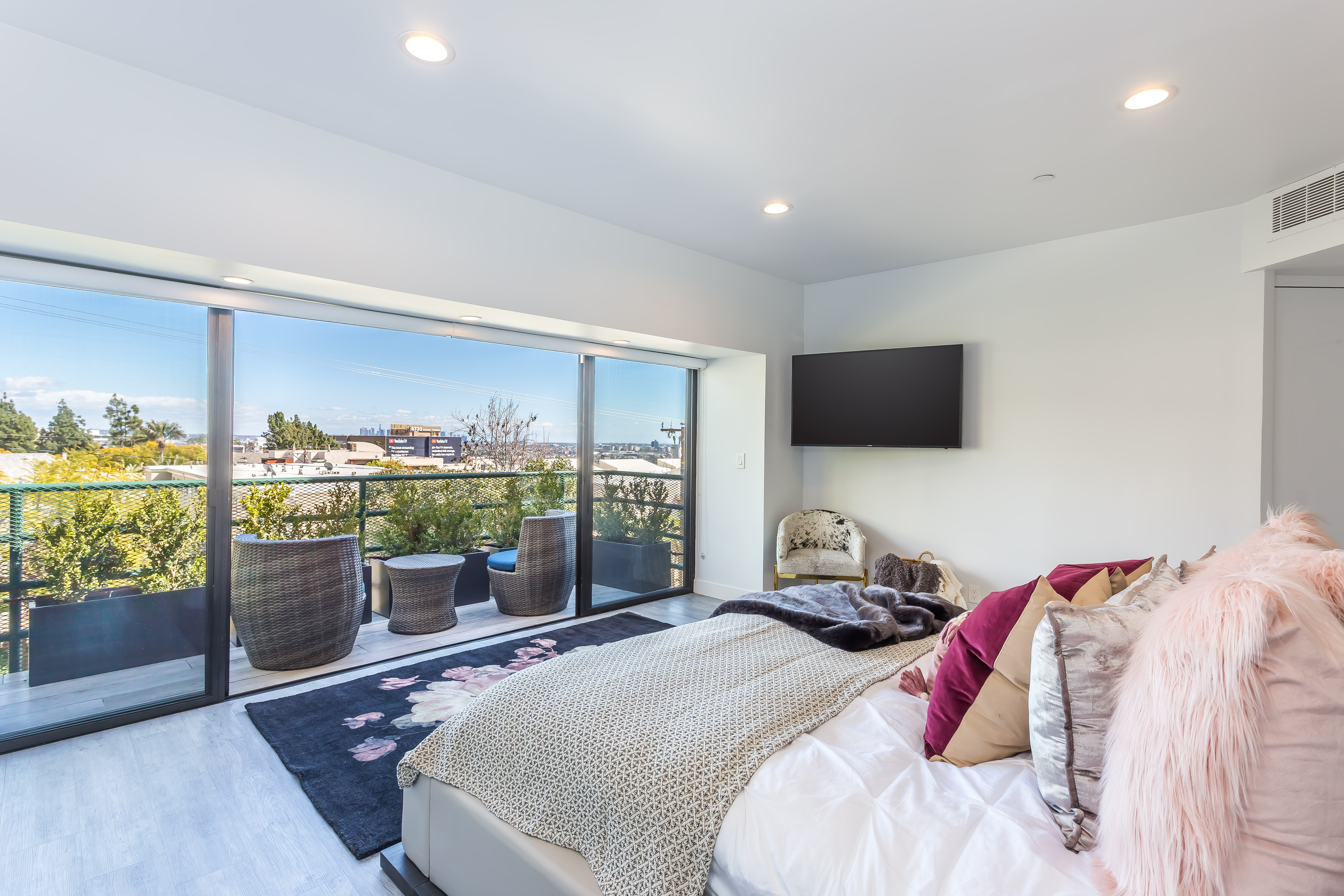 Perched above the famed Sunset Strip, this newly-remodeled designer penthouse boasts views of Downtown Los Angeles and 18' soaring ceilings. An oversized view terrace allows for plenty of outdoor living space, and flowing balconies from the main level bedrooms create spacious indoor/outdoor flow. A spacious owner's suite offers a custom walk-in closet and spa bathroom. High-end stainless steel appliances anchor the chef's kitchen, custom motorized shades, alarm system with security cameras and digital access to the front door all complete the thoughtful craftsmanship and detail. In-unit side by side washer/dryer, as well as side by side dedicated parking.