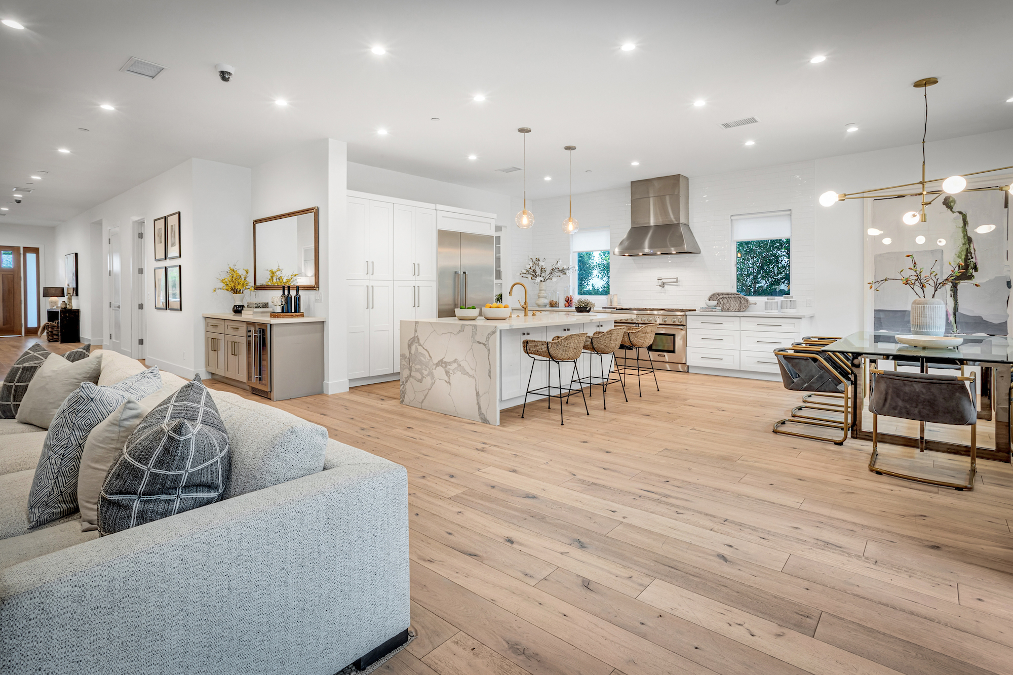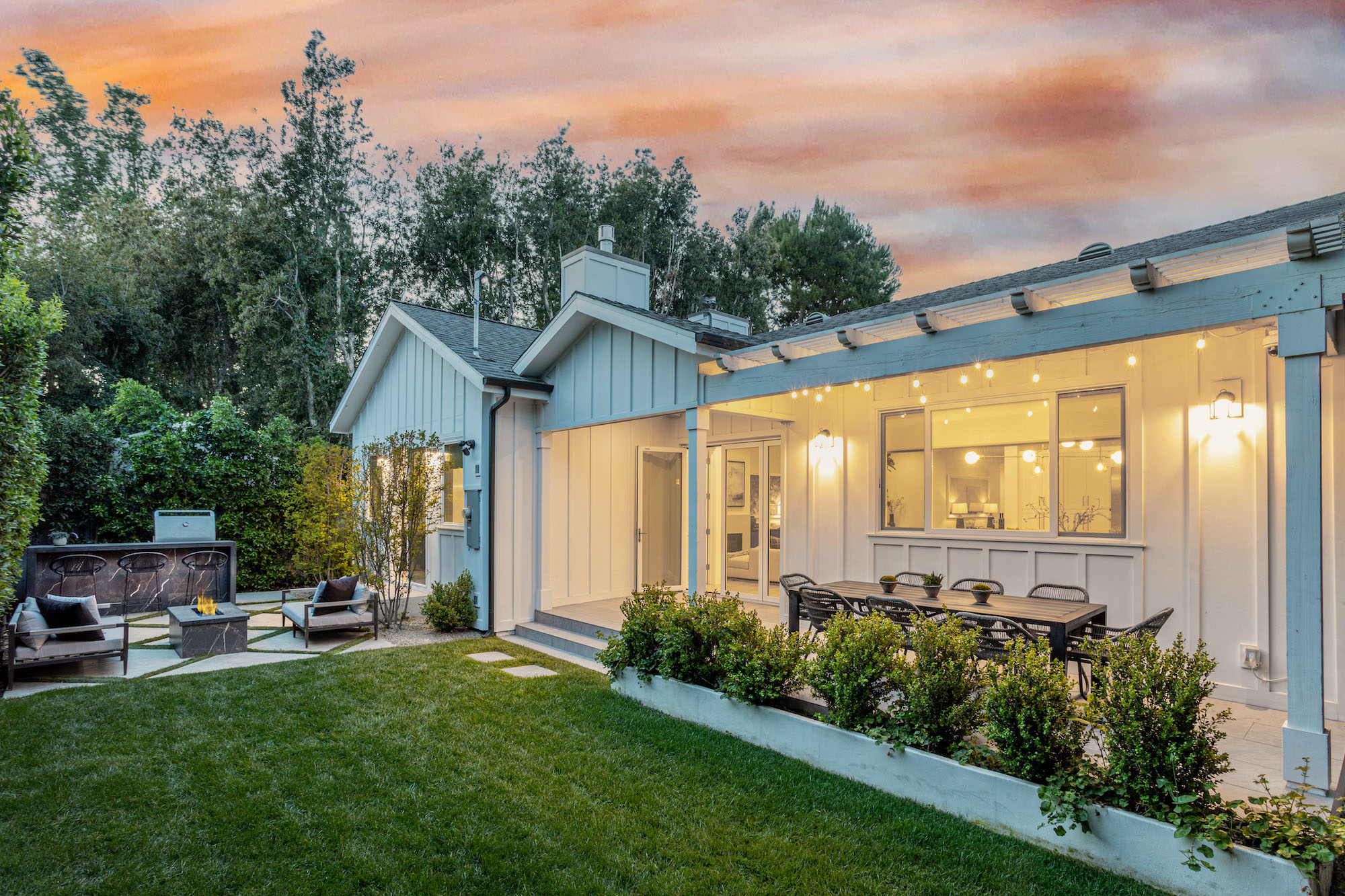 Introducing an impeccably designed 4BD/ 5BA single-story Cape Cod located in one of the most desirable neighborhoods of Valley Village. Enter the home to find soaring 10 ft ceilings with a grand entry and an open-concept floor plan. The spacious living room opens to the exquisite chef's kitchen complete with custom cabinetry, Thermador appliances, an extra large walk-in pantry and dining area that looks out to the backyard. Proceed to the spacious primary suite where you'll find vaulted ceilings, a fireplace and sliding glass doors that lead you out to the backyard complete with custom built in BBQ area and fire pit. The primary spa-like bath has a walk-in shower, soaking tub, dual vanities with plenty of storage, plus a large walk-in closet. The other 3 bedrooms are all en-suite and generously sized. The home is equipped with all the latest technology, including security cameras, built-in speakers, Nest Thermostat and more. Situated within the highly coveted Colfax Charter School District, a short drive to the 101 freeway and moments to top dining and shopping, this home is truly exceptional.
