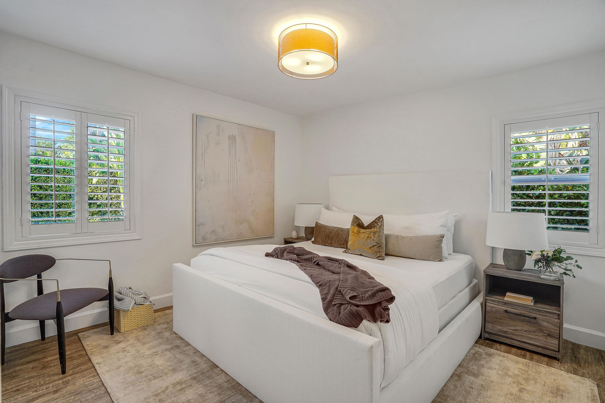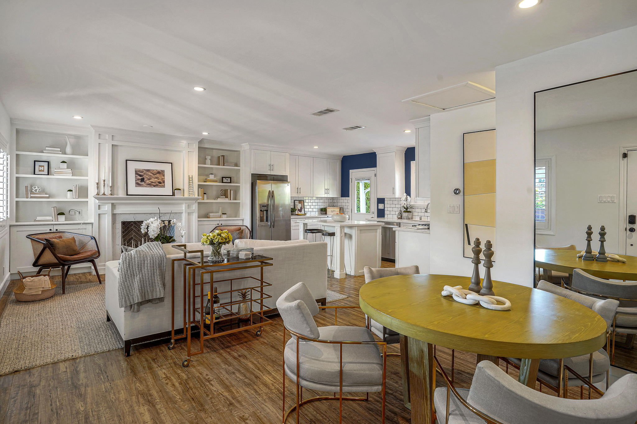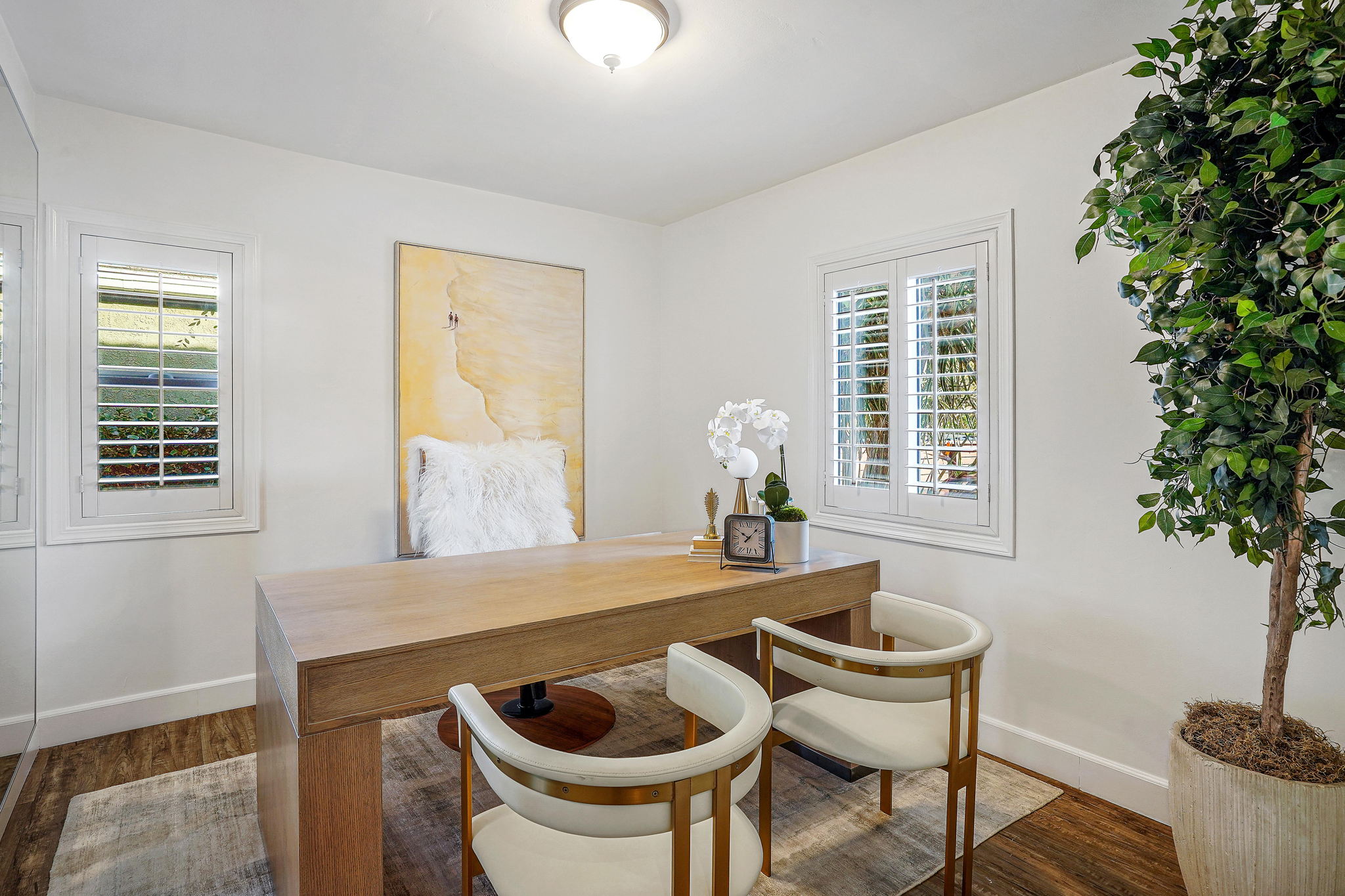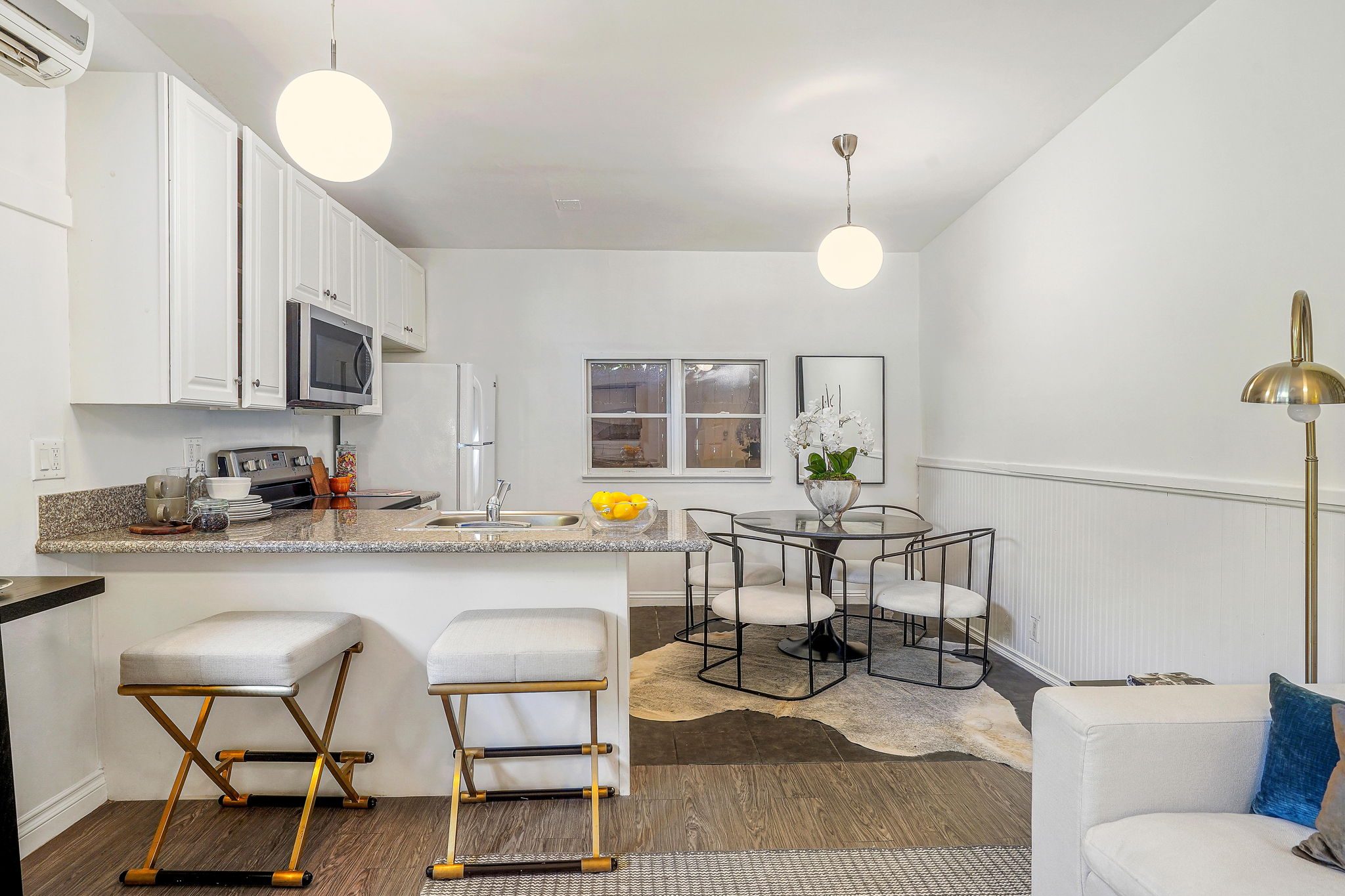 Nestled behind a privately gated and beautifully landscaped front yard in Sherman Oaks, this gorgeous three-bedroom home with a detached one-bedroom guest house is bursting with curb appeal. The open floor plan seamlessly flows from the living room, featuring a stunning decorative fireplace and built-in bookshelves, to the remodeled chefs kitchen replete with stainless steel appliances, quartz countertops with subway tile backsplash, and soft-close cabinetry. Large windows and recessed lighting throughout provide an abundance of natural light. Three bedrooms are conveniently located down the hall. The modern bathroom has a walk-in, frameless floor-to-ceiling glass shower lined in white quartz. Step into the spacious backyard oasis lined with tall ficus trees. The separate guest house features its own address and entrance. The unit is completely fenced in with its own private, lusciously landscaped yard, and can also be conveniently accessed through the main houses backyard via an incognito fenced gate. Inside opens up to a cozy living room and showcases a modern kitchen and a full, updated bathroom. The serene bedroom has a sliding door facing the private yard, featuring gorgeous hibiscus plants and a mature Mandarin tree. Updates to the property include new double-pane windows, energy-efficient shutters, a tankless water heater, attic insulation, a Nest thermostat, and a new washer/dryer.