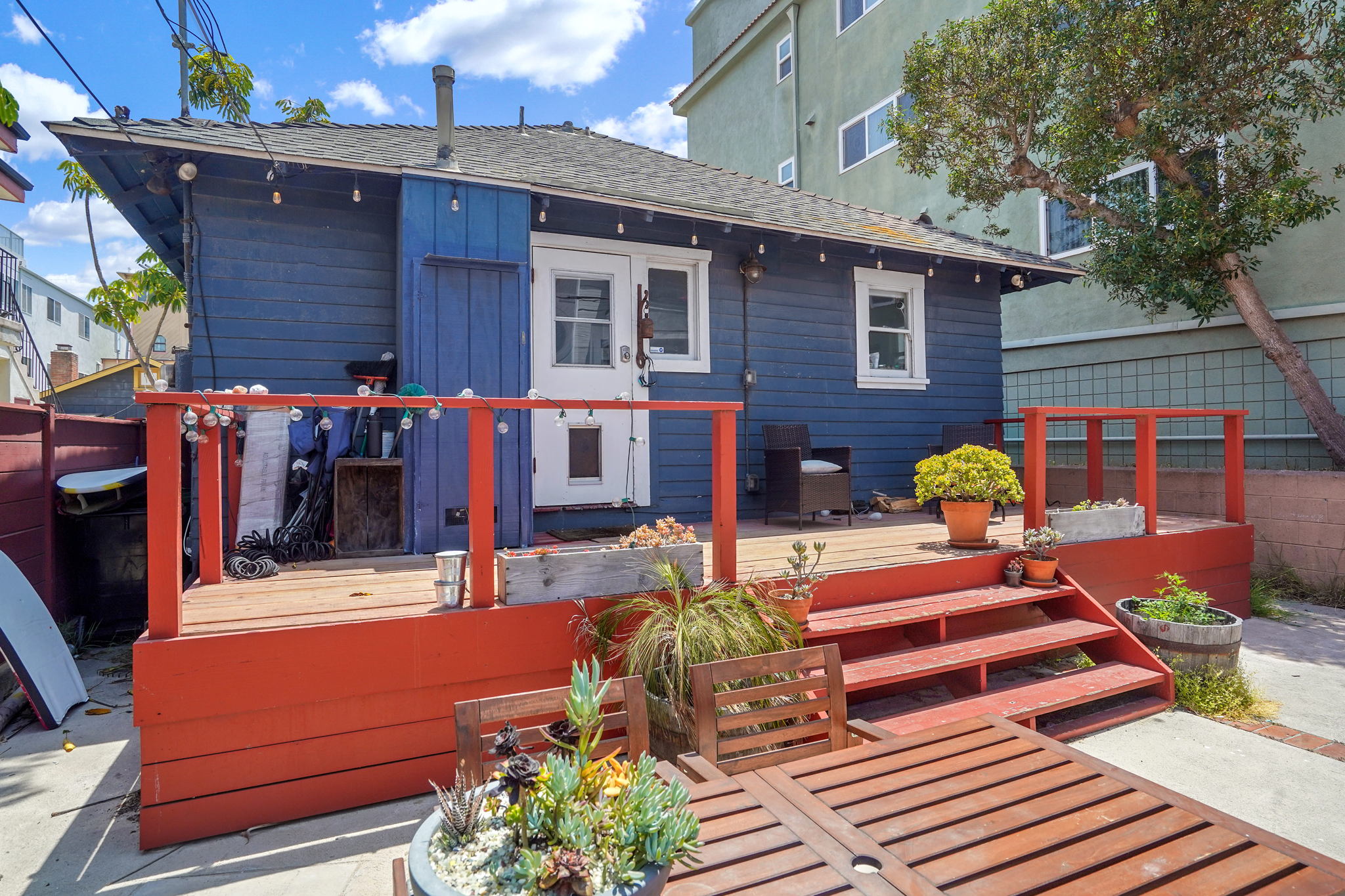 Rare development opportunity! This original Sears Craftsman home is located just two doors down from the sand and walking distance to the Venice canals. The highly valuable LAR3 zoning for this property provides countless development opportunities and potential. This charming residence features two bedrooms with en-suite bathrooms, original hardwood floors, built-ins throughout, a laundry area with a washer and dryer off the kitchen, and large windows which flood the home with an abundance of natural light. The custom-made front gate boasts an iconic Burt Reynolds mural by esteemed artist, Jonas Never. Expansive sundeck overlooks the spacious backyard and designated parking area for 3 cars. Sale includes renderings and architectural plans (unapproved, 2014) for a 3,800 sq. ft three story duplex first story consists of a 1 bd/1ba apartment, two car garage and dipping pool, second and third story consists of a 3 bd/3ba main residence. Property can be delivered vacant or with tenants in place.