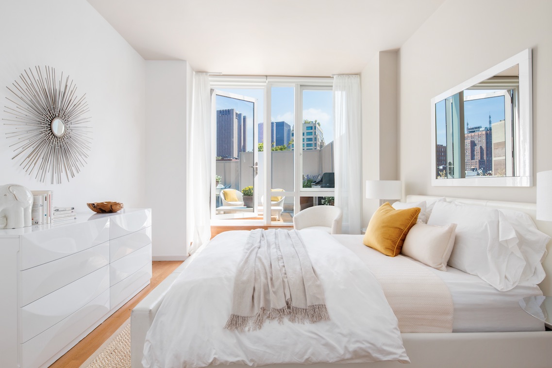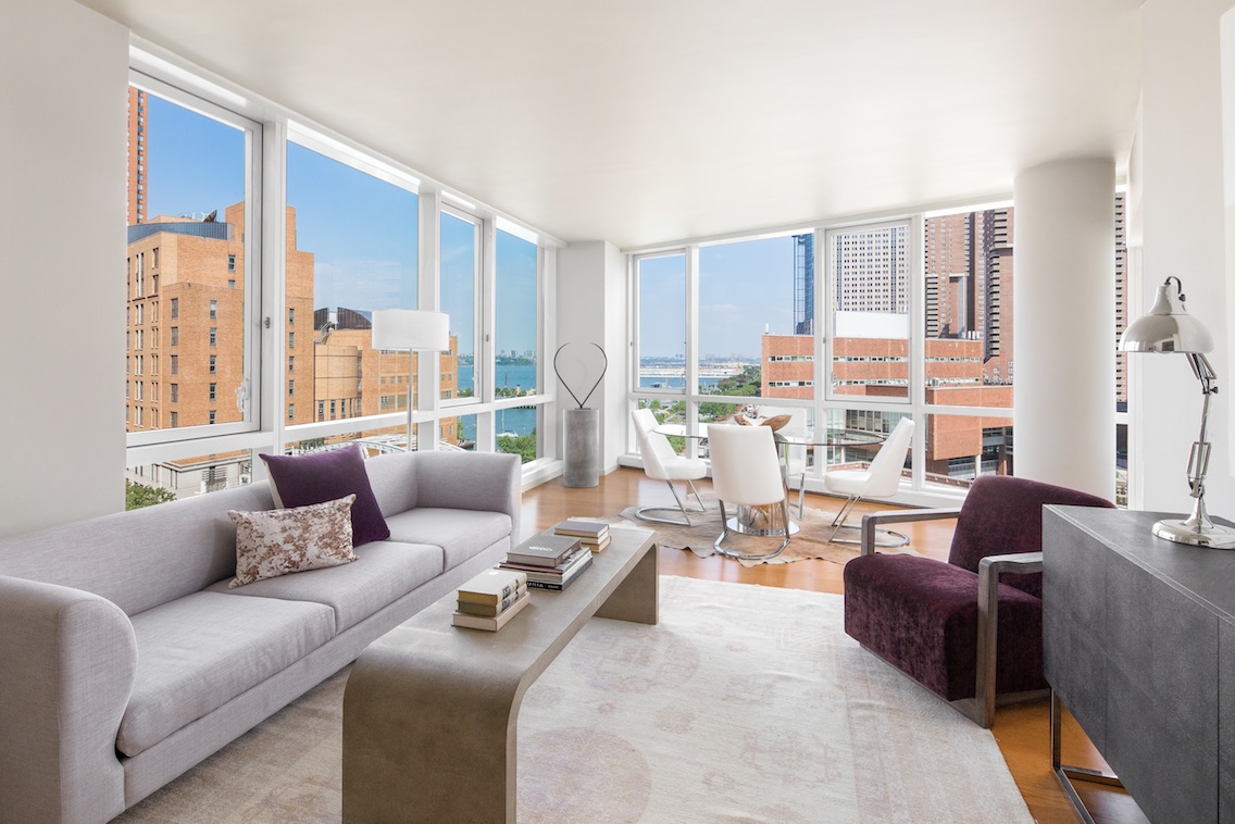 Featuring one of the largest private terraces in the building, apartment 8D is a corner 2 bed / 2 bath condo on coveted 200 Chambers Street. There are approximately 1,400 interior square feet and an additional 890 square feet of private outdoor space. The chefs kitchen, with Bosch, Sub Zero, and Miele appliances, is surrounded by windows with an open view over Chambers Street and the Hudson River. The oversized master bedroom is surrounded with all glass windows facing north, west and east and has direct access to the home's private terrace.