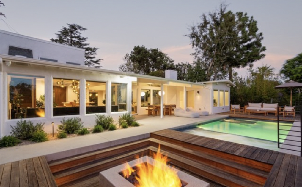 Set on a private cul-de-sac, this smooth white stucco mid-century gem provides the perfect inspiring escape - full of peace, quiet, high-end finishes, and style. Step inside to discover an open layout that's ideal for entertaining, showcasing all-new wood floors and baseboards, complementary colors to stimulate creativity, and an abundance of light, air, and space. From the exposed beams, slanted roof lines, clerestory windows, open living areas, and designer finishes / light fixtures, this home is truly the mid-century modernist s dream. In an area lush with trees and wildlife, enjoy your breathtaking views of the canyon and LA cityscape from the peaceful zen of your own home, or impress your guests with the photogenic view from every window. Quickly claim the title of hottest host with your custom wood-burning fireplace with Mutina tile and terrazzo-slabbed hearth in your living room, and a custom natural gas fire pit in your sunken outdoor living room. Regardless of which cozy, stylish space you re enjoying, make sure to set the mood with your built-in sound system throughout every area of the home, including the backyard, living room, primary bedroom, and office. Preparing meals is a pleasure with your full range of premium Bertazzoni appliances.