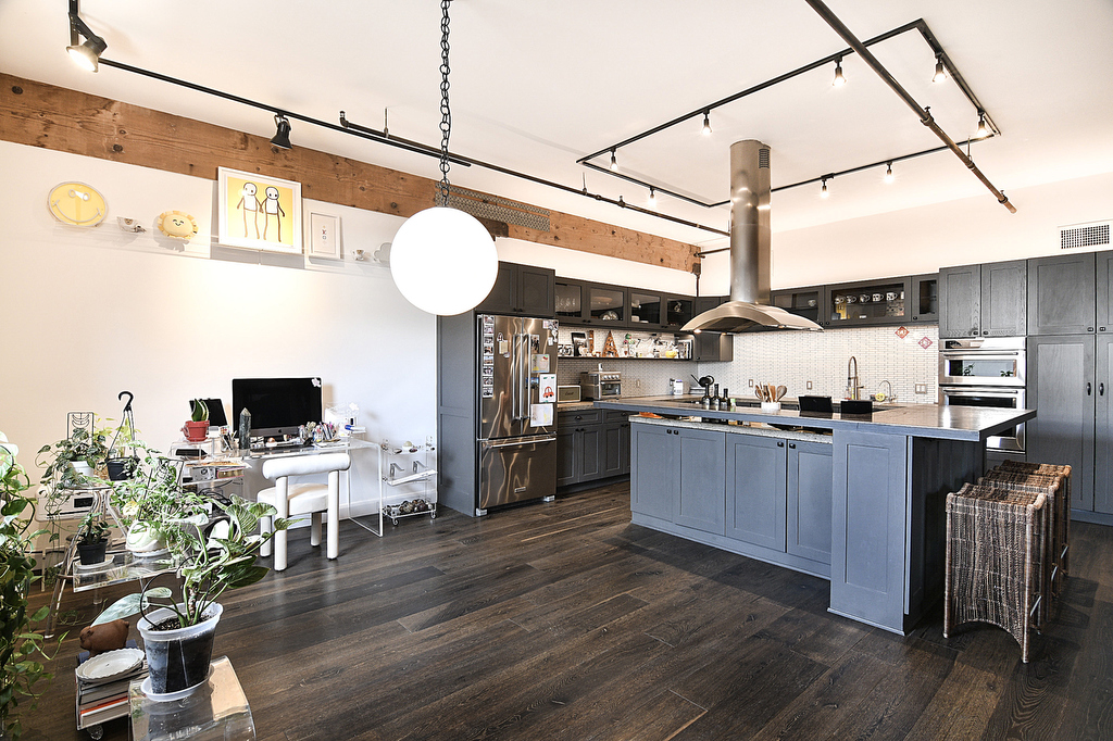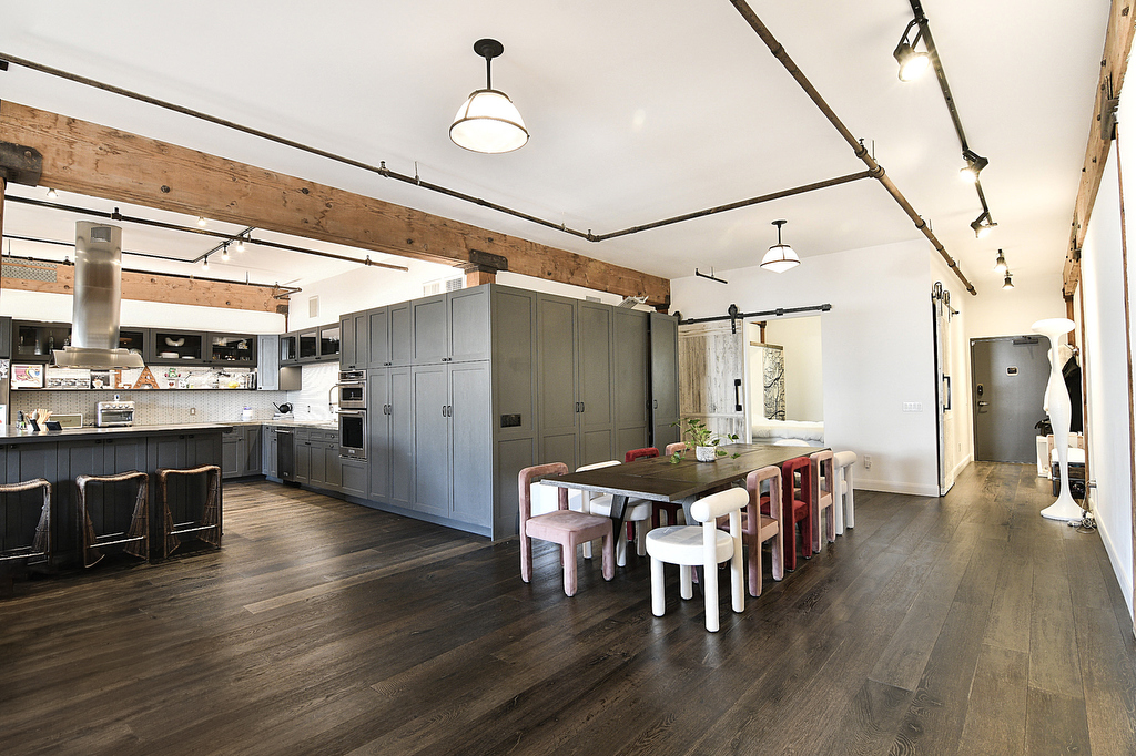 Discover a rare opportunity to own a beautifully designed live/work loft in the desirable Toy Warehouse building, nestled in the heart of the Arts District. This spacious residence seamlessly blends original rustic features like brick walls and wood beams with modern amenities and design. The sizable chef's kitchen, featuring concrete countertops and a custom industrial steel bar top, effortlessly connects to the expansive dining and living areas, ideal for entertaining. With two designer-finished bedrooms and bathrooms, ample closet space, high ceilings, and storage including a large unit in the underground garage, practicality meets elegance. Much like the neighboring shops and restaurants of the bustling Arts District, this loft preserves its original character while introducing inviting new designer touches throughout.