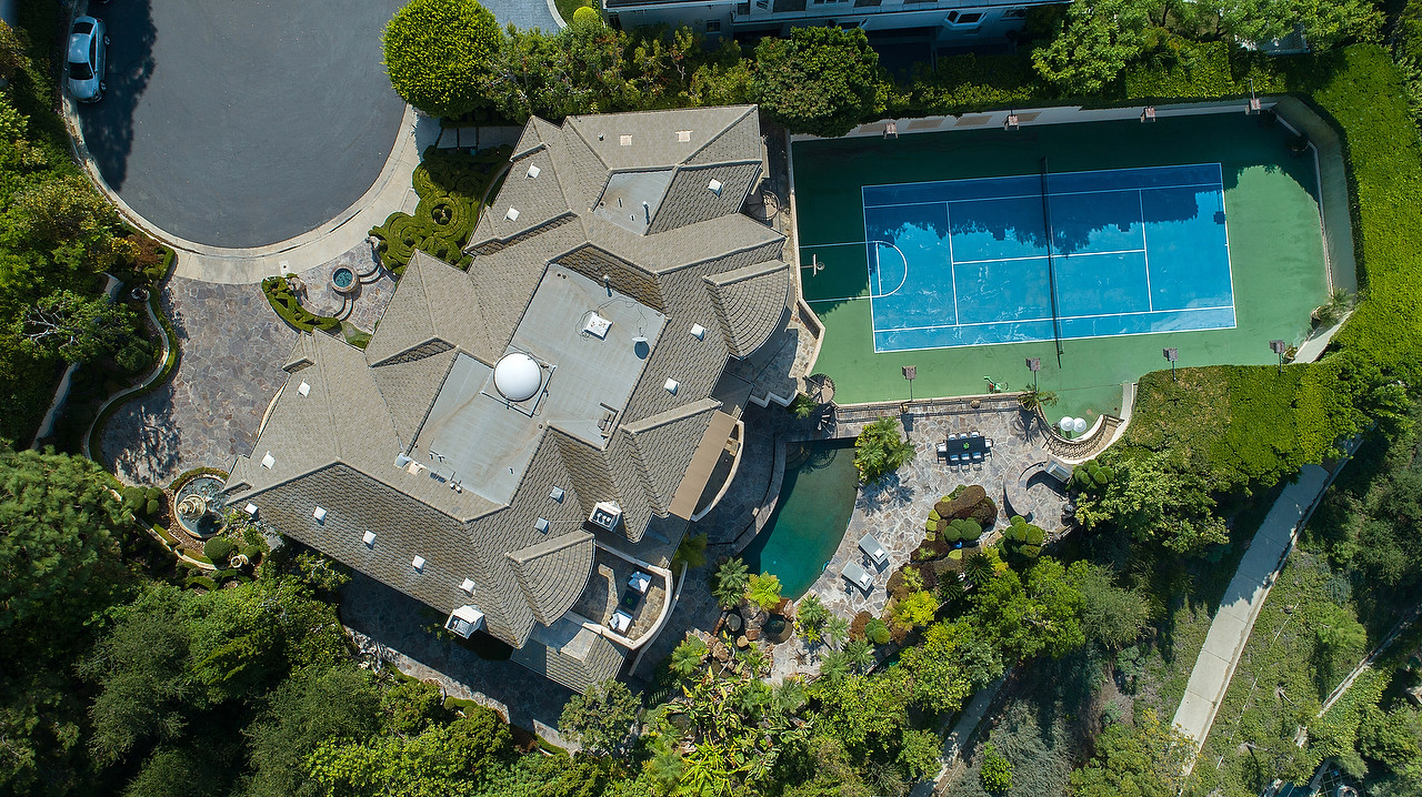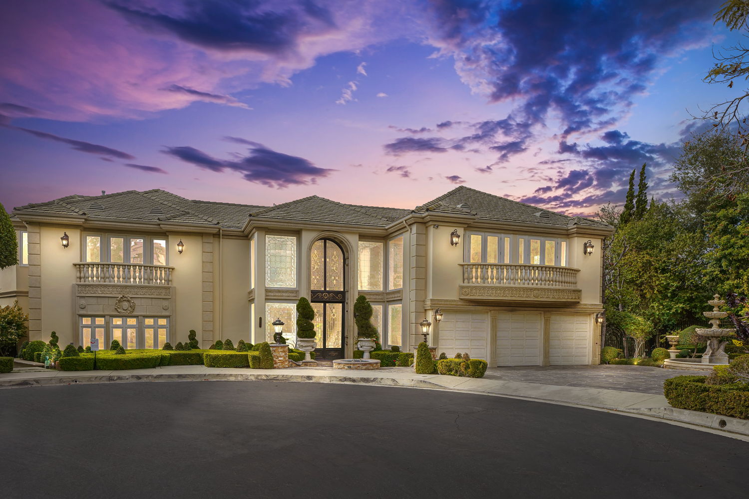 Extraordinary 10,000+ sq. ft. Italian Villa with tennis court and beautiful canyon/city views is situated on a 26,000+ sq. ft. lot at the end of a private cul-de-sac in the prestigious guard-gated community of Bel Air Crest. Completely renovated, this estate exudes style & sophistication with gorgeous ornate detailing & walls of French doors that open to stunning terraces & overlook lush vistas. A 2-story beveled glass & iron wrought front door leads to the impressive formal foyer with dual sweeping staircases, marble floors, & hand-painted ceiling with domed skylight. Stunning living room with intricate Venetian plaster & coffered ceilings, formal dining room, & chef’s kitchen with oversized center island & gourmet appliances. Upstairs is a luxurious master suite with dual oversized baths & walk-in closets, sitting room/gym, sauna, & an additional 3 bedroom suites. Expansive lower-level entertaining space with games room & bar, abundant patio space, and private lagoon-style pool/spa.