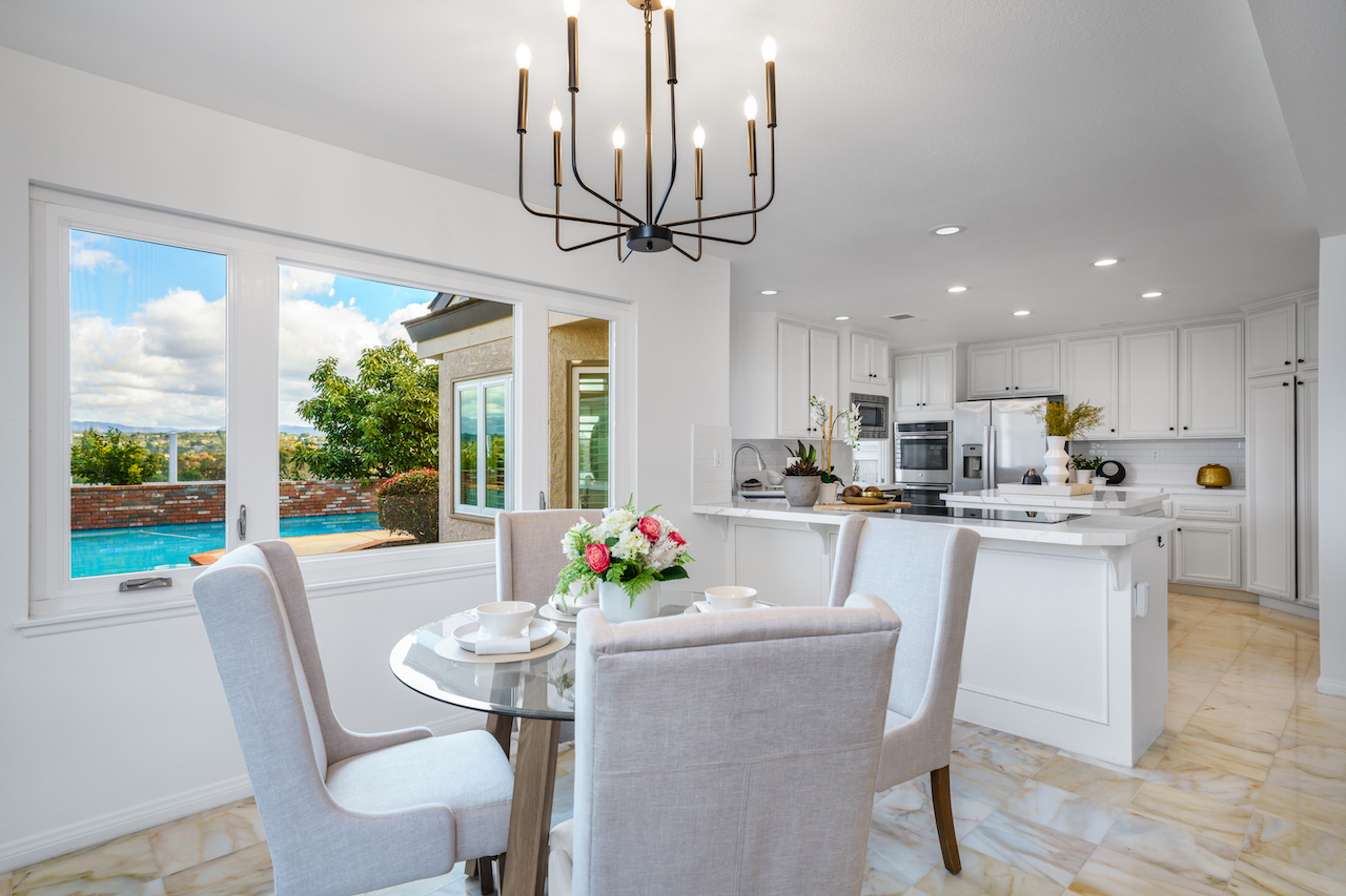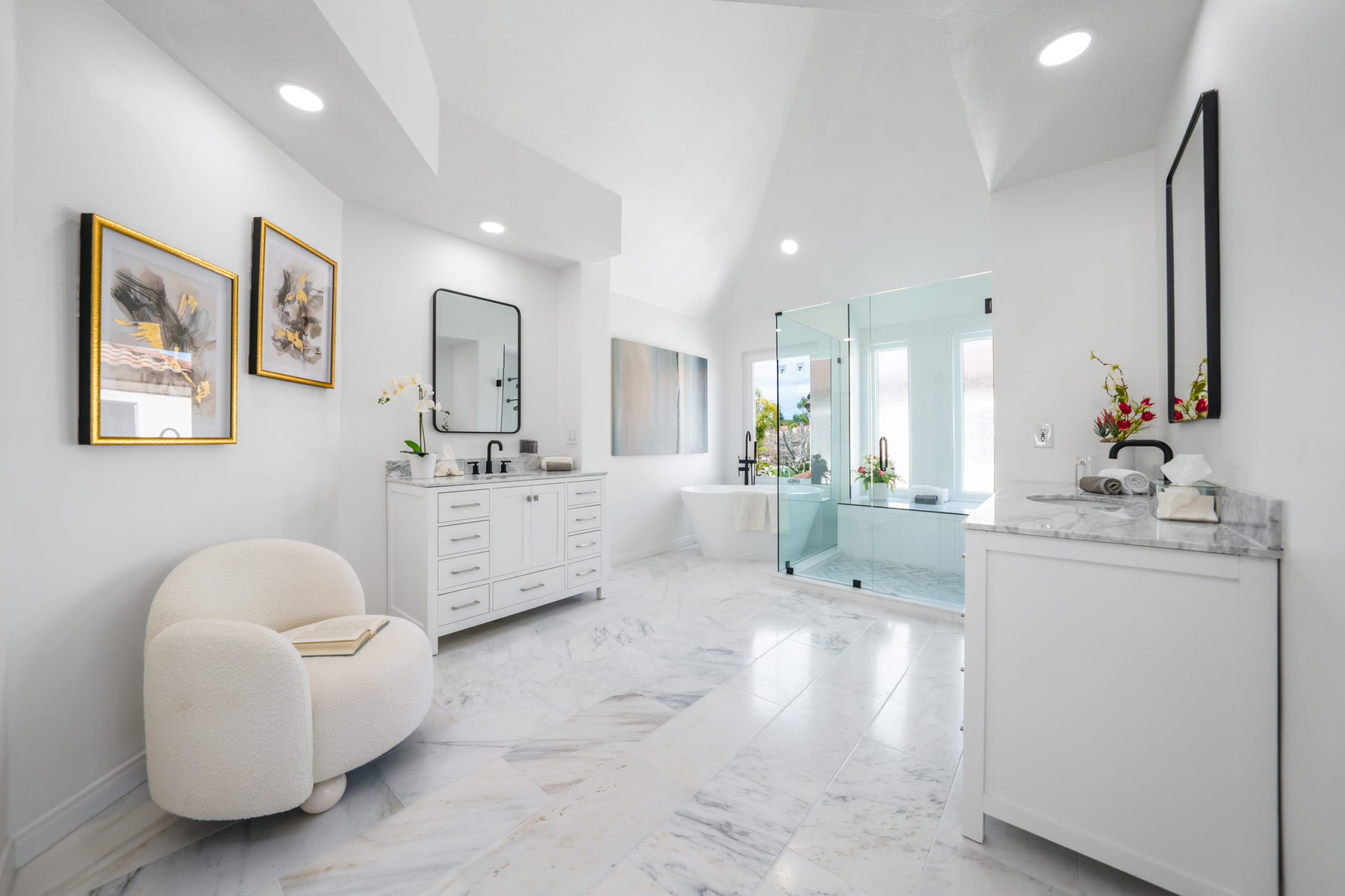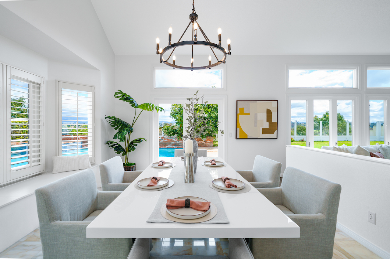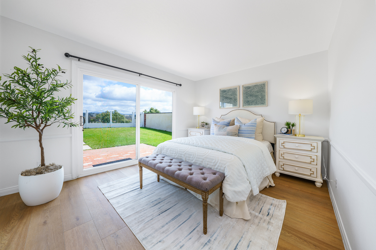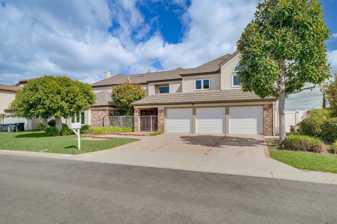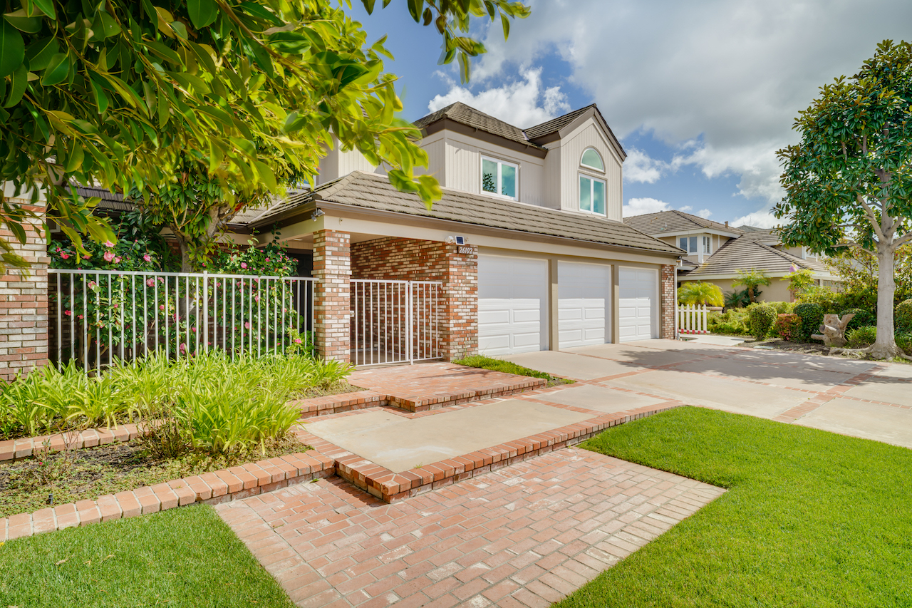 Immerse yourself in luxury at this exquisite residence in the esteemed Nellie Gail Ranch community of Laguna Hills. Meticulously updated, this home seamlessly blends elegance with contemporary comforts. Upon entry through a marble-tiled foyer, revel in the light-filled, open floor plan adorned with low-E, double-paned, tempered glass windows and doors. The state-of-the-art chef's kitchen boasts sleek quartz countertops, a central island, modern white cabinets with chic hardware, and brand-new stainless steel appliances. Flowing effortlessly into the dining and family room areas, the kitchen creates a welcoming living space anchored by a newly revamped fireplace. The ground level encompasses expansive living and dining rooms with soaring two-story ceilings, a convenient downstairs bedroom with an en-suite bathroom, and a dedicated home office. Upstairs, the sunlit primary suite features a spacious walk-in closet and a fully renovated bathroom with brushed marble floors, a custom frameless glass shower, a standalone soaking tub, and new vanities with Carrara marble countertops. Additional living areas include a generous bonus room, a junior suite with a private bathroom, and two bedrooms sharing a full bathroom. Outdoor entertainment is a delight with a newly replastered pool and spa, lush greenery, concrete decking, in-ground irrigation, and captivating views. Thoughtfully updated for comfort and tranquility, this home boasts a new roof, copper piping, elegant lighting fixtures, luxury vinyl flooring, recessed lights, custom cabinetry, smart home features, and fresh paint throughout. Experience the epitome of luxury living in a peaceful setting.