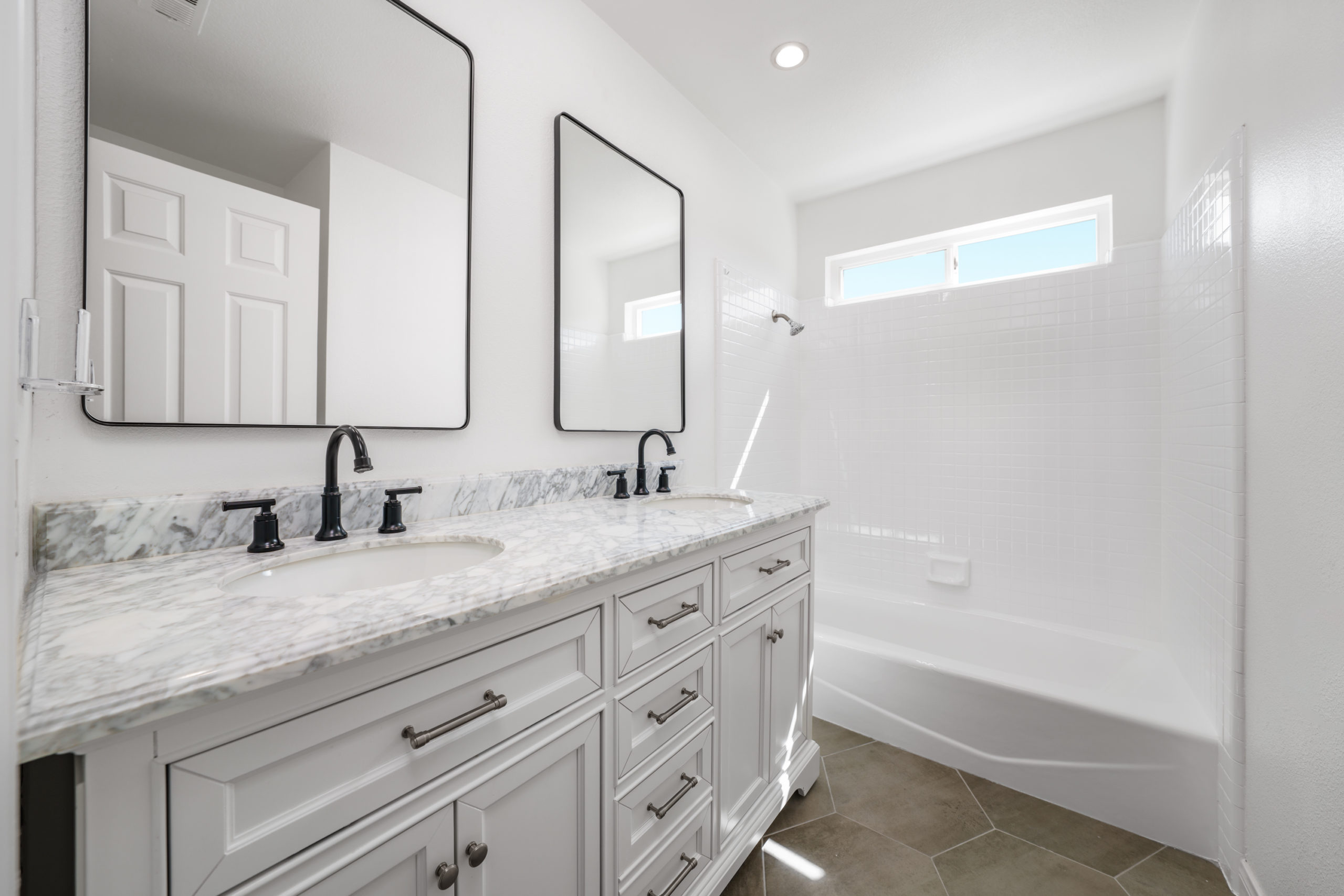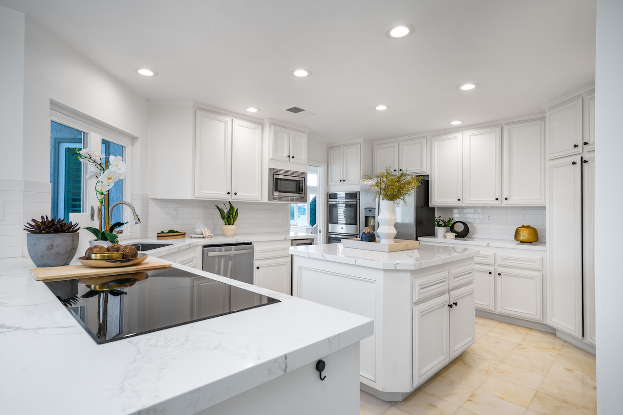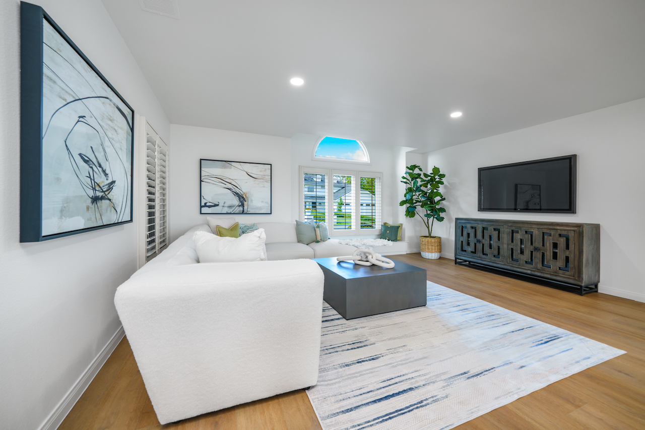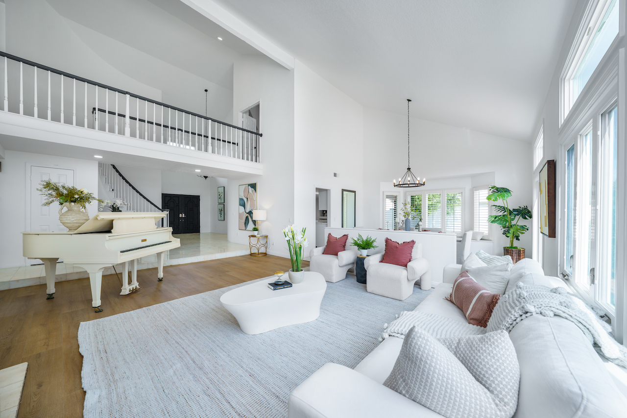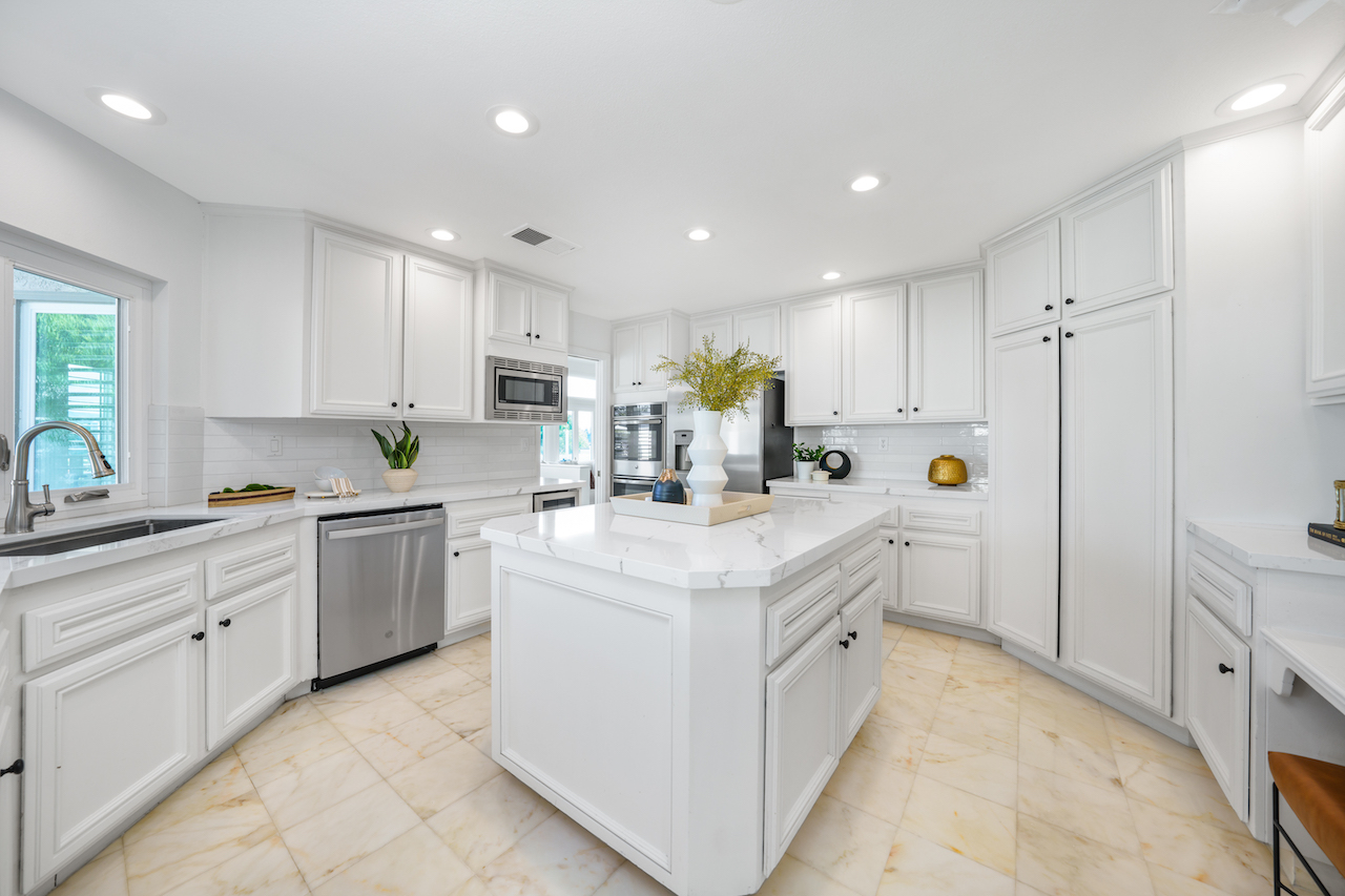 Immerse yourself in luxury at this exquisite residence in the esteemed Nellie Gail Ranch community of Laguna Hills. Meticulously updated, this home seamlessly blends elegance with contemporary comforts. Upon entry through a marble-tiled foyer, revel in the light-filled, open floor plan adorned with low-E, double-paned, tempered glass windows and doors. The state-of-the-art chef's kitchen boasts sleek quartz countertops, a central island, modern white cabinets with chic hardware, and brand-new stainless steel appliances. Flowing effortlessly into the dining and family room areas, the kitchen creates a welcoming living space anchored by a newly revamped fireplace. The ground level encompasses expansive living and dining rooms with soaring two-story ceilings, a convenient downstairs bedroom with an en-suite bathroom, and a dedicated home office. Upstairs, the sunlit primary suite features a spacious walk-in closet and a fully renovated bathroom with brushed marble floors, a custom frameless glass shower, a standalone soaking tub, and new vanities with Carrara marble countertops. Additional living areas include a generous bonus room, a junior suite with a private bathroom, and two bedrooms sharing a full bathroom. Outdoor entertainment is a delight with a newly replastered pool and spa, lush greenery, concrete decking, in-ground irrigation, and captivating views. Thoughtfully updated for comfort and tranquility, this home boasts a new roof, copper piping, elegant lighting fixtures, luxury vinyl flooring, recessed lights, custom cabinetry, smart home features, and fresh paint throughout. Experience the epitome of luxury living in a peaceful setting.