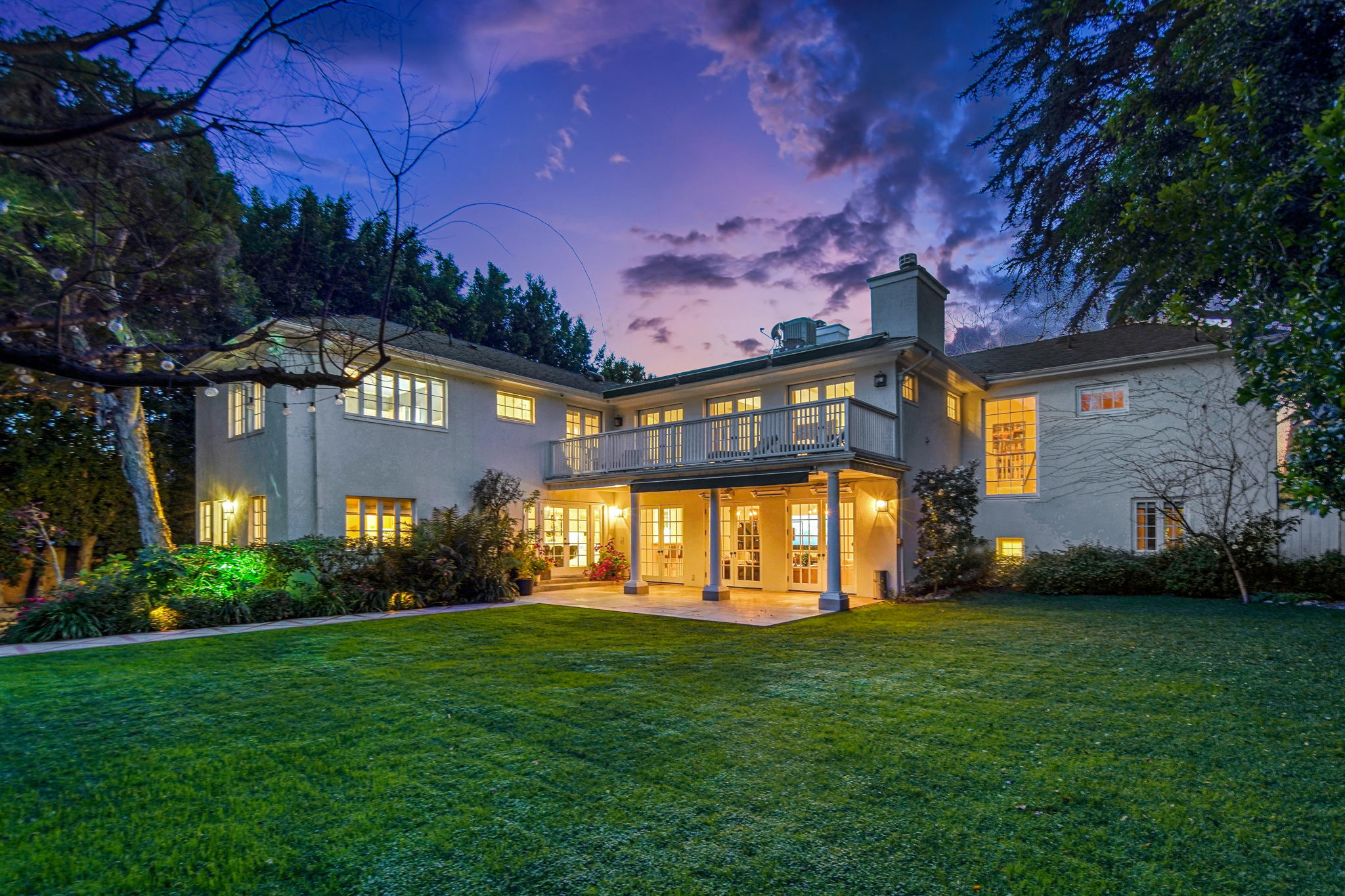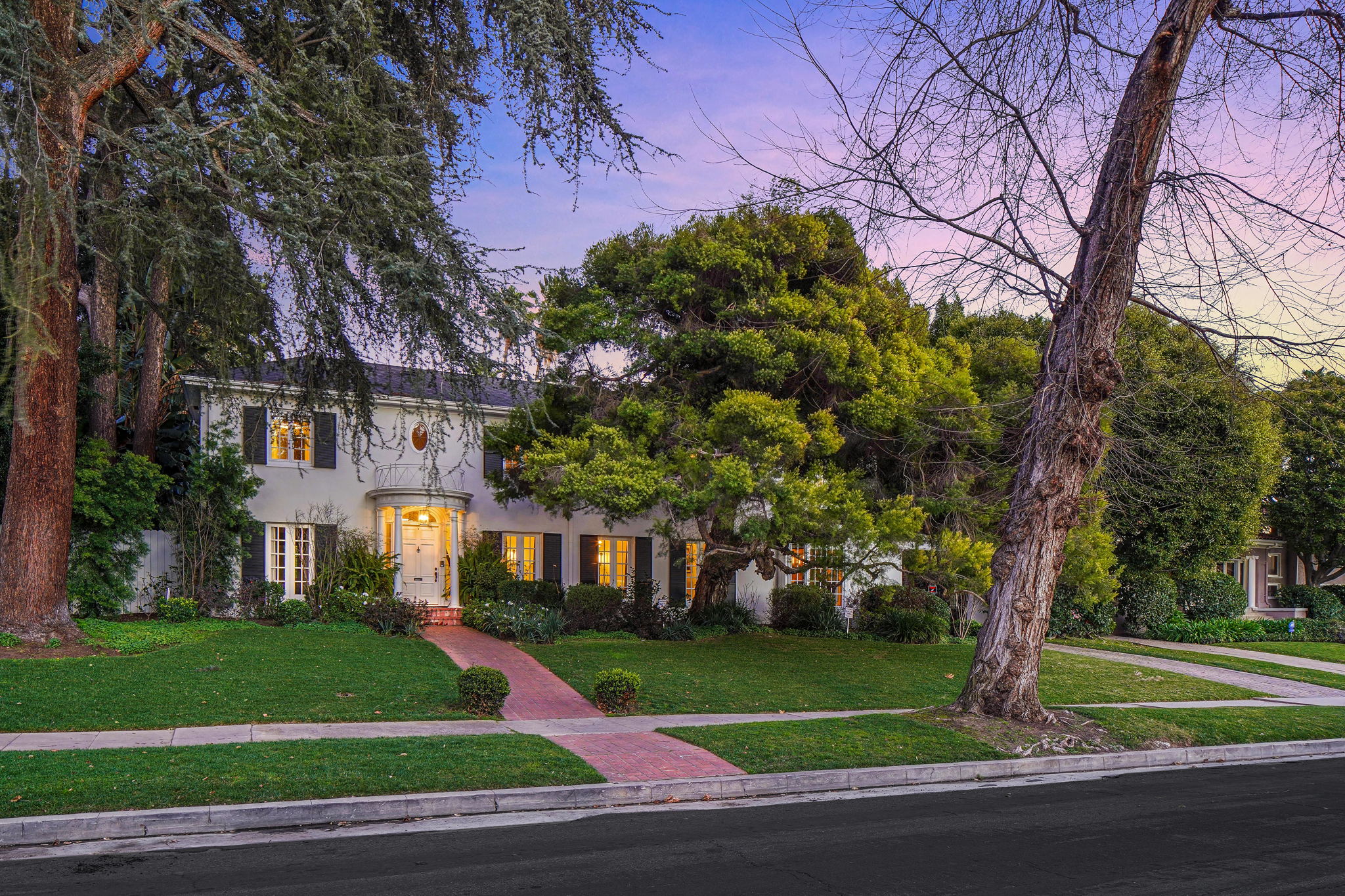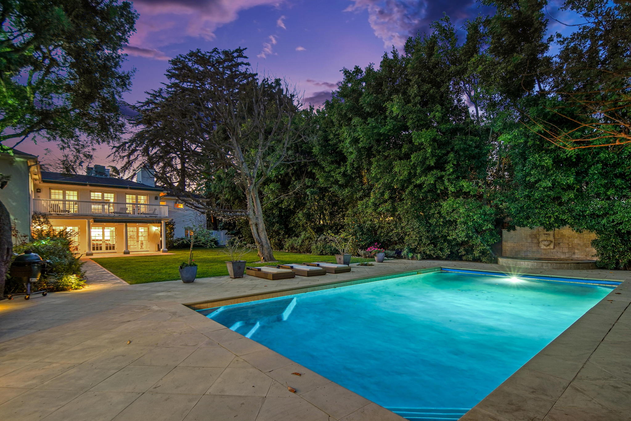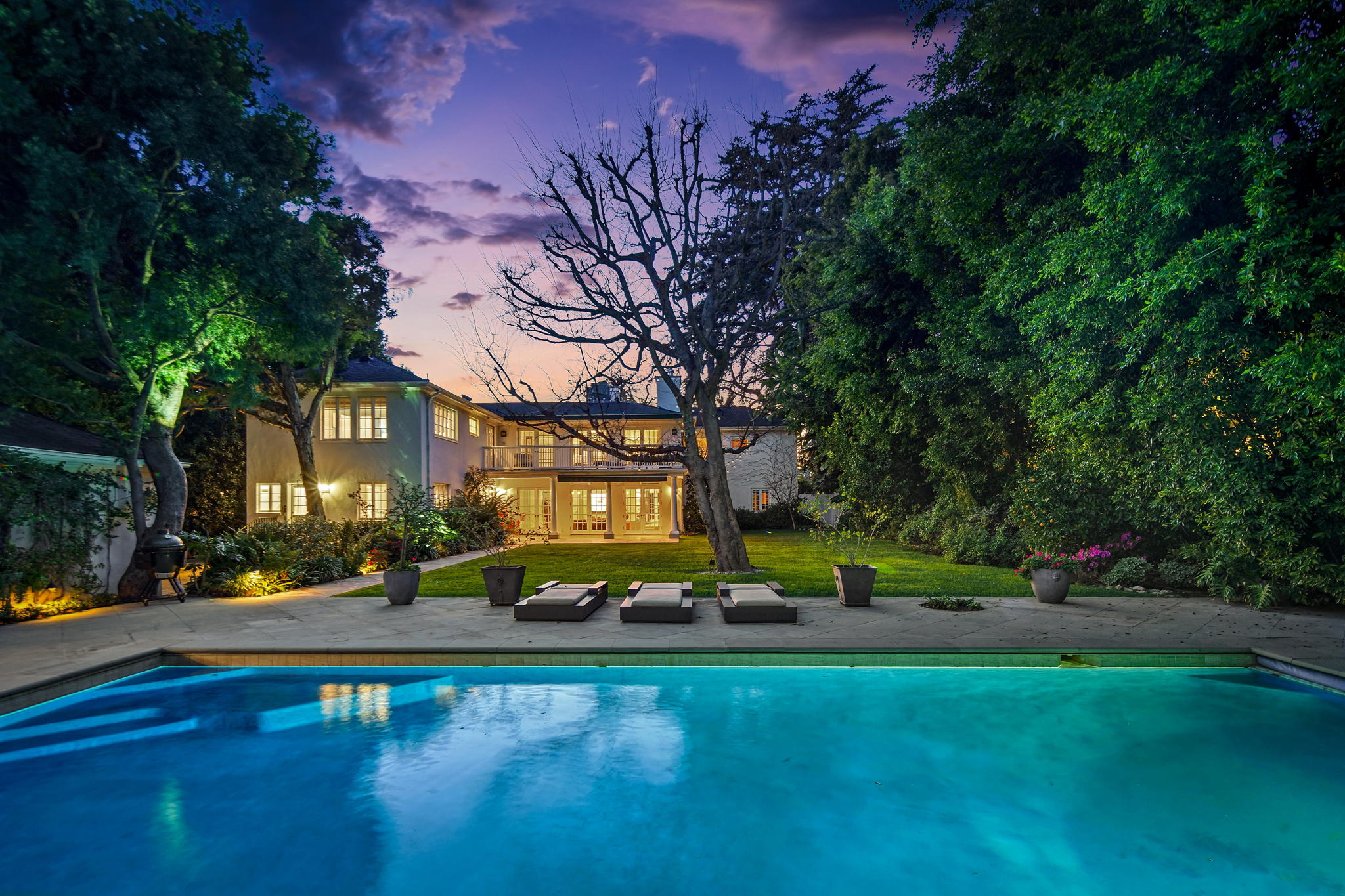 Centrally located on a tree-lined street in Hancock Park, this stunning 6 bed and 6 bath home sits on close to half an acre of flat land. Lounge and entertain in the outdoor gazebo or enjoy the spacious pool and hot tub in the serene, grassy backyard. Downstairs includes both a formal and informal living room, each featuring fireplaces and large glass french doors to let in ample light. The bright kitchen has a central island with white quartz countertops, new Viking range oven, and separate eating area. One bedroom and two bathrooms, a formal dining room, and the laundry area complete the downstairs. Five bedrooms upstairs include the primary suite with a balcony overlooking the peaceful backyard, fireplace, large walk-in closet, and modern bathroom with soaking tub and walk-in shower. Fully-automated smart home. Detached three-car garage with long gated driveway.