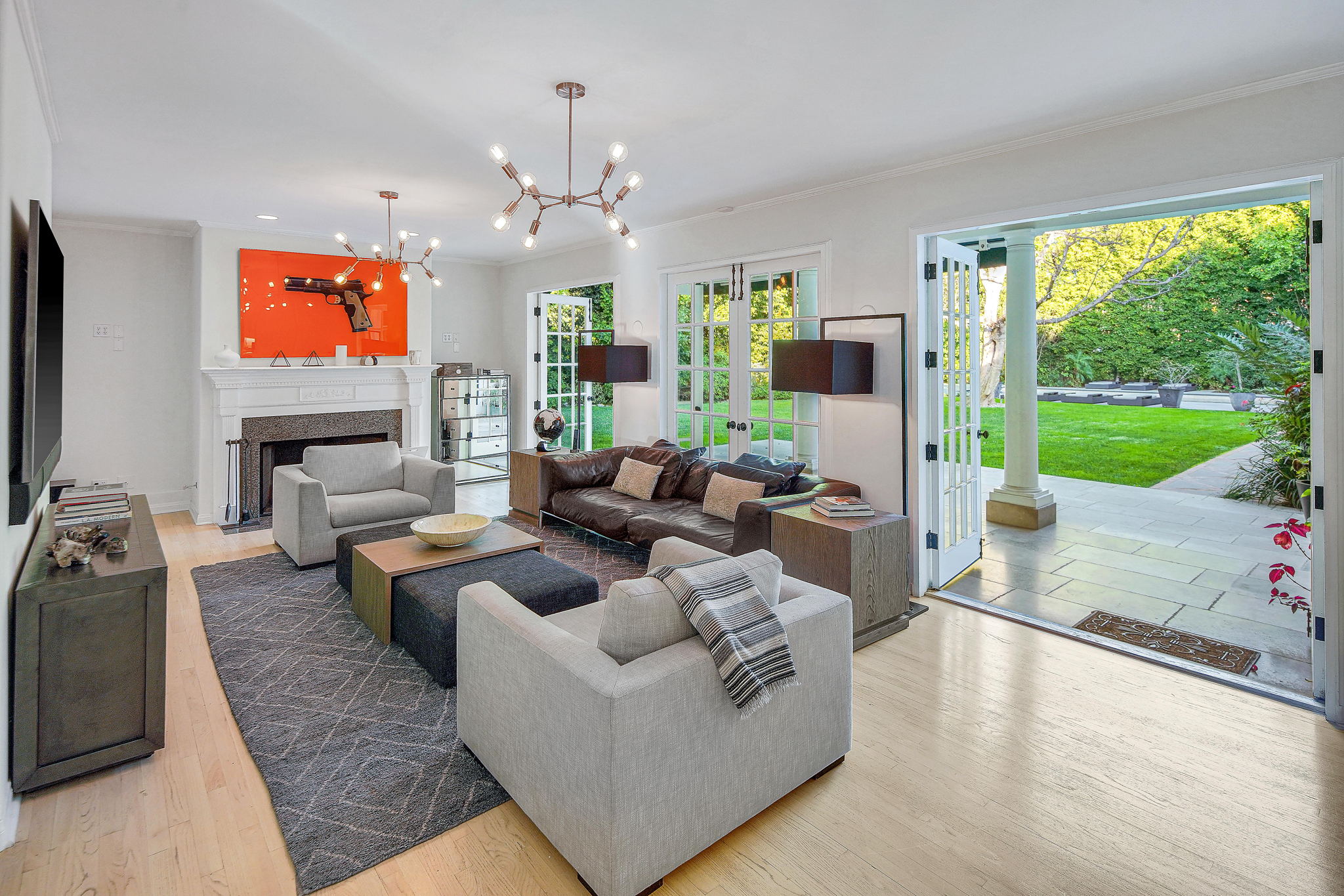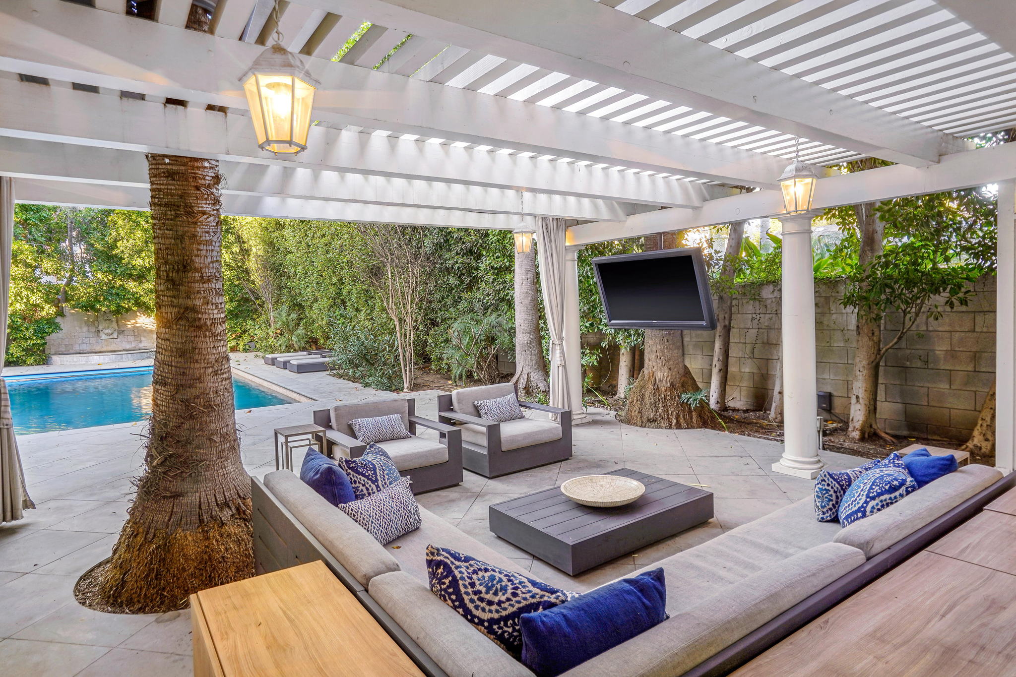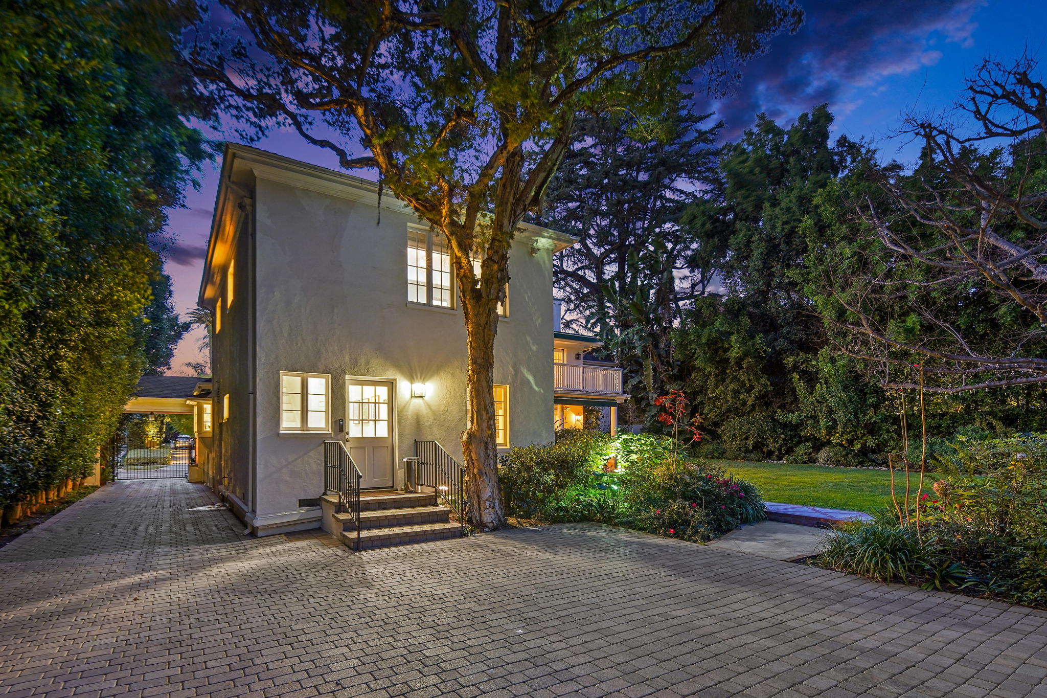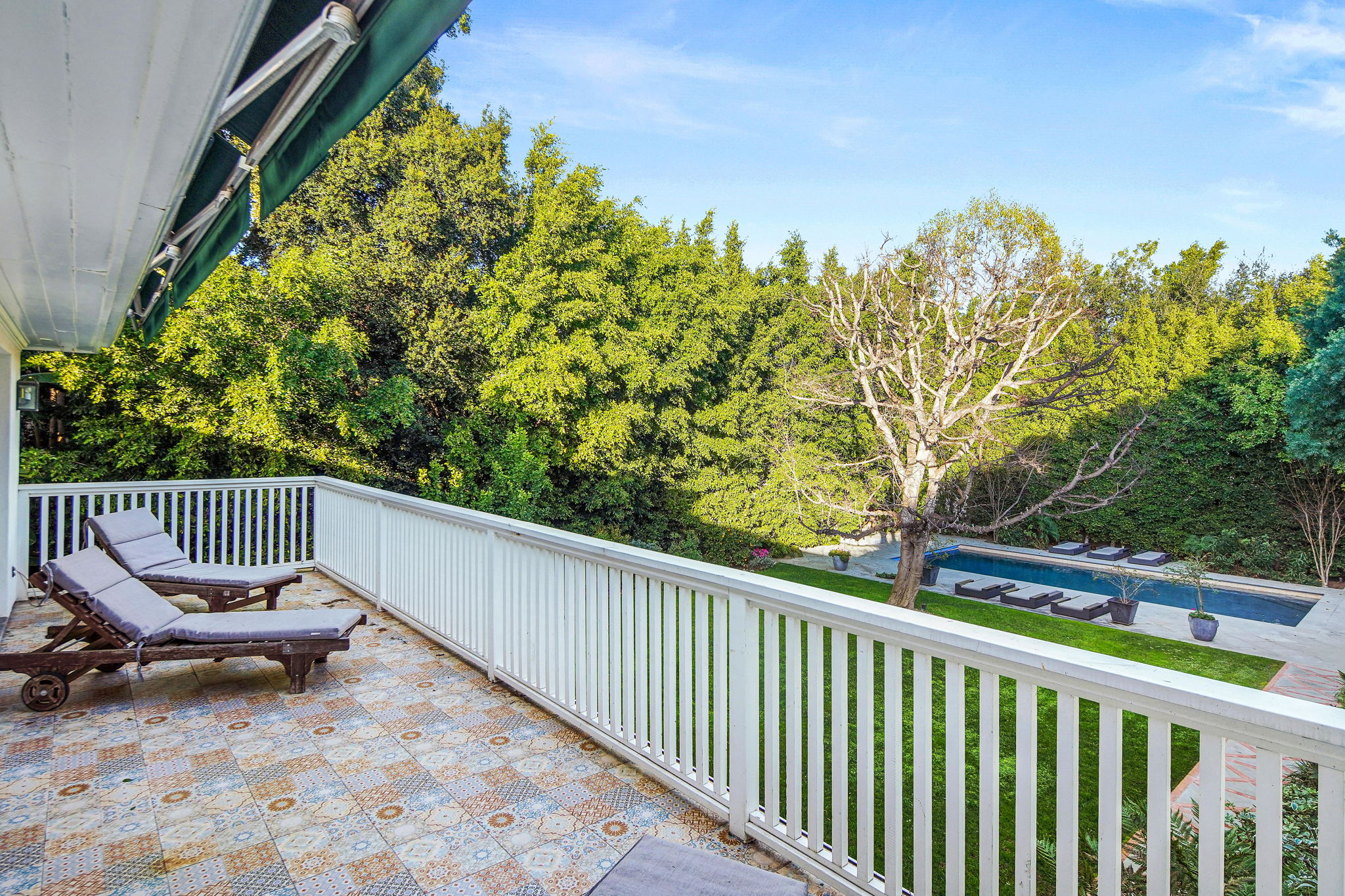Centrally located on a tree-lined street in Hancock Park, this stunning 6 bed and 6 bath home sits on close to half an acre of flat land. Lounge and entertain in the outdoor gazebo or enjoy the spacious pool and hot tub in the serene, grassy backyard. Downstairs includes both a formal and informal living room, each featuring fireplaces and large glass french doors to let in ample light. The bright kitchen has a central island with white quartz countertops, new Viking range oven, and separate eating area. One bedroom and two bathrooms, a formal dining room, and the laundry area complete the downstairs. Five bedrooms upstairs include the primary suite with a balcony overlooking the peaceful backyard, fireplace, large walk-in closet, and modern bathroom with soaking tub and walk-in shower. Fully-automated smart home. Detached three-car garage with long gated driveway.