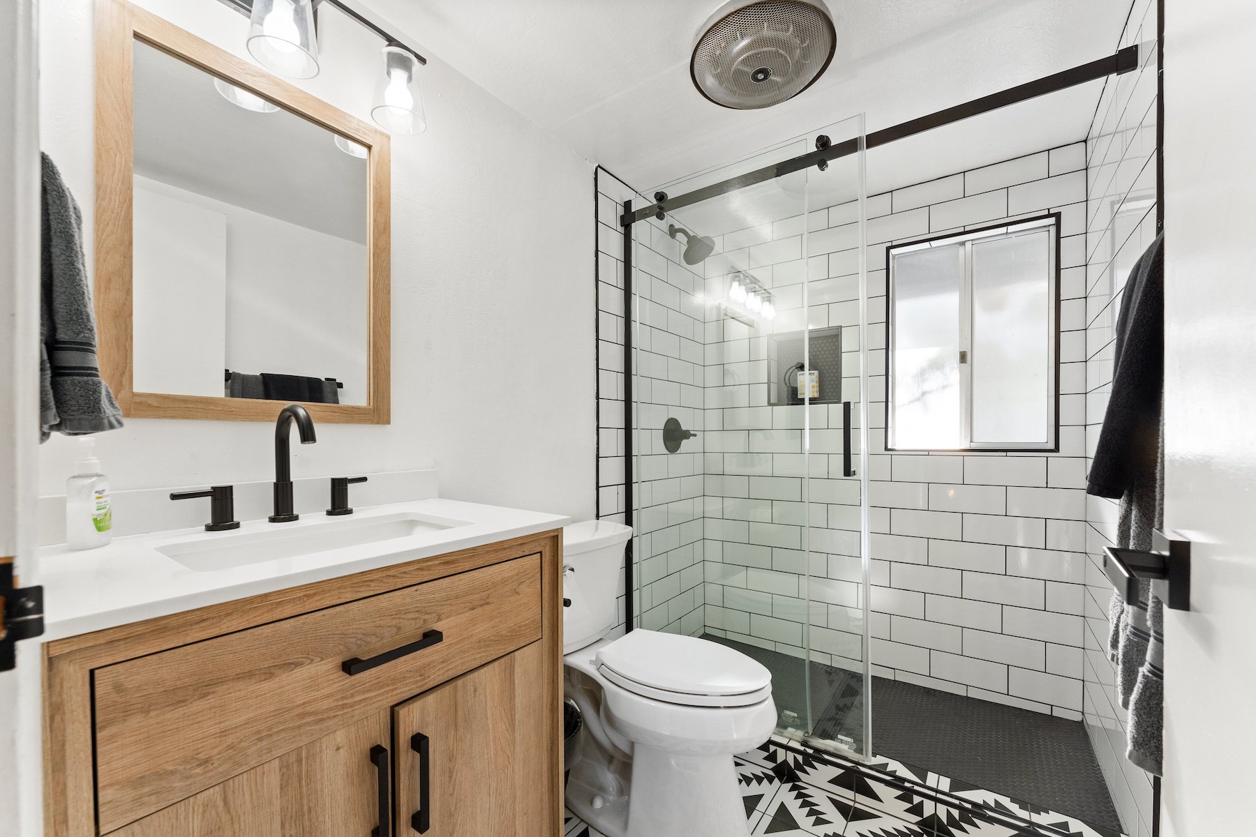 Step into an inviting living space adorned with floor-to-ceiling windows, exposed beams, and a warm wood-burning fireplace. The open layout seamlessly connects the living room to a well-equipped kitchen and dining area, boasting stainless steel appliances and ample counter space for preparing delicious meals. This 3-bedroom, 2-bathroom cabin features a fully remodeled en-suite bathroom on the main level and 2 additional bedrooms upstairs with a fully remodeled bathroom. Enjoy sweeping majestic views from the loft and throughout the home.
