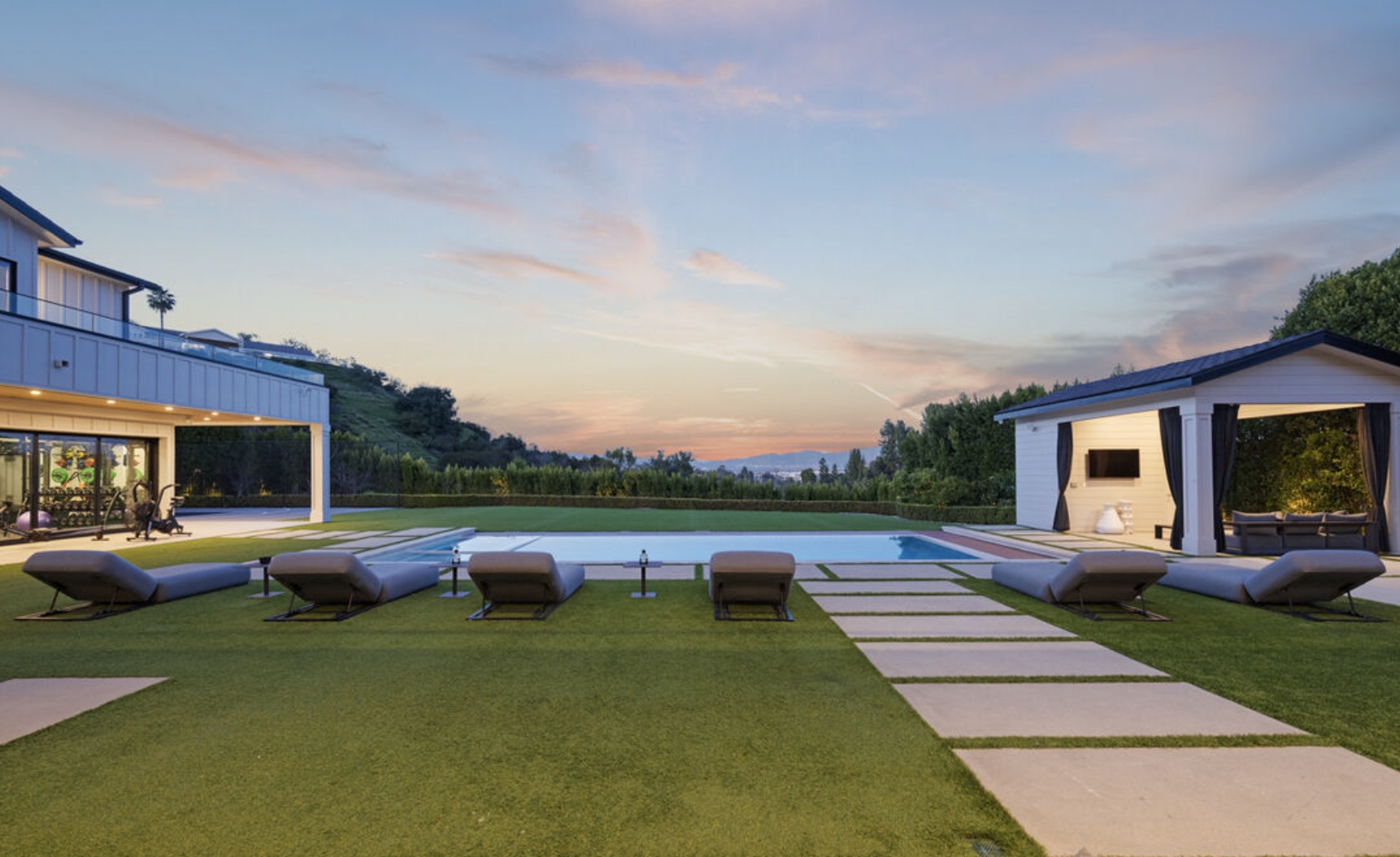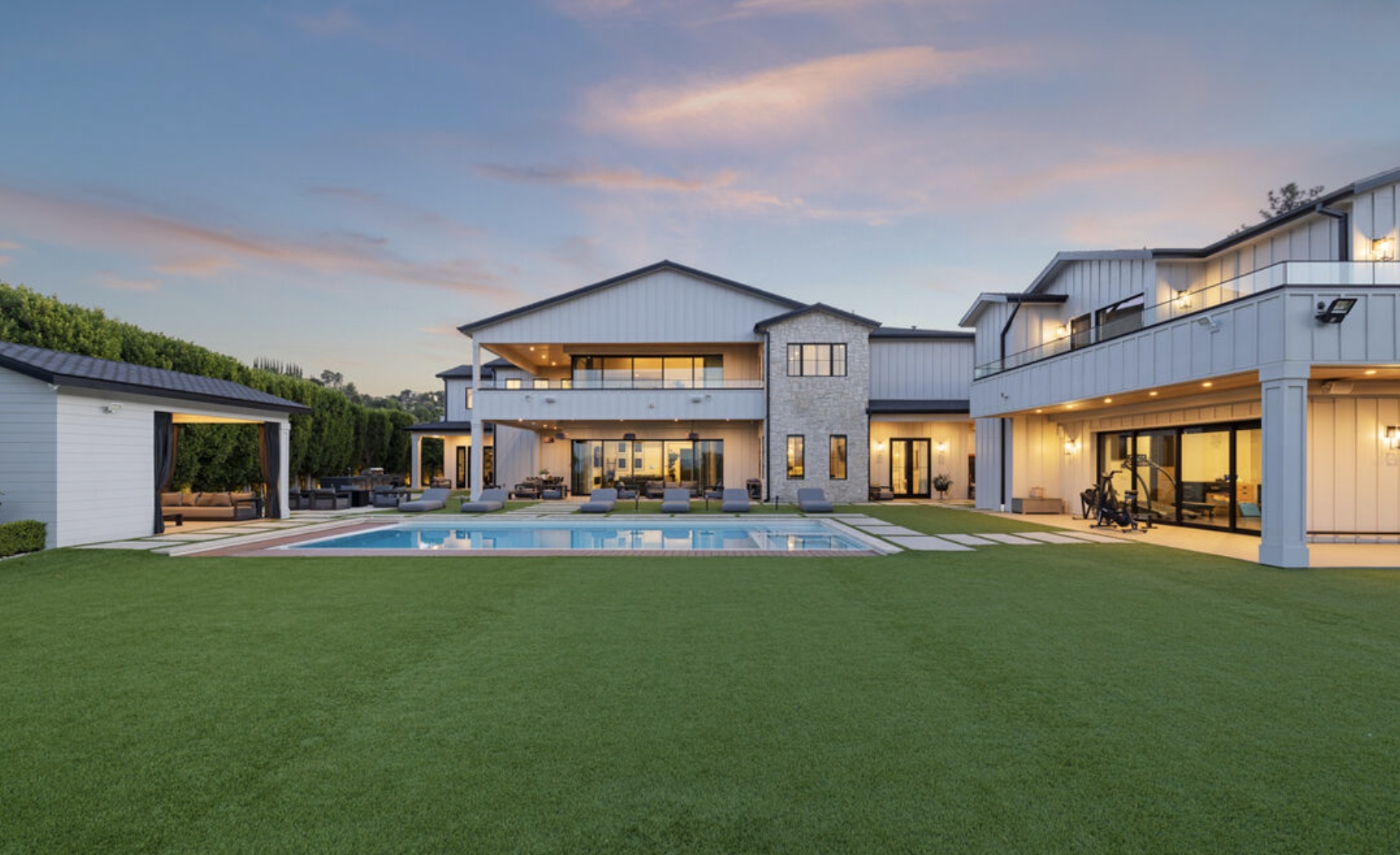 A beautiful modern farmhouse in Encino, set on a cul-de-sac behind private gates on a serene 1.35-acre lot. This recently constructed estate offers 12,000+ sq. ft. of luxurious living, with soaring ceilings and an expansive foyer that leads to elegant living spaces. The gourmet kitchen features dual islands, a cozy breakfast nook, and a butler’s pantry. The estate includes 8 bedrooms, 12 bathrooms, and 2 offices, plus a two-story guest house and a covered cabana with its own bathroom. Amenities include a temperature-controlled wine cellar, a state-of-the-art home theater, and an outdoor kitchen for alfresco dining. Additional amenities include a private gym, sports court, saltwater pool, 4-car garage, generator, and guard house for ultimate security and convenience.