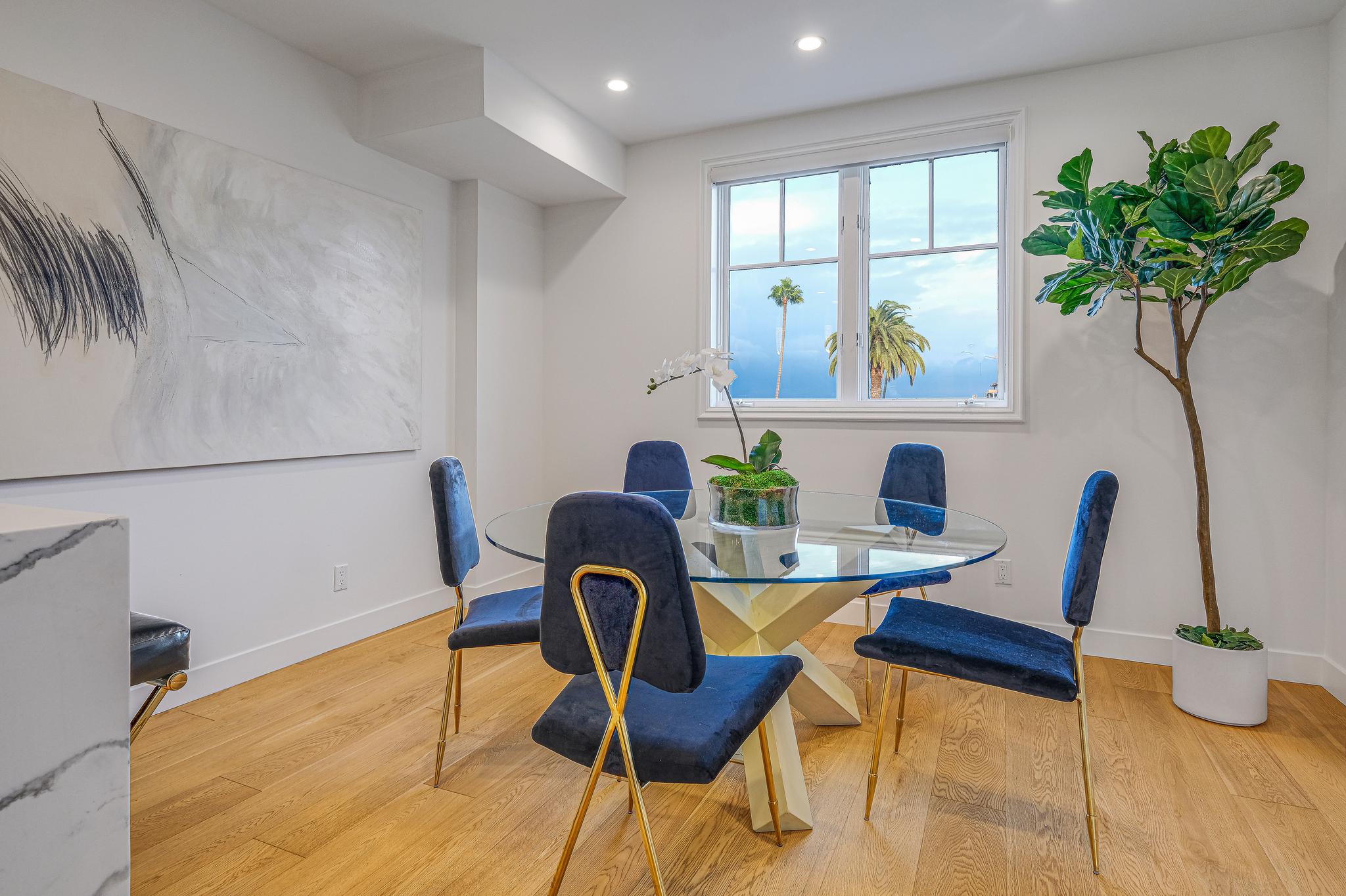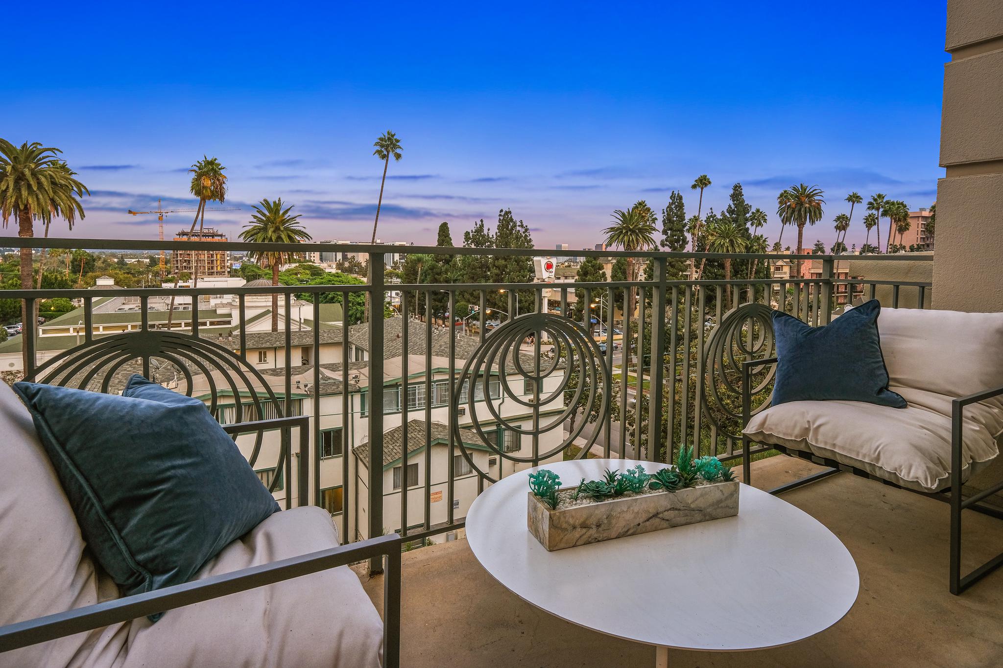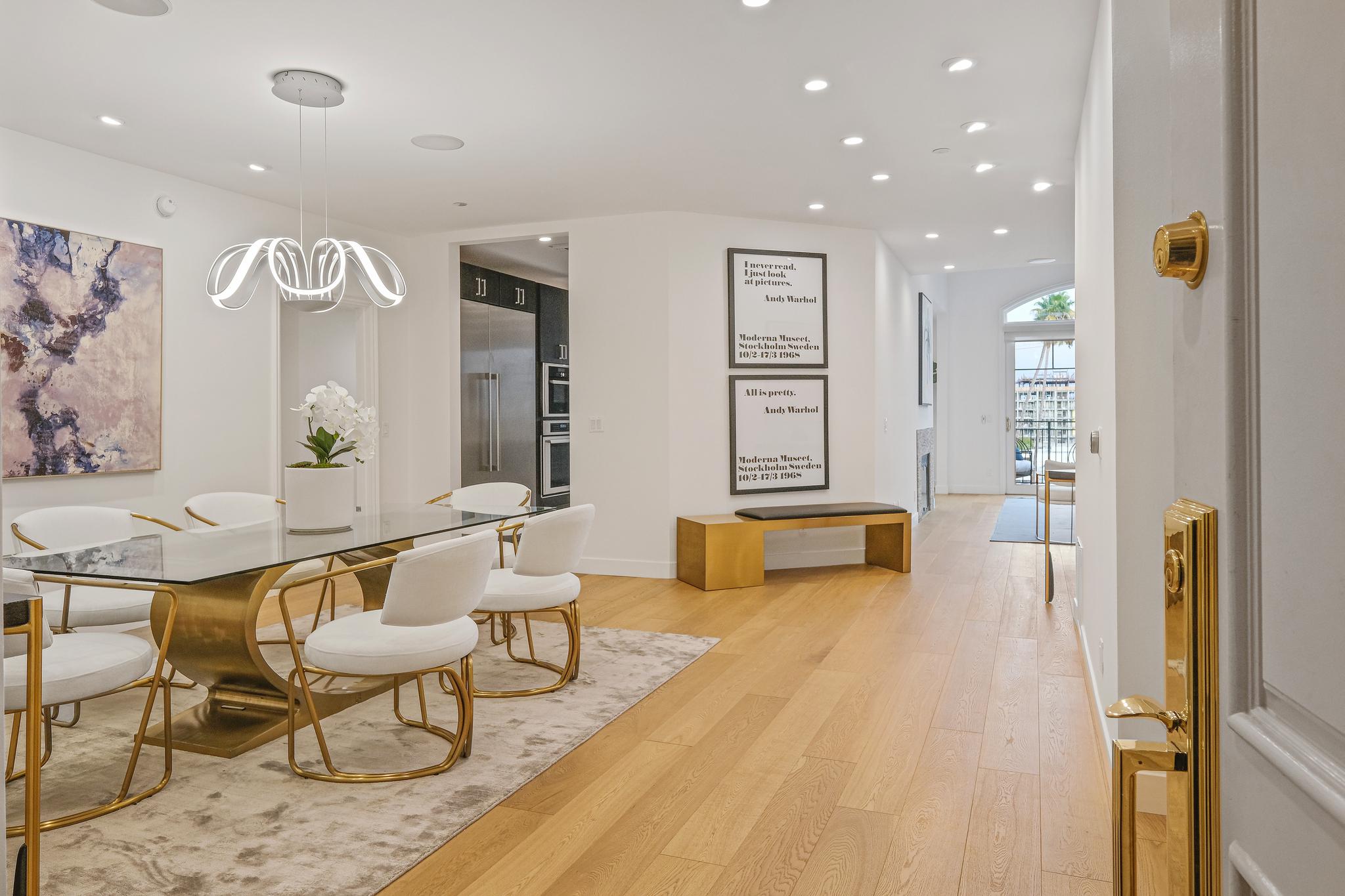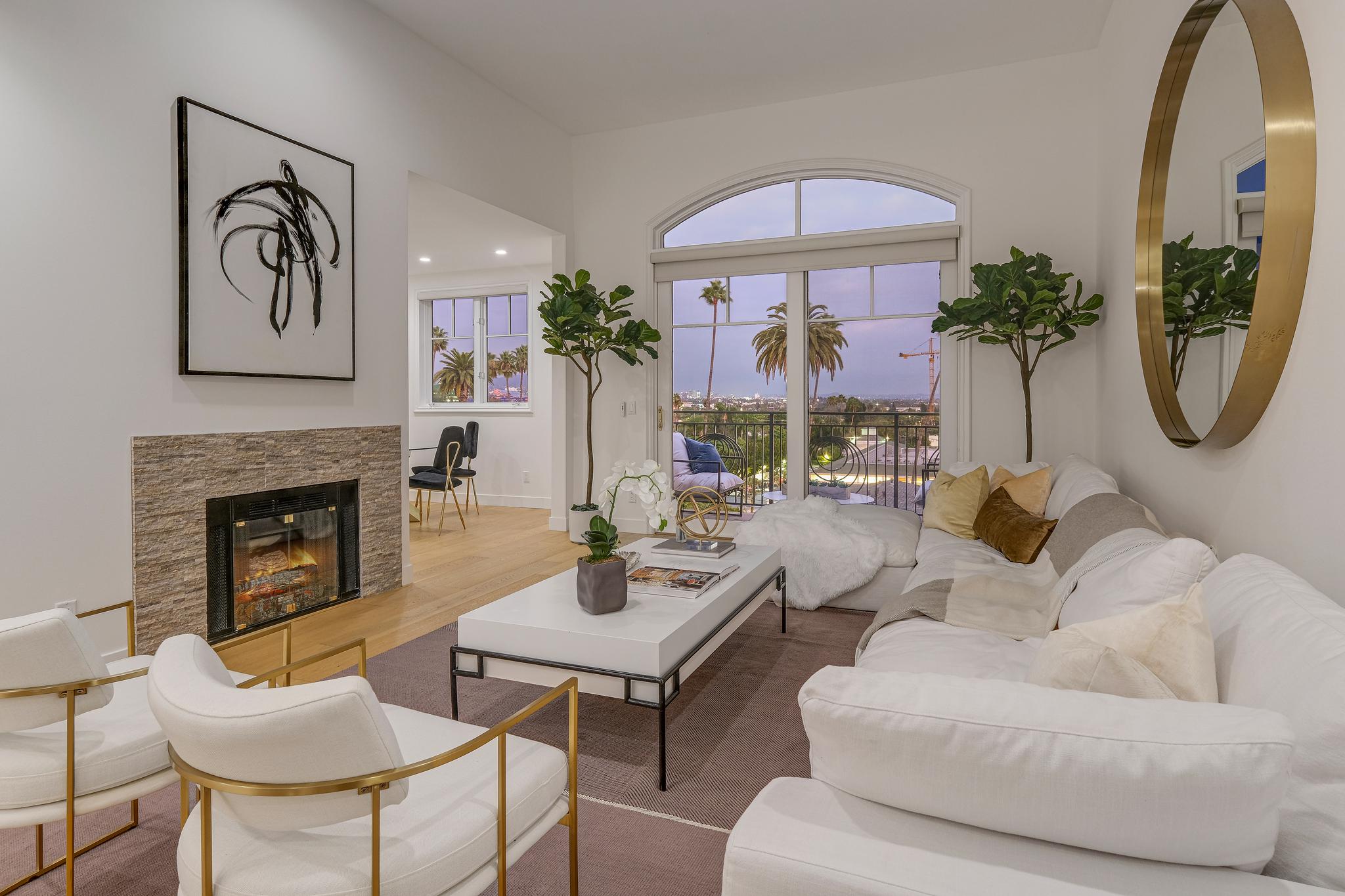 An elegantly remodeled (2018) and sophisticated penthouse in prime Beverly Hills 90210, with views of the city to the Hollywood Hills. Beautifully appointed wide oak-plank flooring, spacious open living and dining areas with high ceilings (raised 13” in remodel) that lead to a private balcony, and a gourmet chef's kitchen replete with gorgeous white marble countertops, backsplash, built-in breakfast bar, and top-of-the-line appliances. A luxurious owner's suite features a gorgeous ensuite bath with dual vanity sink, spa-like tub, walk-in shower, and refined basketweave white marble flooring. Complex has an oversized rooftop patio with 360 degree views, fitness center, meeting rooms, guest parking, gated access and security guard/doorman during daytime hours.