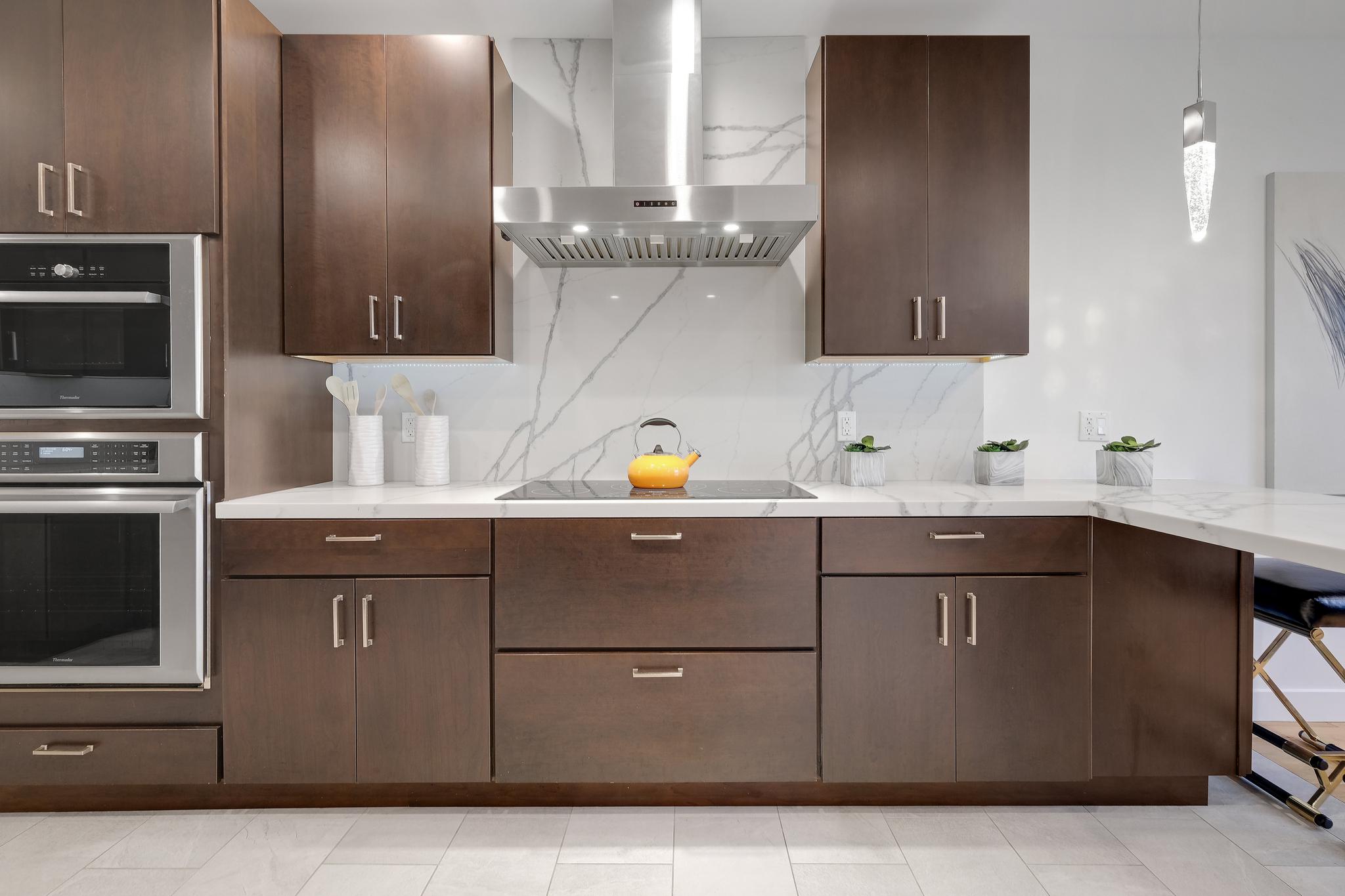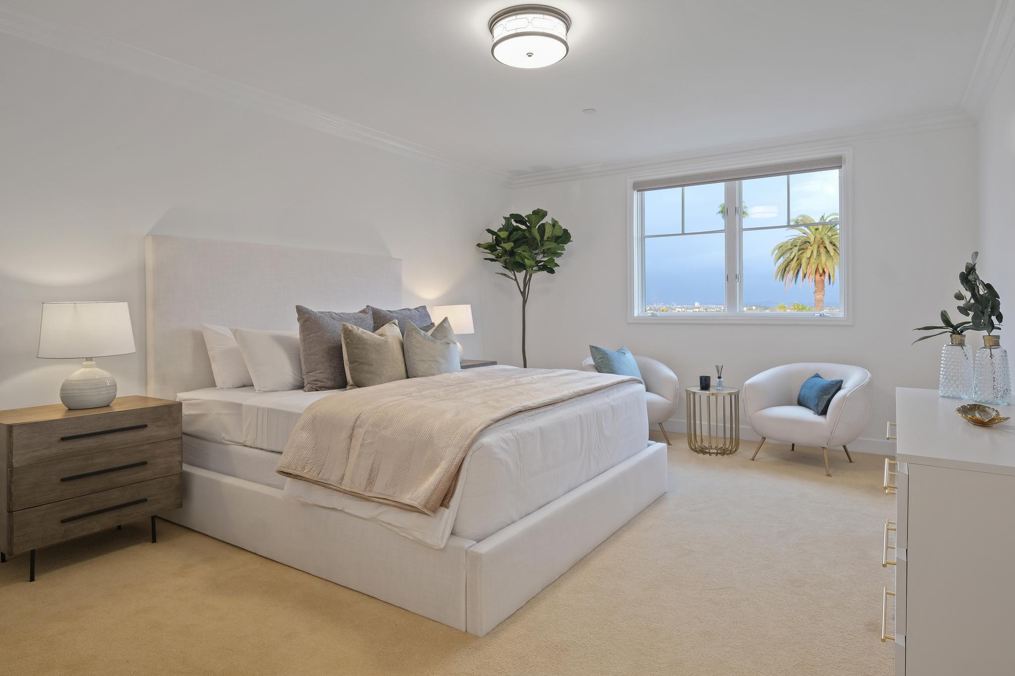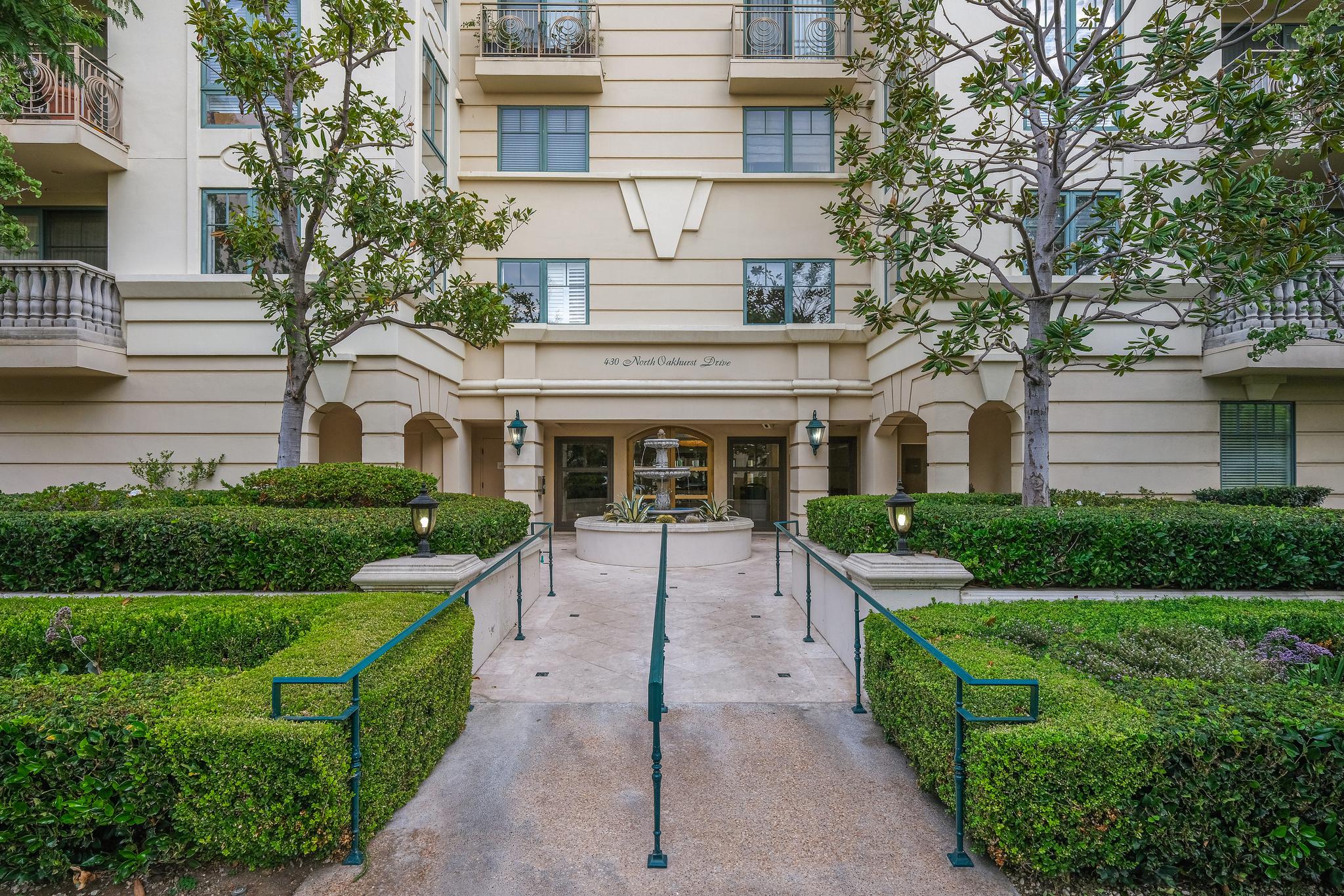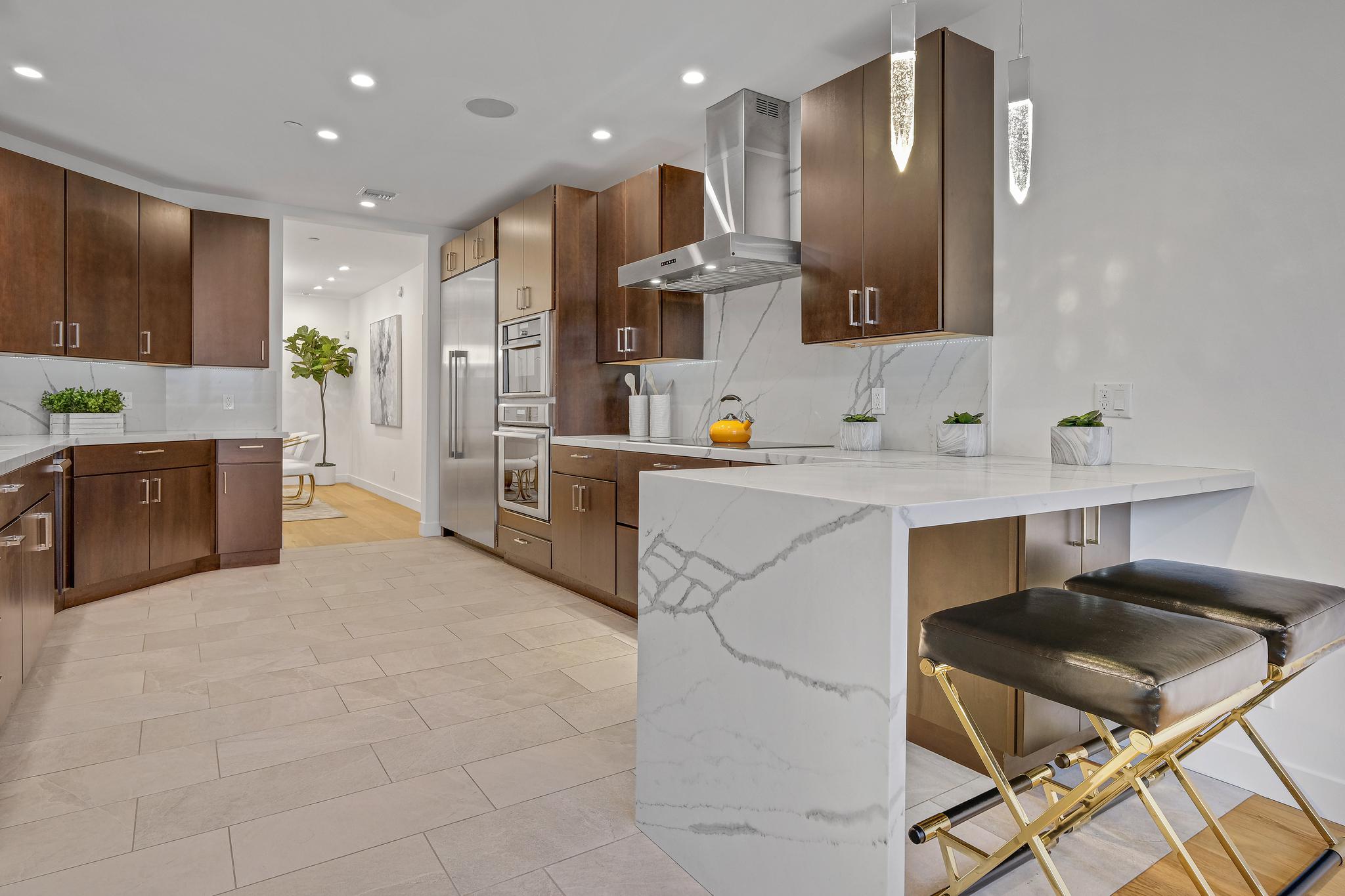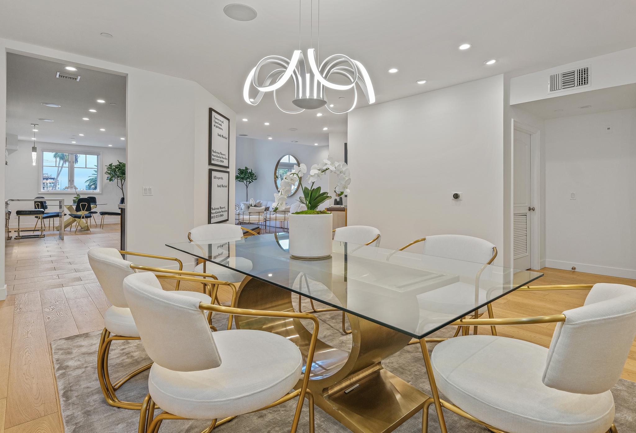 An elegantly remodeled (2018) and sophisticated penthouse in prime Beverly Hills 90210, with views of the city to the Hollywood Hills. Beautifully appointed wide oak-plank flooring, spacious open living and dining areas with high ceilings (raised 13” in remodel) that lead to a private balcony, and a gourmet chef's kitchen replete with gorgeous white marble countertops, backsplash, built-in breakfast bar, and top-of-the-line appliances. A luxurious owner's suite features a gorgeous ensuite bath with dual vanity sink, spa-like tub, walk-in shower, and refined basketweave white marble flooring. Complex has an oversized rooftop patio with 360 degree views, fitness center, meeting rooms, guest parking, gated access and security guard/doorman during daytime hours.