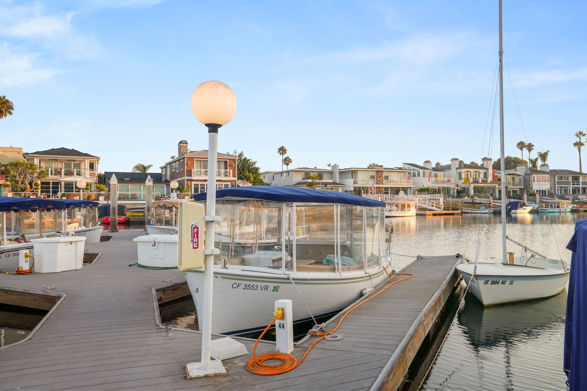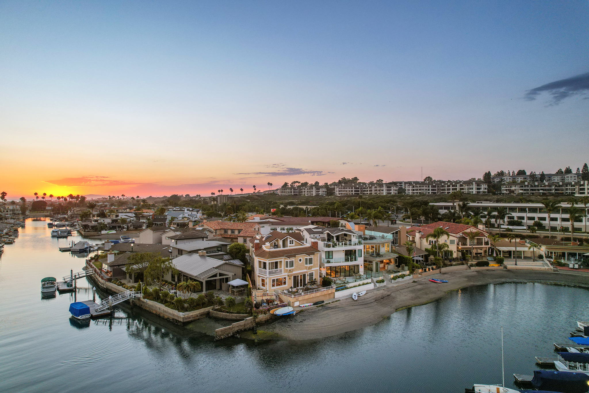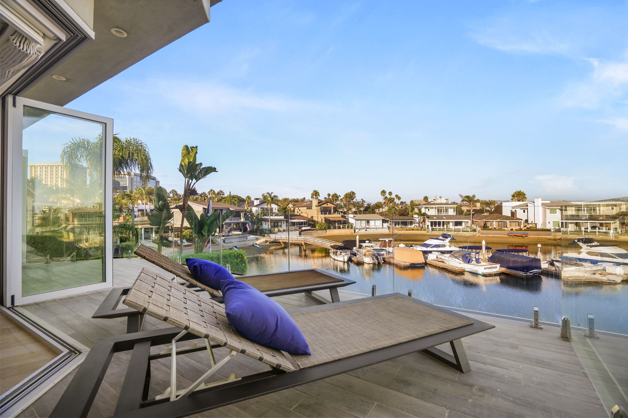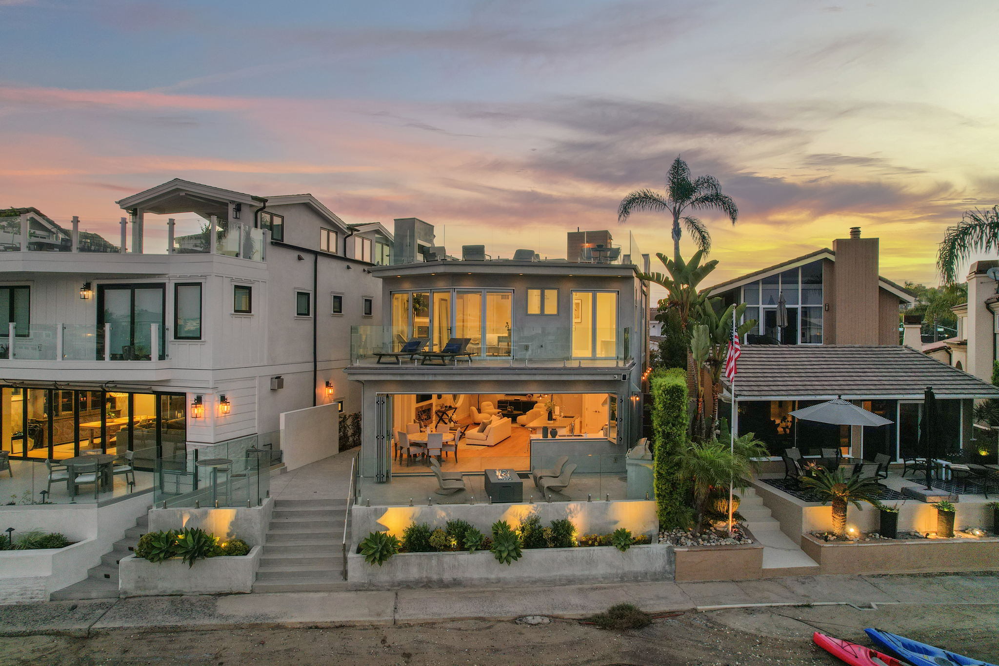Escape to one of only 68 homes in this private gated enclave of Balboa Coves. Steps from your own sandy beach and private dock that can accommodate a 35' boat, this contemporary masterpiece offers unobstructed water views with coastal chic sophistication. An elevator servicing all three levels allows for ease of navigation around this inviting and relaxed family beach home. The main level is characterized by refined Newport design, featuring an open great-room with french oak floors, fashionable fireplace, accordion doors opening to the fresh ocean breezes and outdoor retreat with the sand below your feet. A chef-worthy kitchen features a Wolf range, Sub-Zero refrigerator, large pantry and exquisite island with ample bar seating for entertaining. A relaxed dining area overlooking the water, an ensuite bedroom and additional powder room complete the main level. Awake every morning to crisp bay views in the primary ensuite bedroom and enjoy your coffee on the expansive balcony. Soak in the freestanding tub or shower while basking in the breathtaking bay views. Dual sinks and vanities and a spacious walk-in closet by Closet World top it off. Two additional ensuite bedrooms and a laundry room complete the second level. Host your friends and family on the spectacular rooftop deck with panoramic views and elevator access. Over 1000 sq.ft. of entertaining space makes this the perfect setting overlooking the Newport Beach bay. If the stars aligned you would see it from this roofdeck. This turnkey stunner is further highlighted by advanced home automation, including Lutron shades throughout, surveillance cameras, hue lighting and voice programmable thermostats, all controllable from wherever you are, an ideal setup for a second home. For the serial entrepreneur, the oversized two car garage has a built-out office area with air-conditioning. With a private park and ample guest parking, there's no better place to raise a family or spend time with loved ones. Walking distance to the trendy Lido Marina Village, boutiques, cafes and restaurants, and only a moment's drive to Fashion Island and world-class golf courses, don't hesitate to make this bayfront home your own!