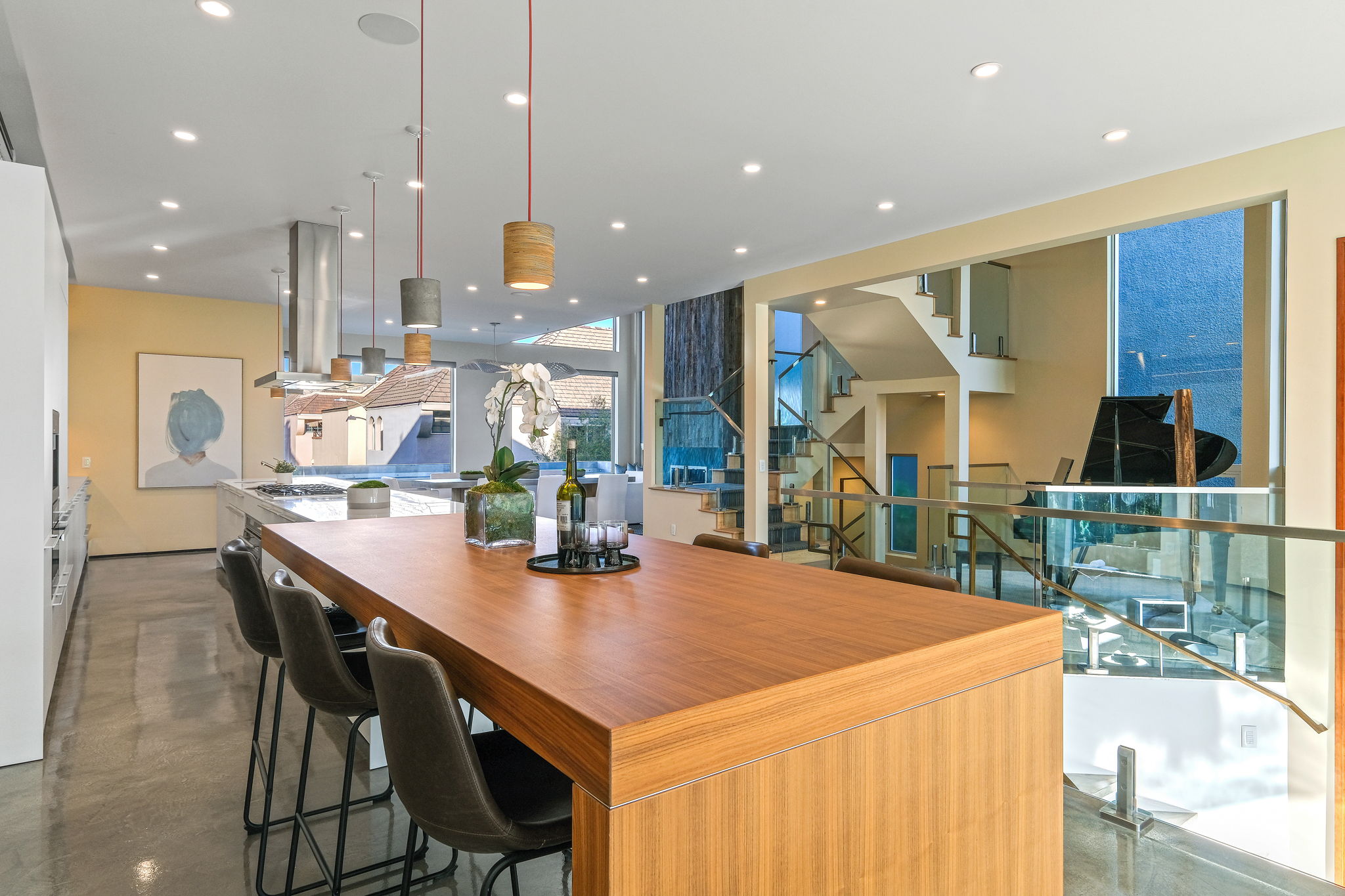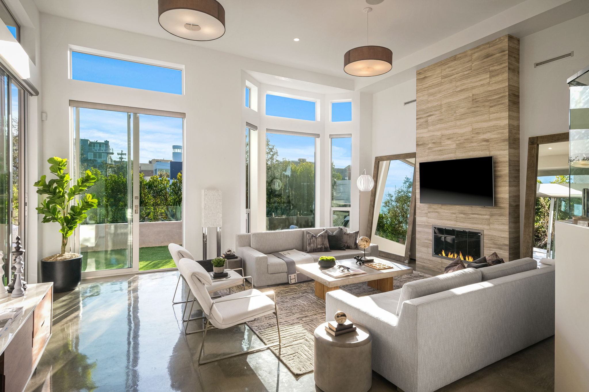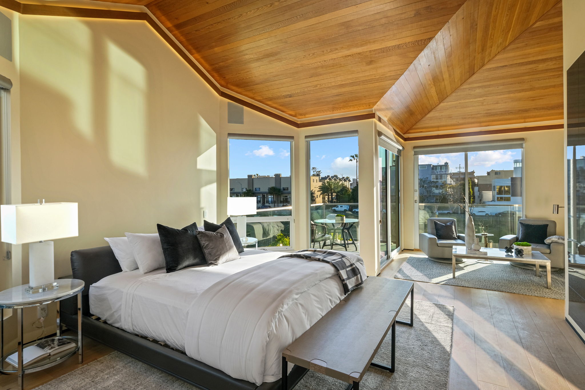 An architectural waterfront masterpiece on the Silver Strand in Marina del Rey, impeccably and completely remodeled with designer finishes and the finest craftsmanship. Soaring ceilings and countless floor-to-ceiling Fleetwood windows and sliding glass doors flood the home with natural light. This entertainer's paradise offers the epitome of indoor/outdoor California living with a grassy backyard, two balconies, and a private rooftop deck equipped with an outdoor kitchen, fire table, and ipe wood decking. The Chef's kitchen is complete with Bulthaup cabinets, Miele, Wolf & Subzero appliances, two sinks, and a 24 ft. island with built-in seating. The expansive owner's suite offers views of the Grand Canal and boasts a lavish bathroom with dual vanities, a double steam shower, freestanding tub, separate water closet, built-in storage, and a custom, designer walk-in closet. Several recent additions, including a main level powder room and downstairs bedroom with 3/4 bath, greatly expands the home's functionality. Superior smart home capabilities with Control4 Home Automation System. Attached 2-car garage.