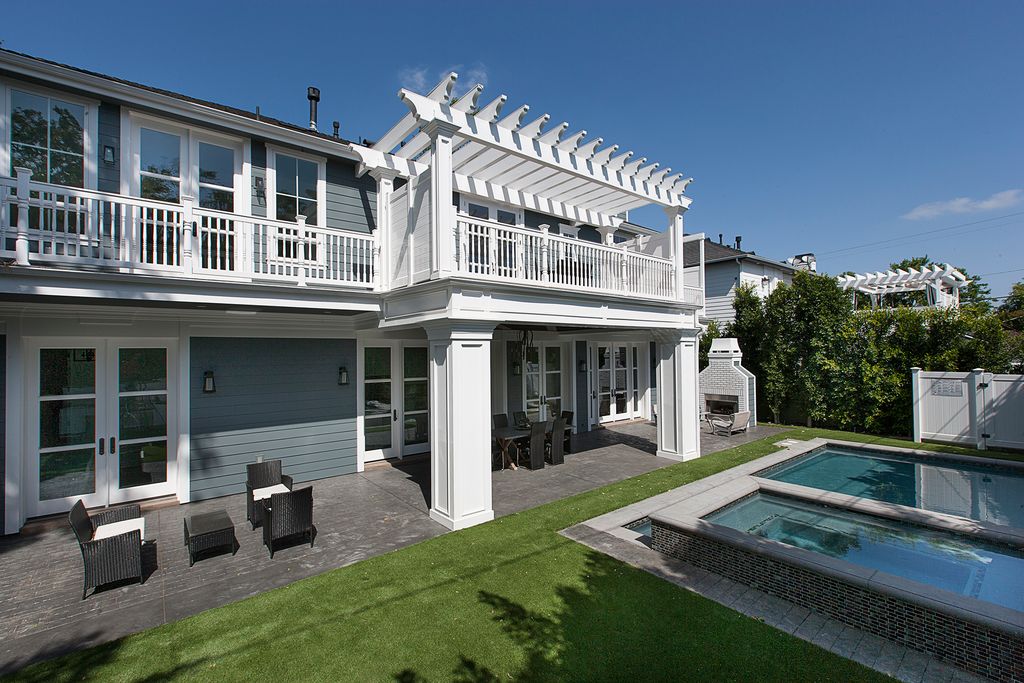 Chic architectural, craftsmanship and design features create a stylistic yet warm environment. It flawlessly transitions between cape cod & contemporary styles, catering to quintessential indoor/outdoor southern California living. Luminous Open Floor Plan with 11 feet high ceilings , Massive Architectural 9 feet French doors and impressive windows, presents seamless In Door/Outdoor Flow. Gorgeous Expansive Chef's Kitchen with Wolf/SubZero/Bosch Appliances, Impressive carrera marble Island, Custom Cabinetry and Walk-in Pantry . Romantic master suit has fireplace and balcony, added bonus sitting area, and two master bathrooms with large double closets.