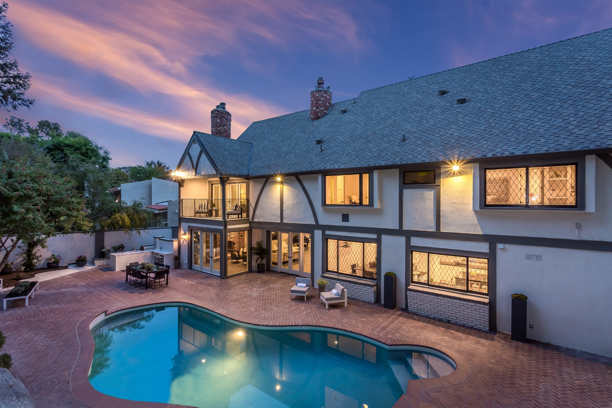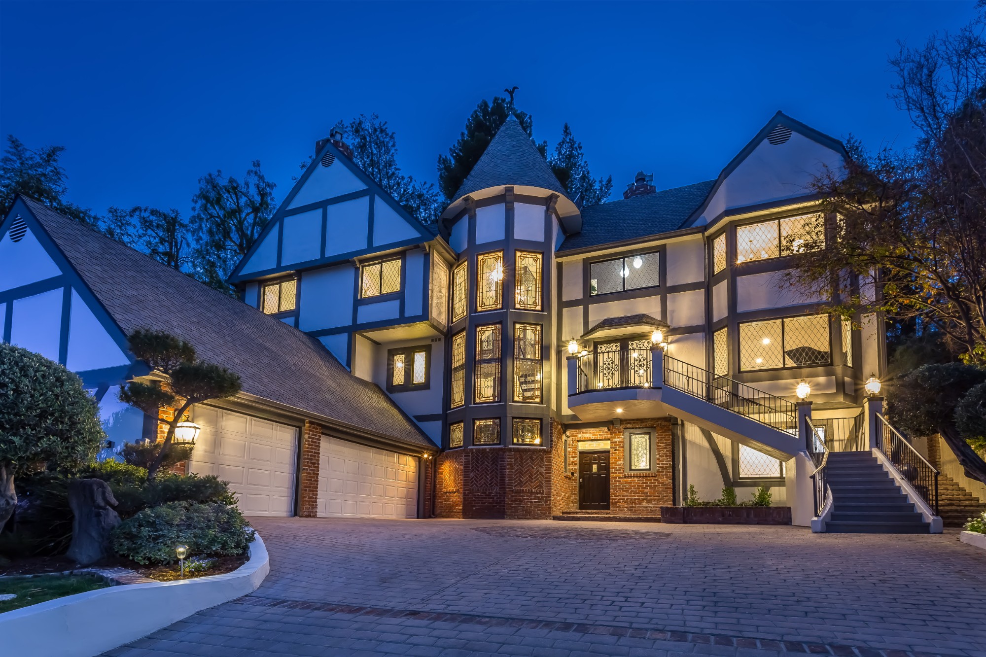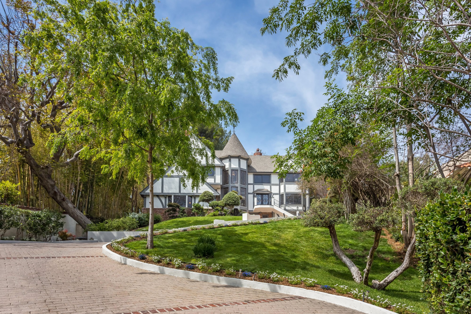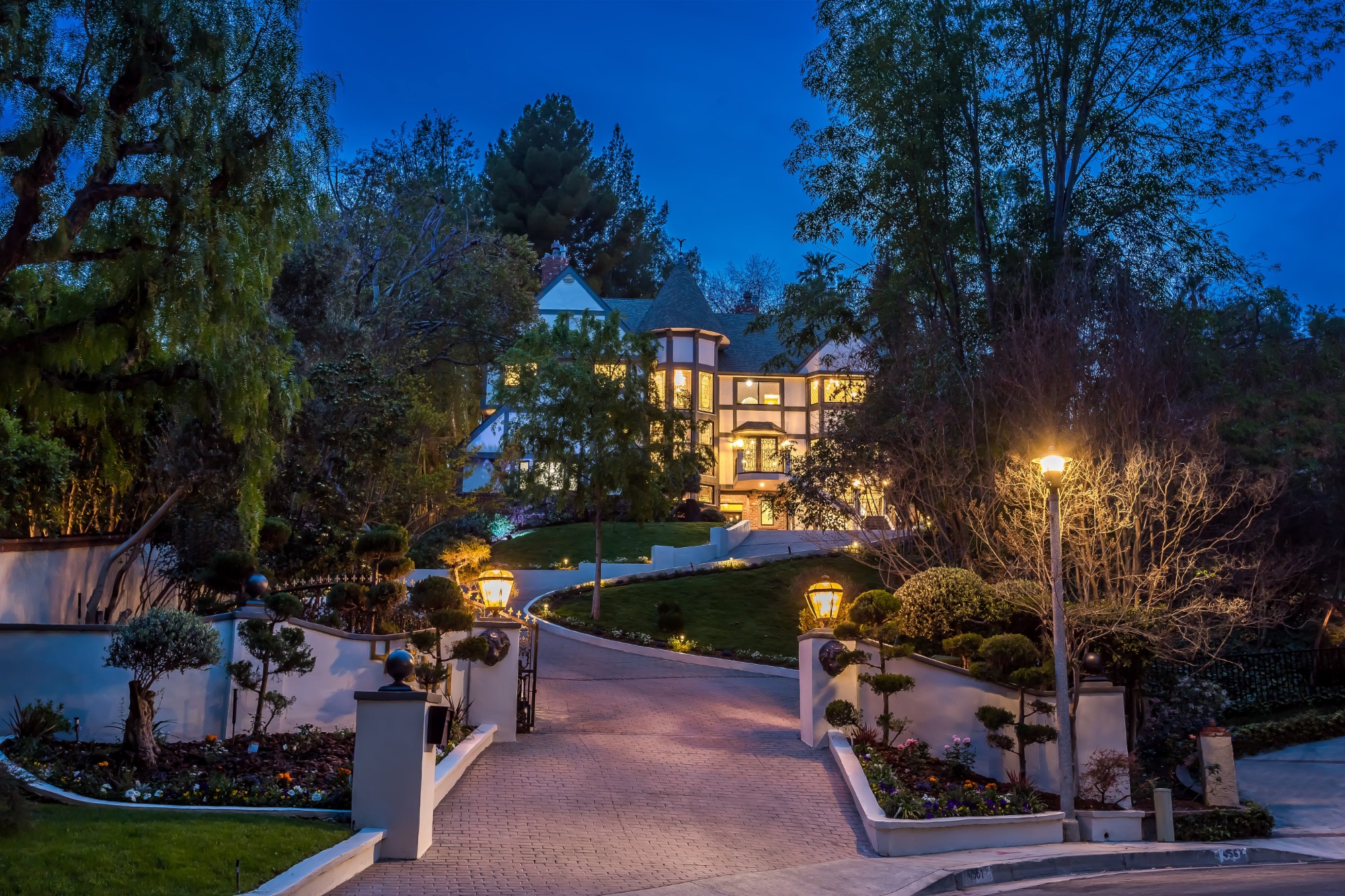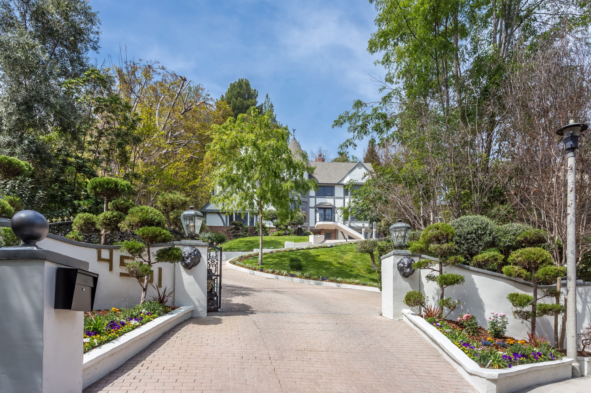 A beautifully remodeled designer residence in coveted Clark Gable Estates, set at the end of a quiet cul-de-sac behind private gates. Boasting greenbelt views, a shared tennis court and large grass field, elevator, sauna, pool, spa, outdoor barbecue area, Japanese garden with multiple water features, movie theater, wine room, and 3-car garage. Smart home technology includes Lutron, Sonos and Alexa. Private overnight neighborhood security officer with patrol car. Award-winning local public elementary school - Lanai Road.