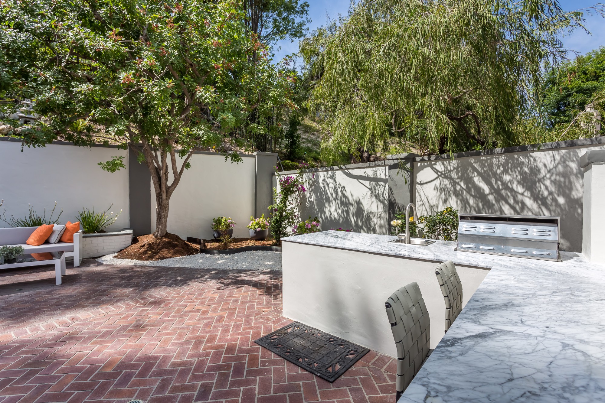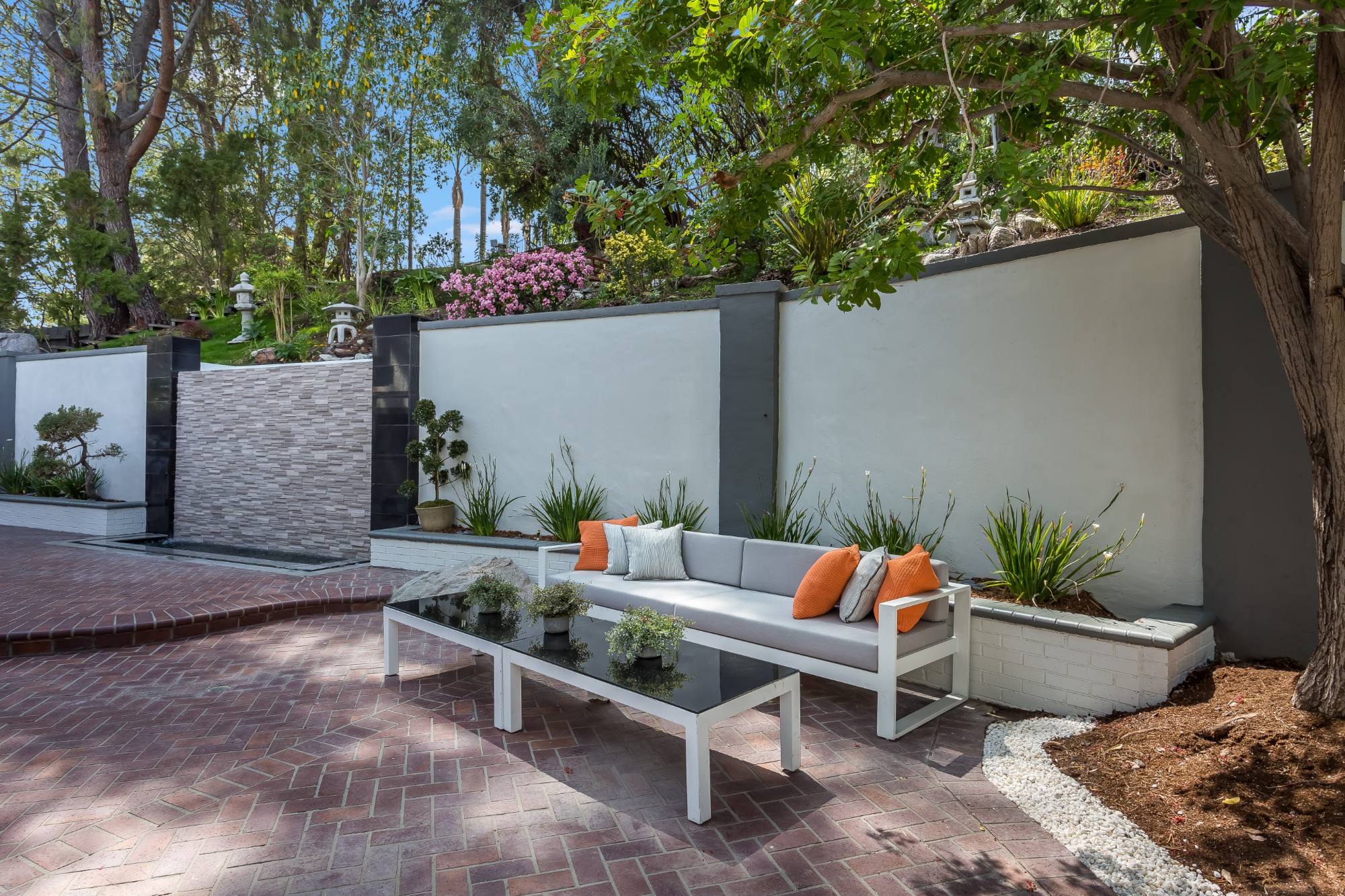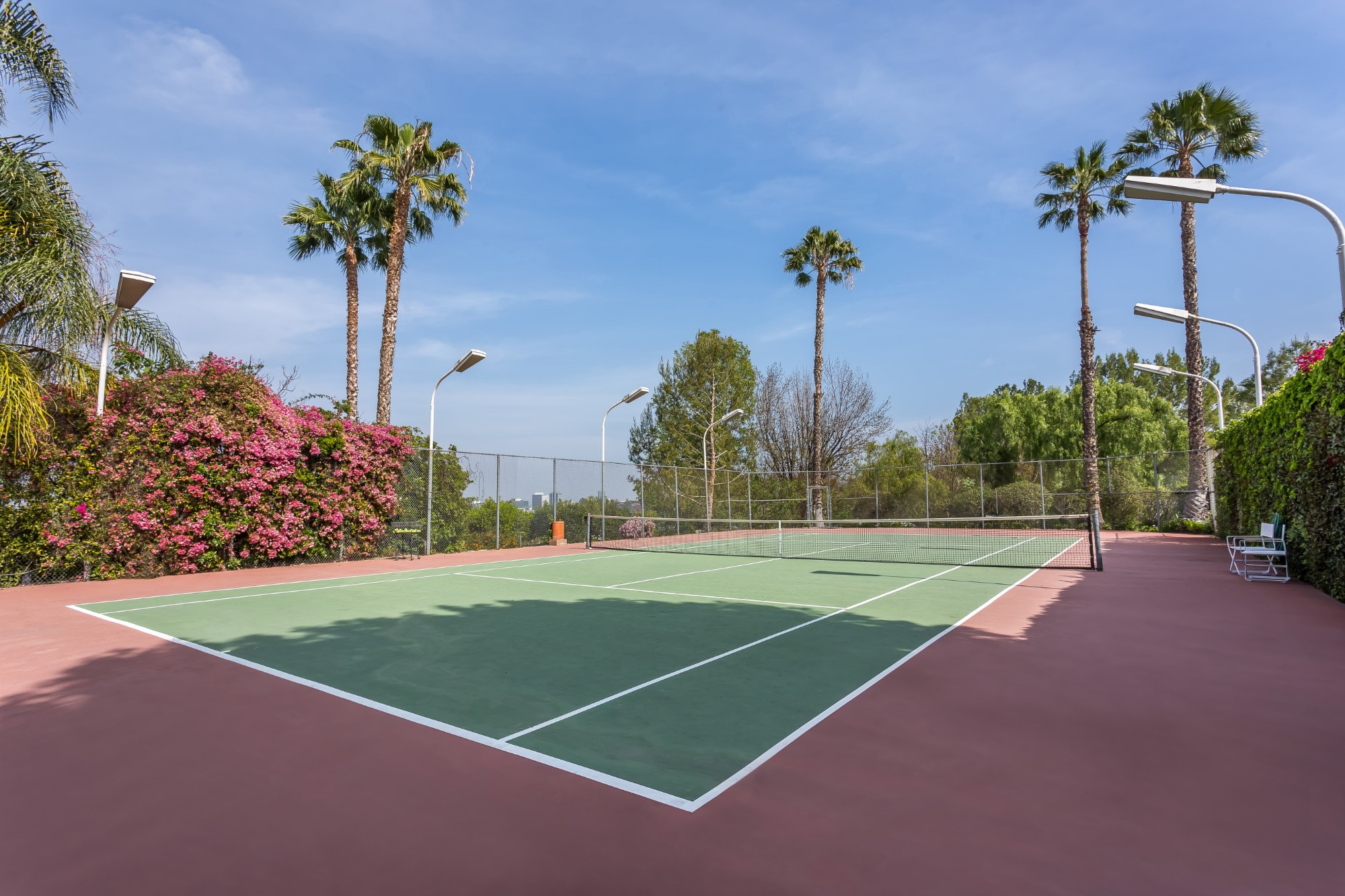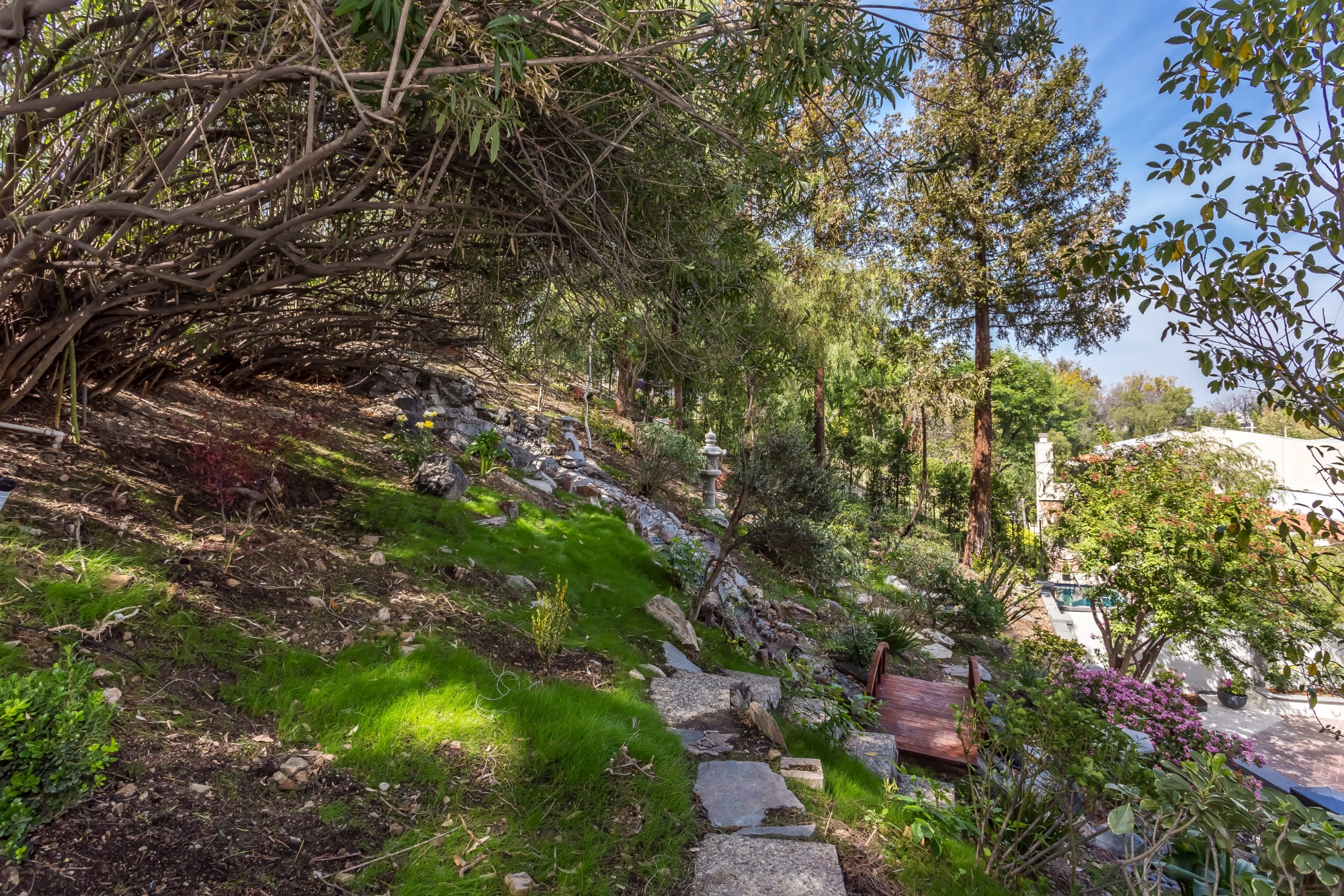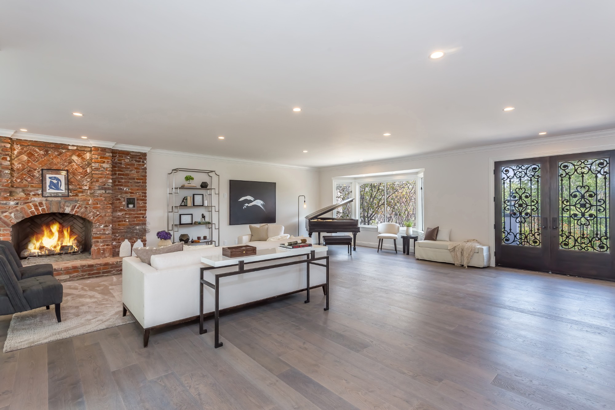 A beautifully remodeled designer residence in coveted Clark Gable Estates, set at the end of a quiet cul-de-sac behind private gates. Boasting greenbelt views, a shared tennis court and large grass field, elevator, sauna, pool, spa, outdoor barbecue area, Japanese garden with multiple water features, movie theater, wine room, and 3-car garage. Smart home technology includes Lutron, Sonos and Alexa. Private overnight neighborhood security officer with patrol car. Award-winning local public elementary school - Lanai Road.