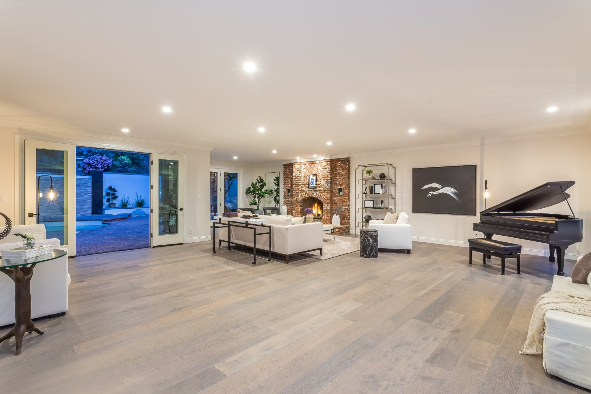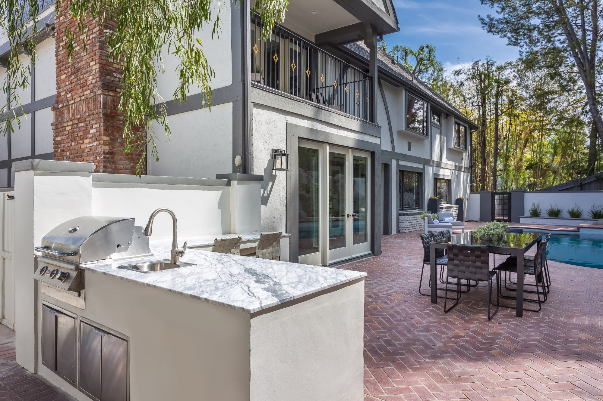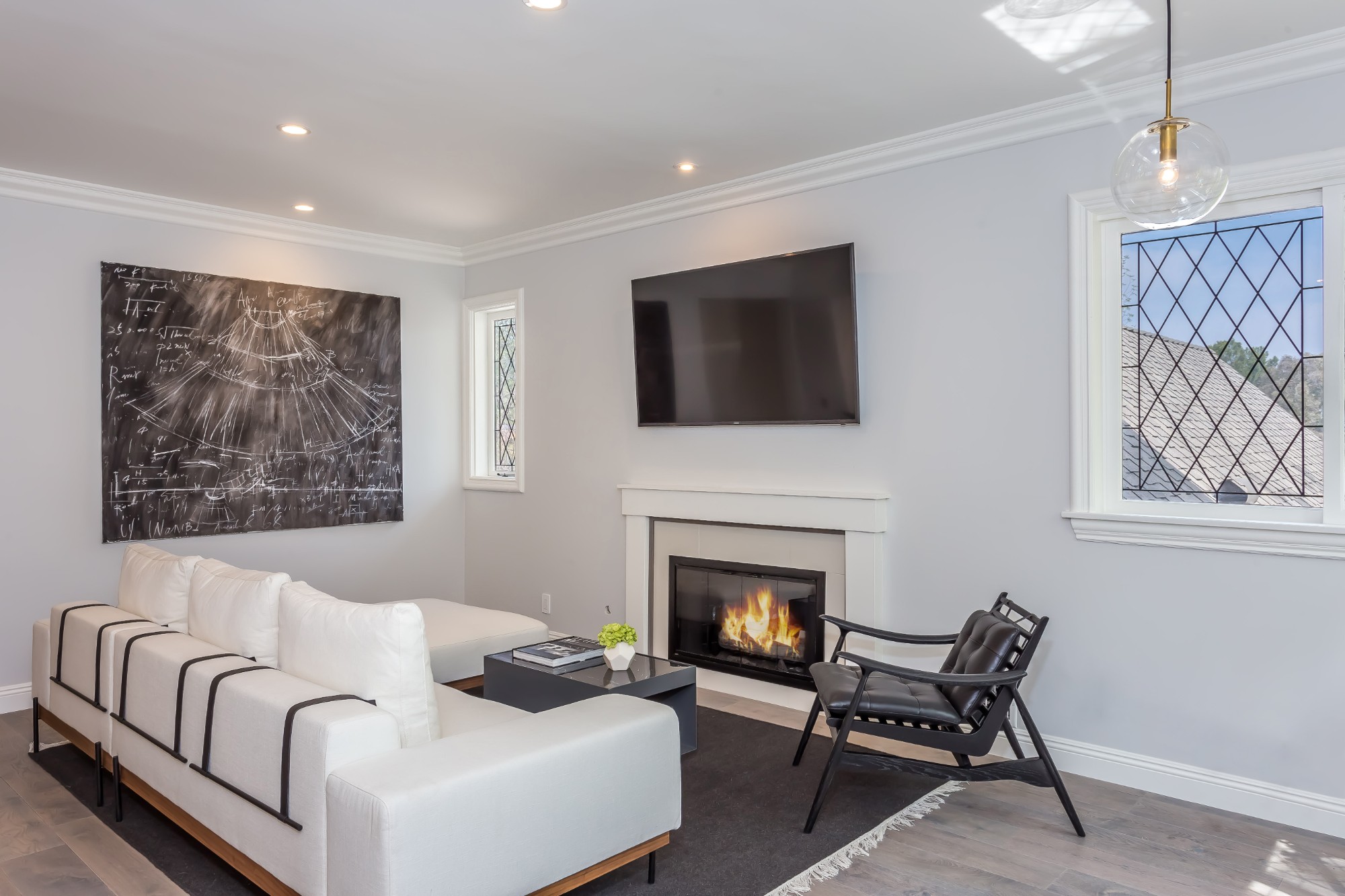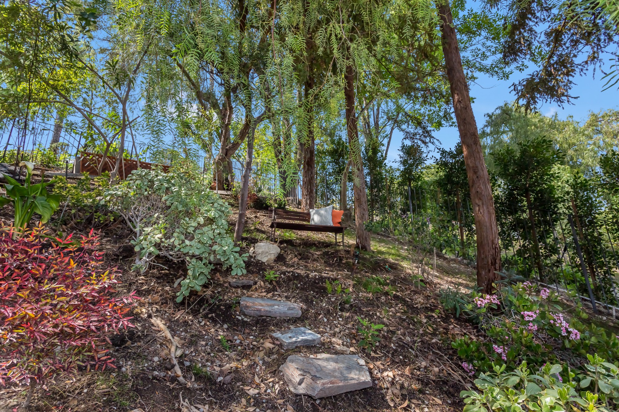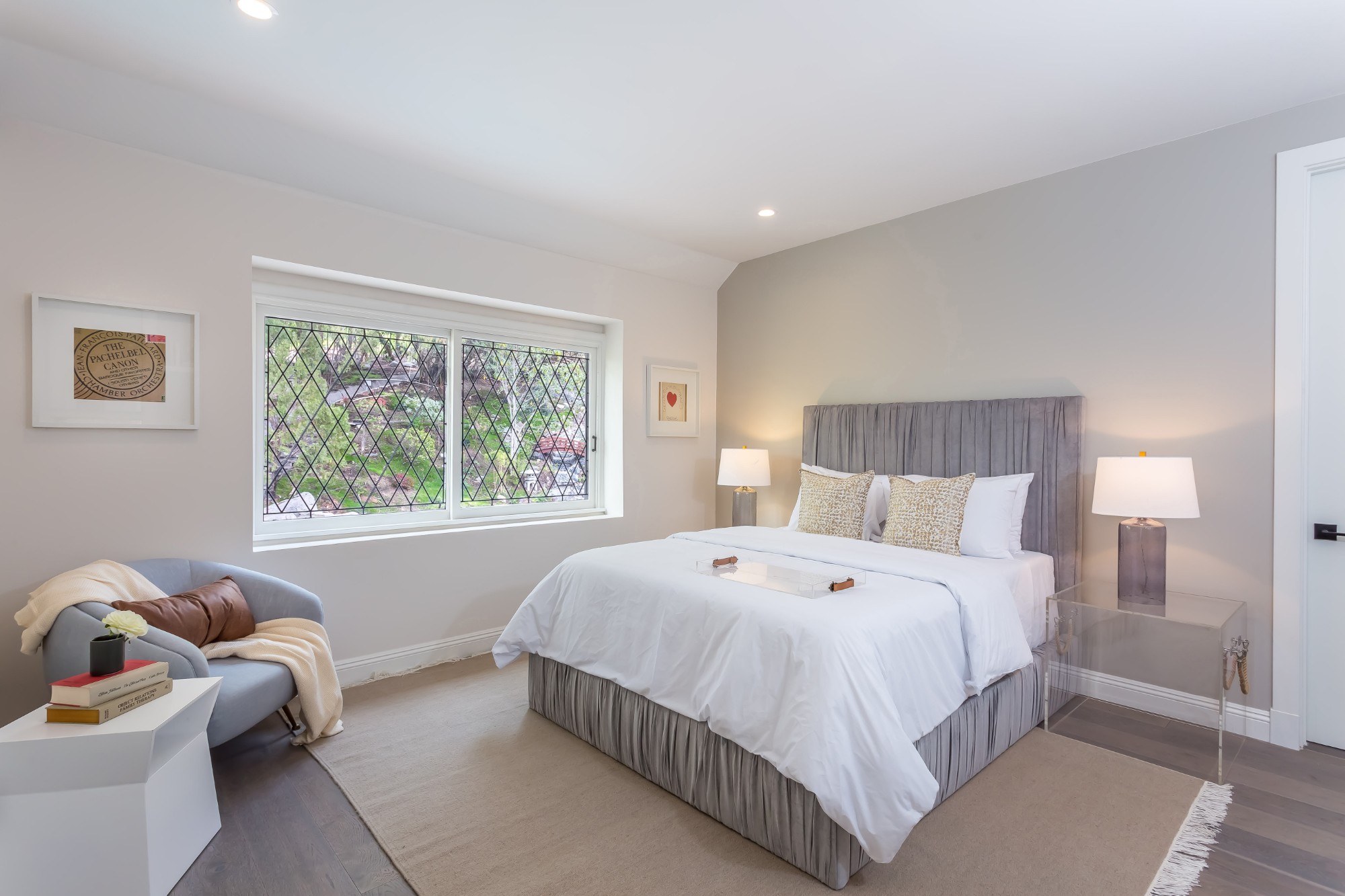 A beautifully remodeled designer residence in coveted Clark Gable Estates, set at the end of a quiet cul-de-sac behind private gates. Boasting greenbelt views, a shared tennis court and large grass field, elevator, sauna, pool, spa, outdoor barbecue area, Japanese garden with multiple water features, movie theater, wine room, and 3-car garage. Smart home technology includes Lutron, Sonos and Alexa. Private overnight neighborhood security officer with patrol car. Award-winning local public elementary school - Lanai Road.