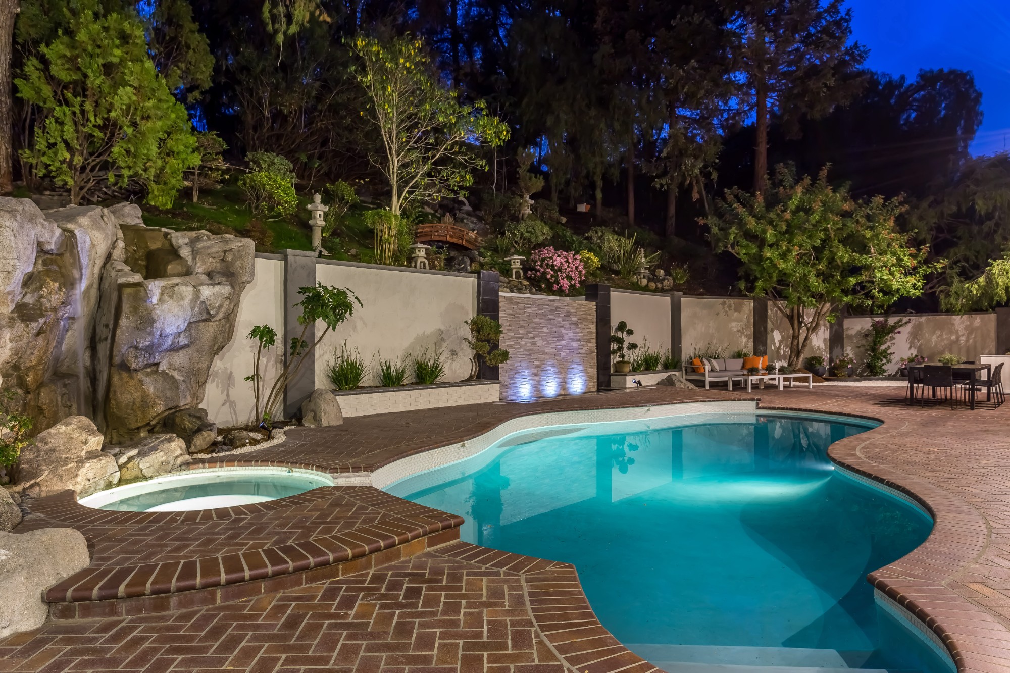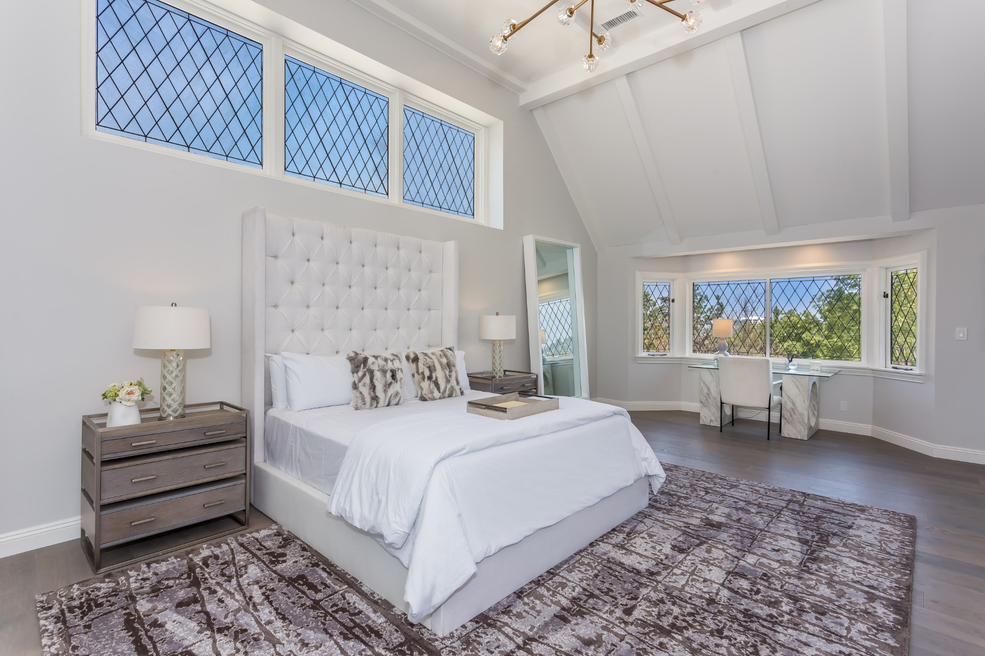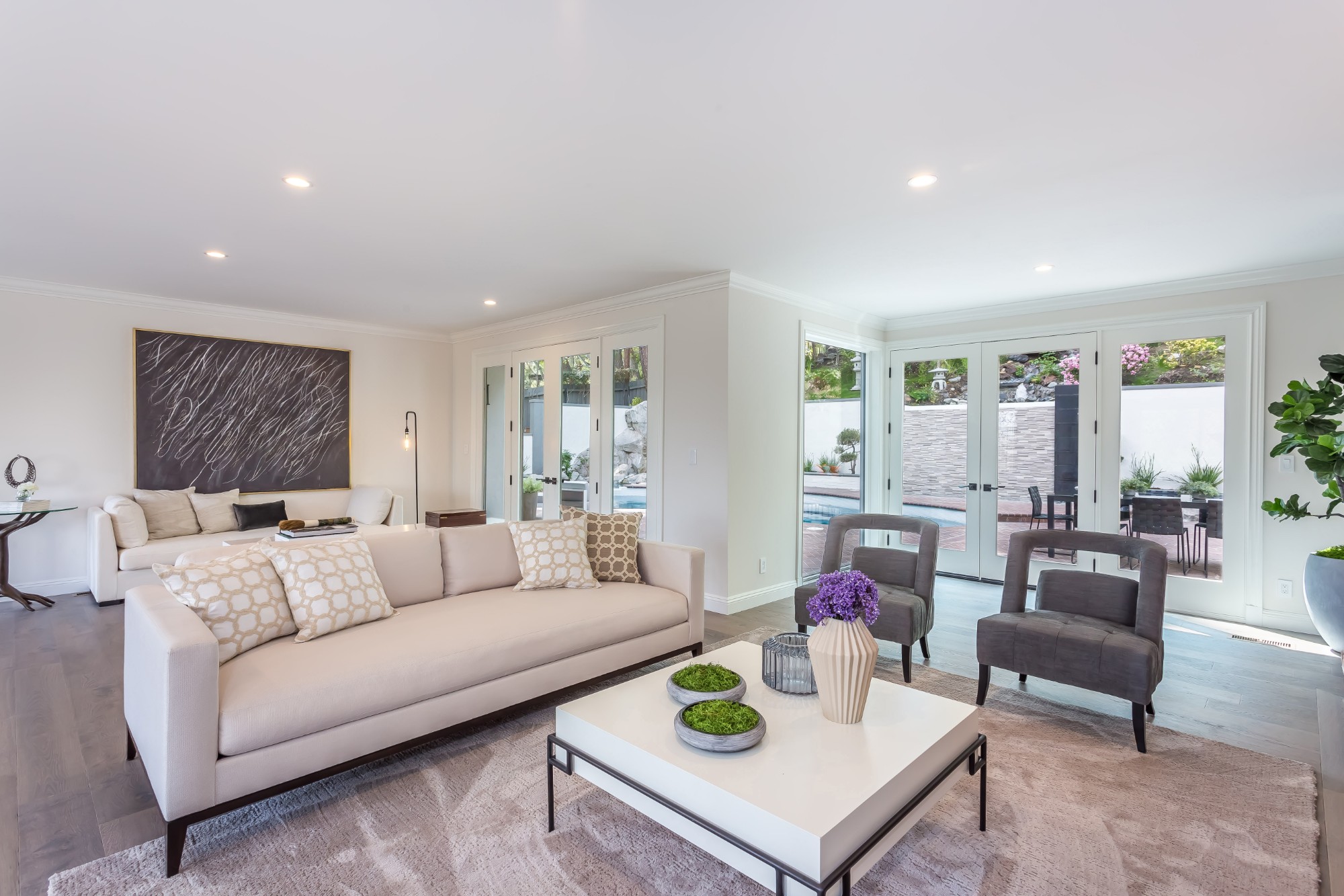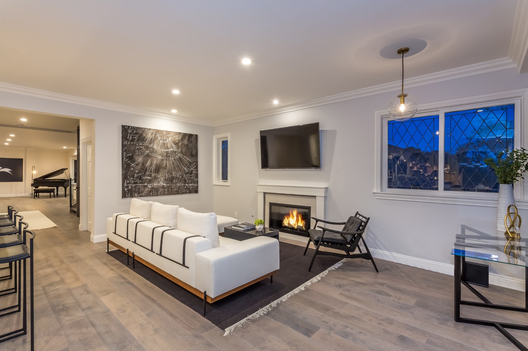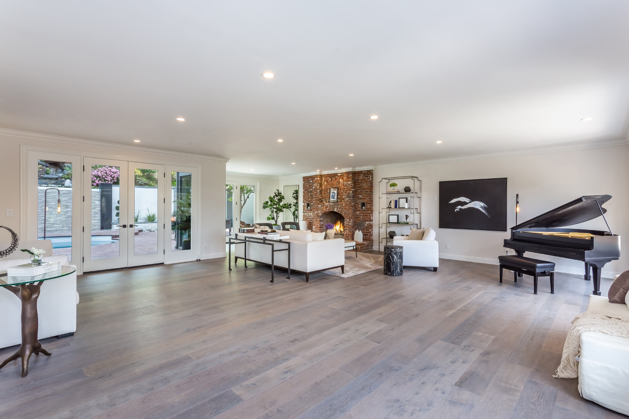 A beautifully remodeled designer residence in coveted Clark Gable Estates, set at the end of a quiet cul-de-sac behind private gates. Boasting greenbelt views, a shared tennis court and large grass field, elevator, sauna, pool, spa, outdoor barbecue area, Japanese garden with multiple water features, movie theater, wine room, and 3-car garage. Smart home technology includes Lutron, Sonos and Alexa. Private overnight neighborhood security officer with patrol car. Award-winning local public elementary school - Lanai Road.