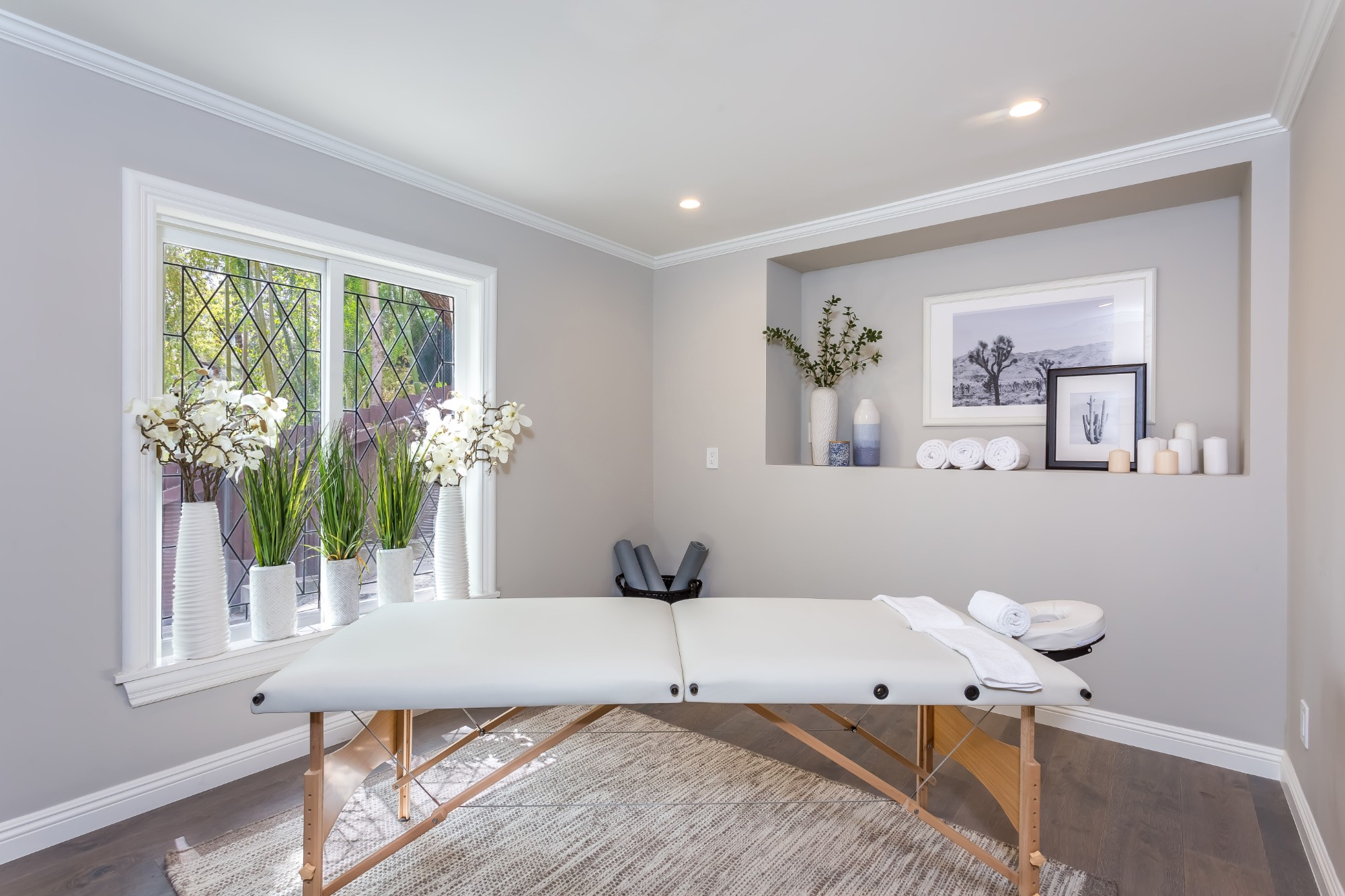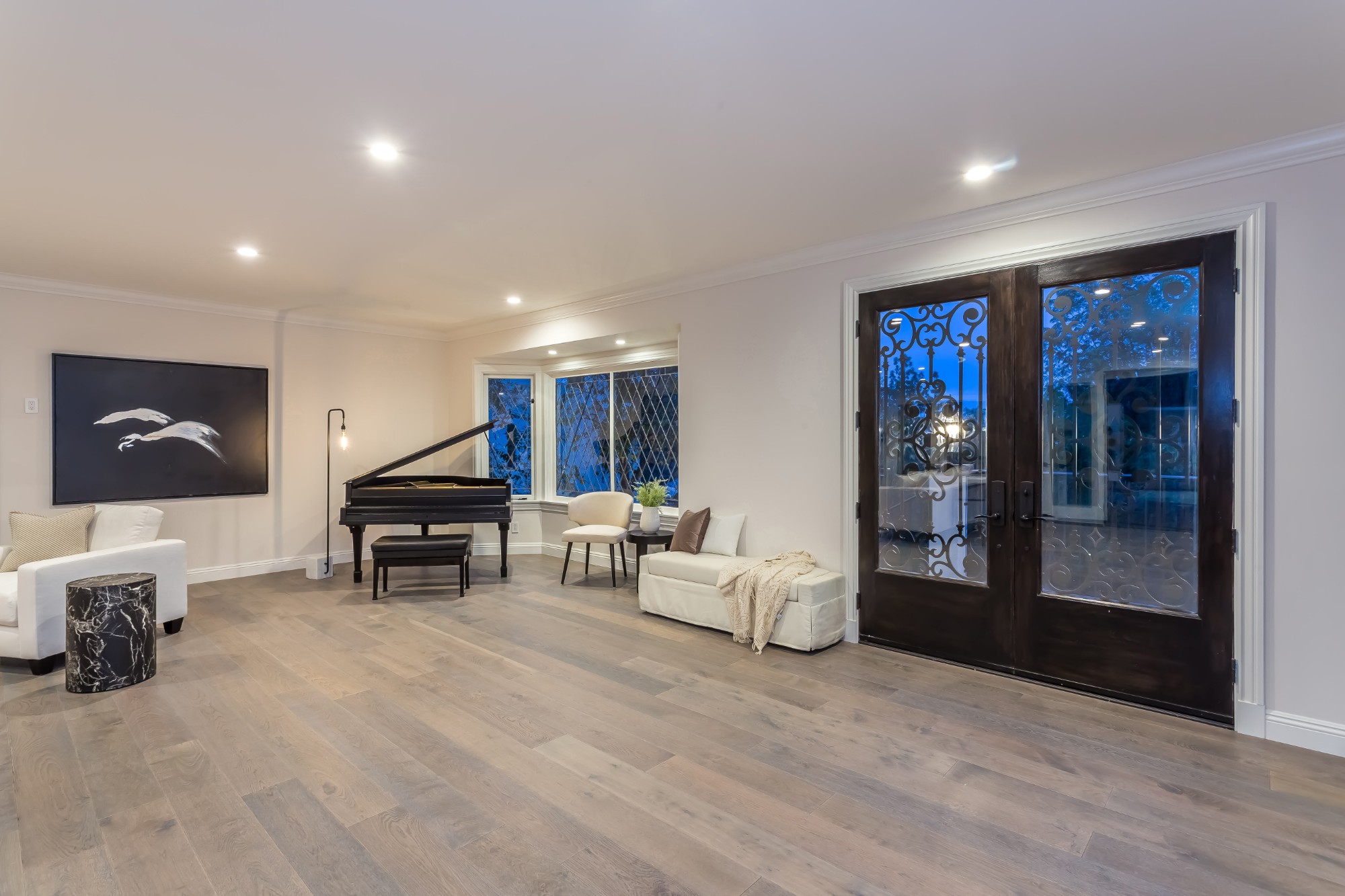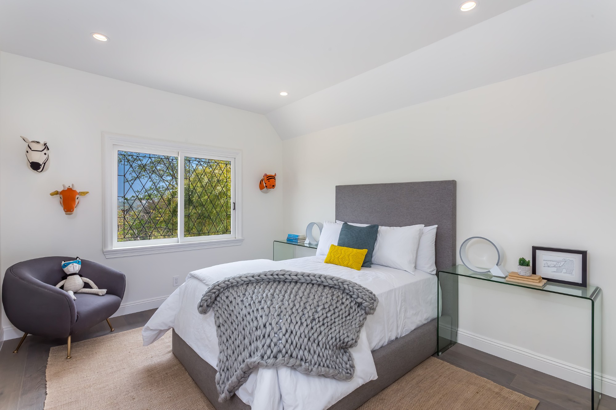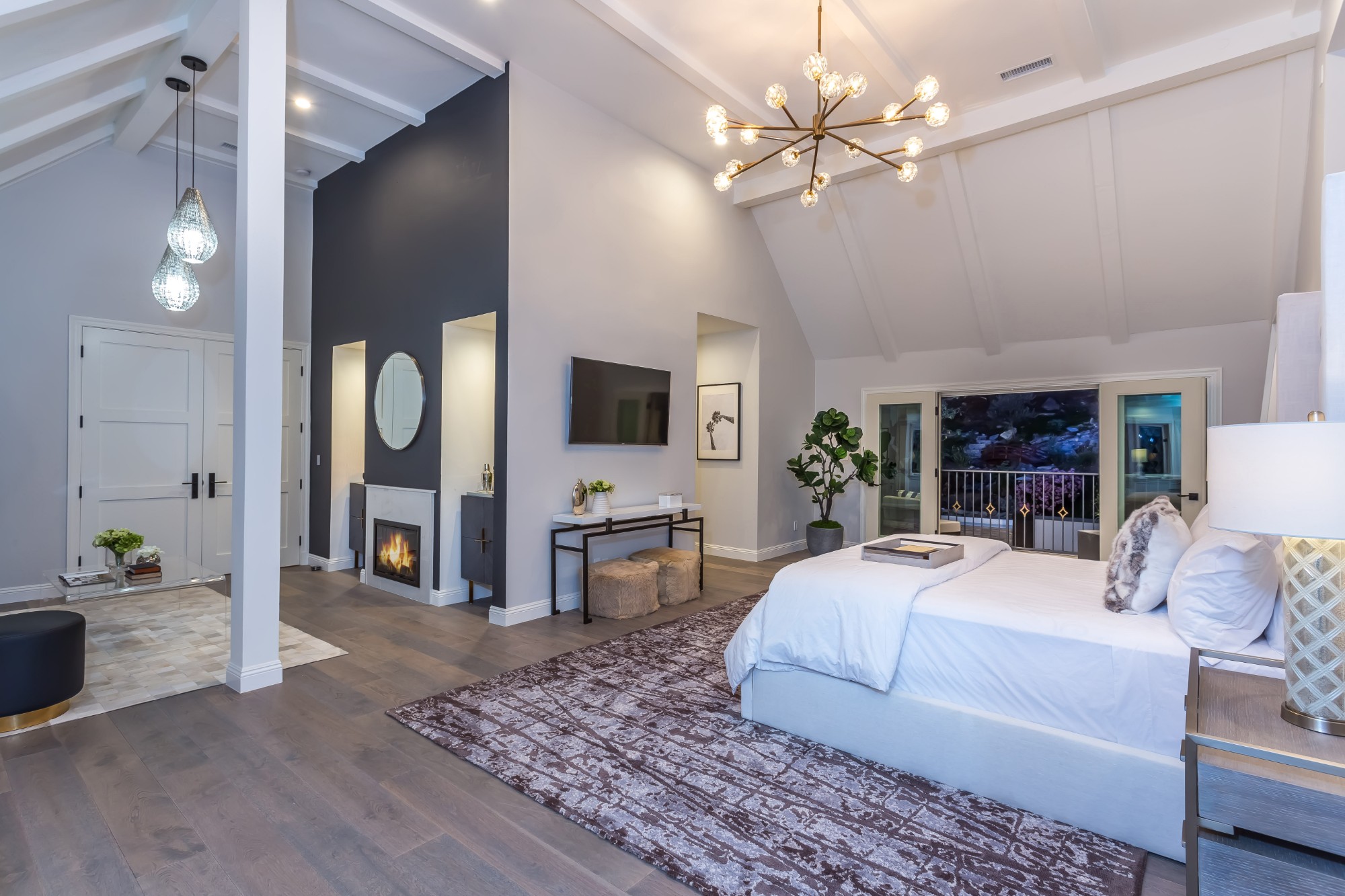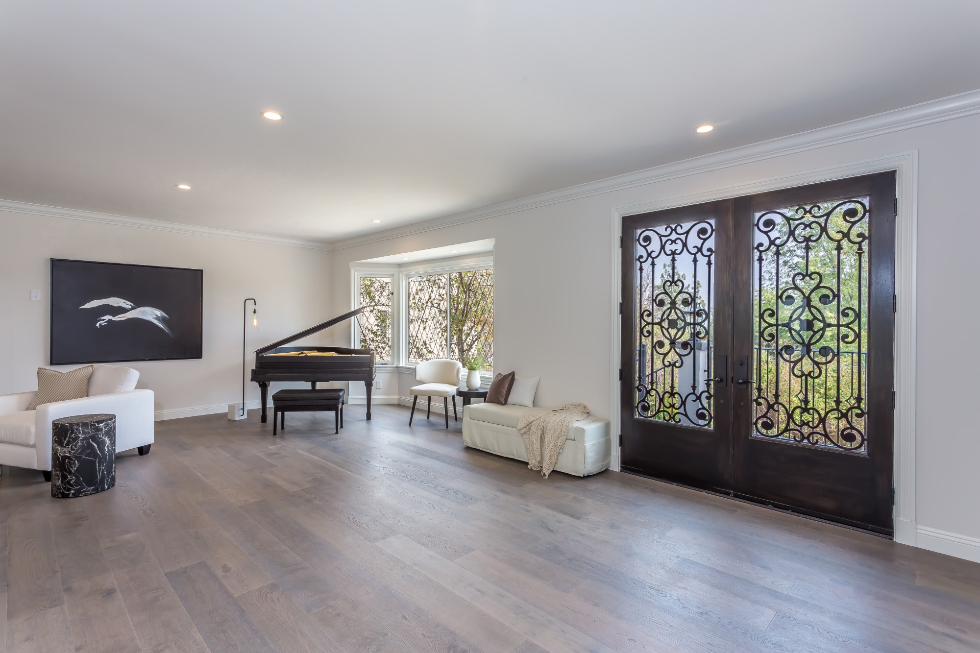 A beautifully remodeled designer residence in coveted Clark Gable Estates, set at the end of a quiet cul-de-sac behind private gates. Boasting greenbelt views, a shared tennis court and large grass field, elevator, sauna, pool, spa, outdoor barbecue area, Japanese garden with multiple water features, movie theater, wine room, and 3-car garage. Smart home technology includes Lutron, Sonos and Alexa. Private overnight neighborhood security officer with patrol car. Award-winning local public elementary school - Lanai Road.