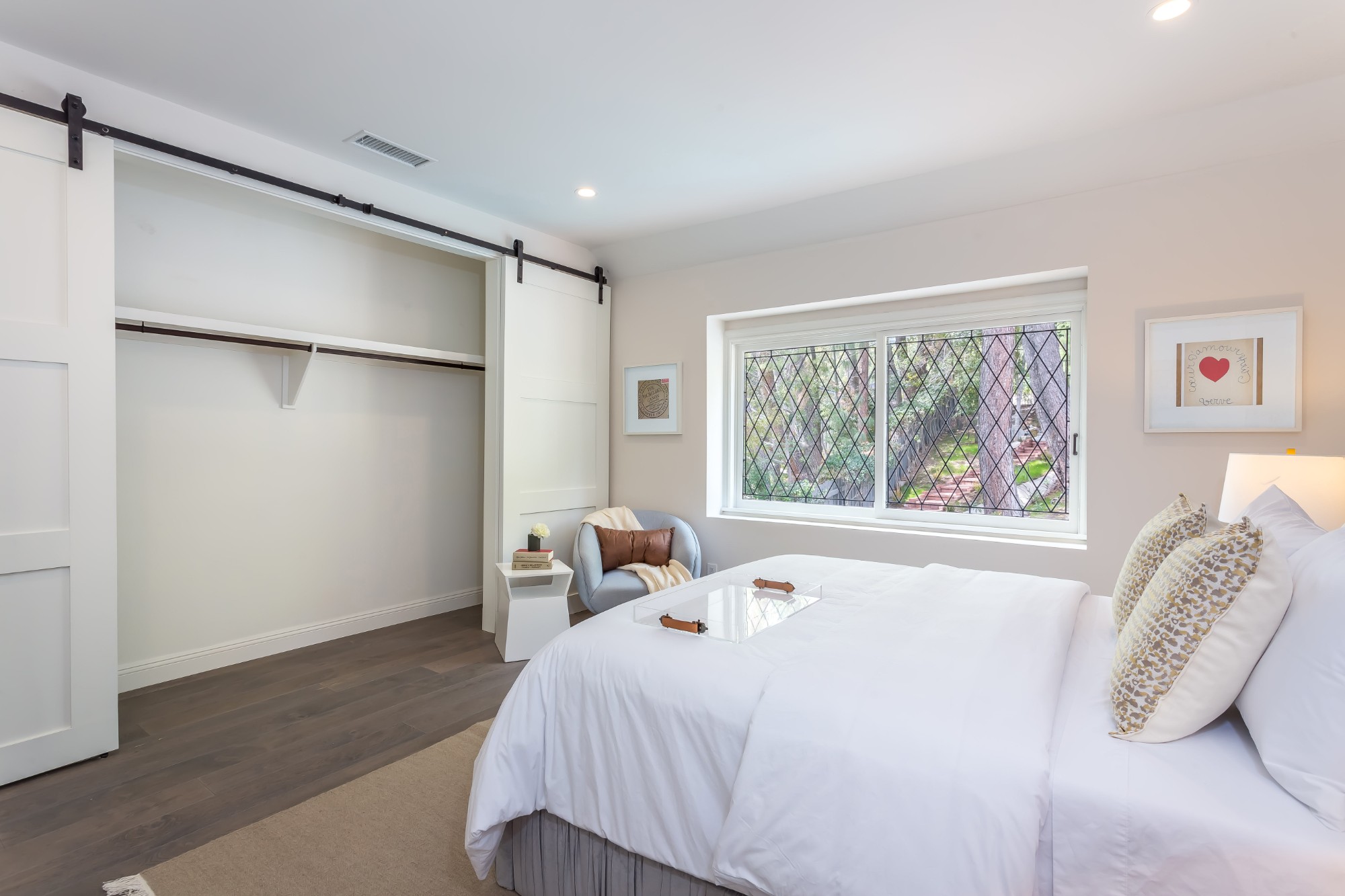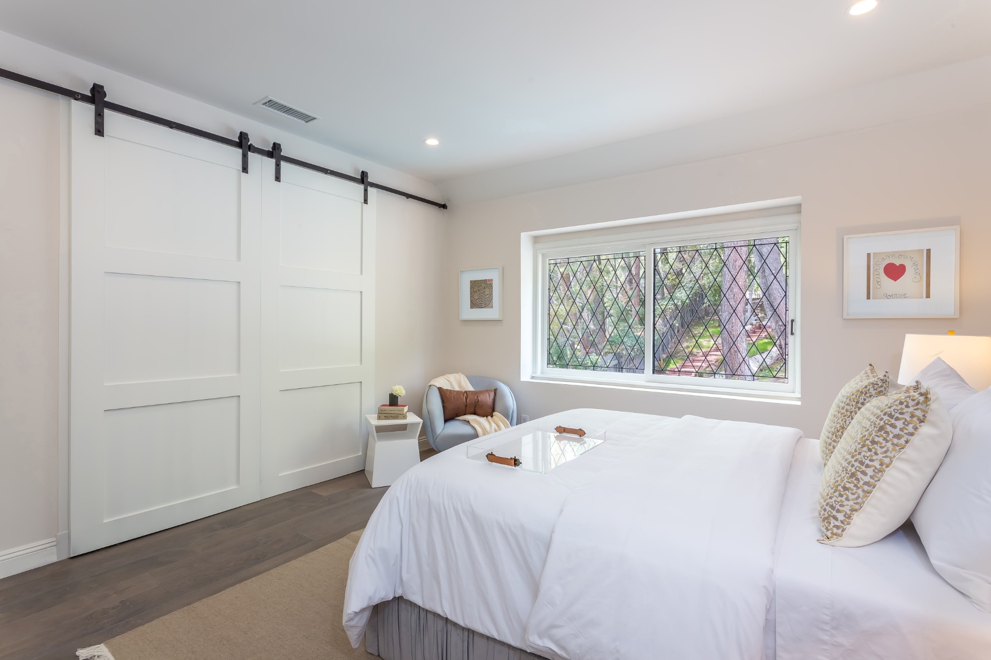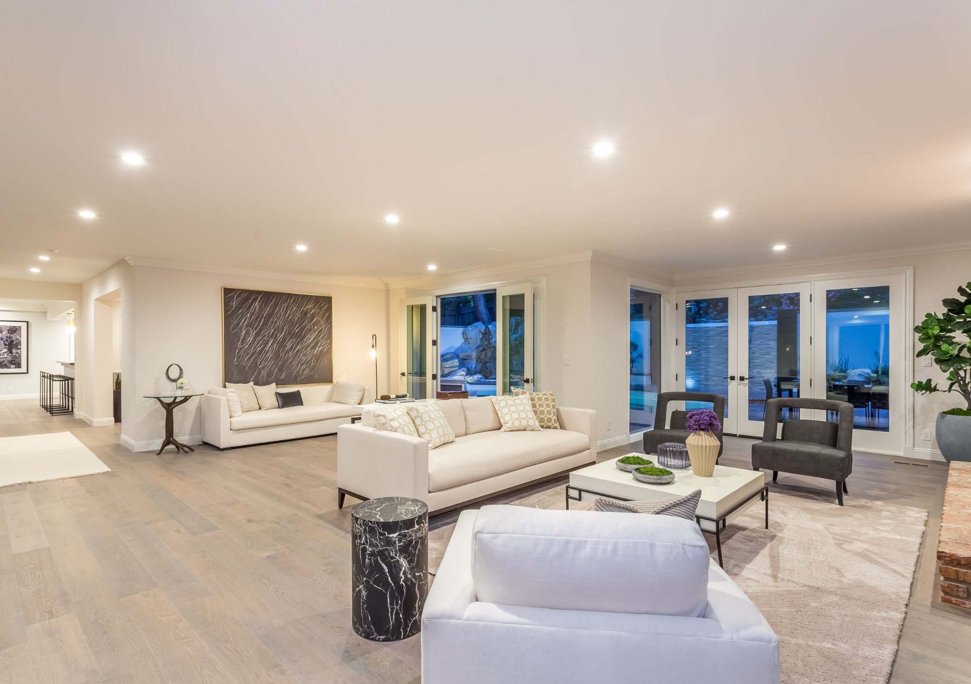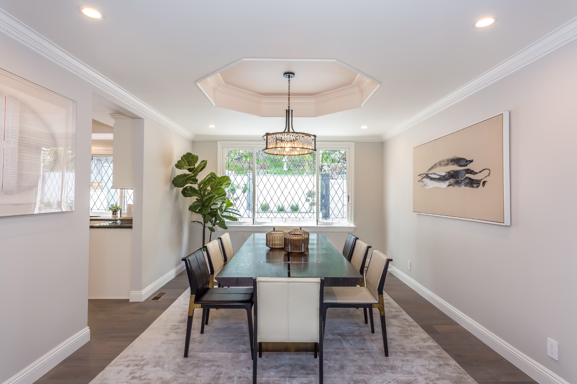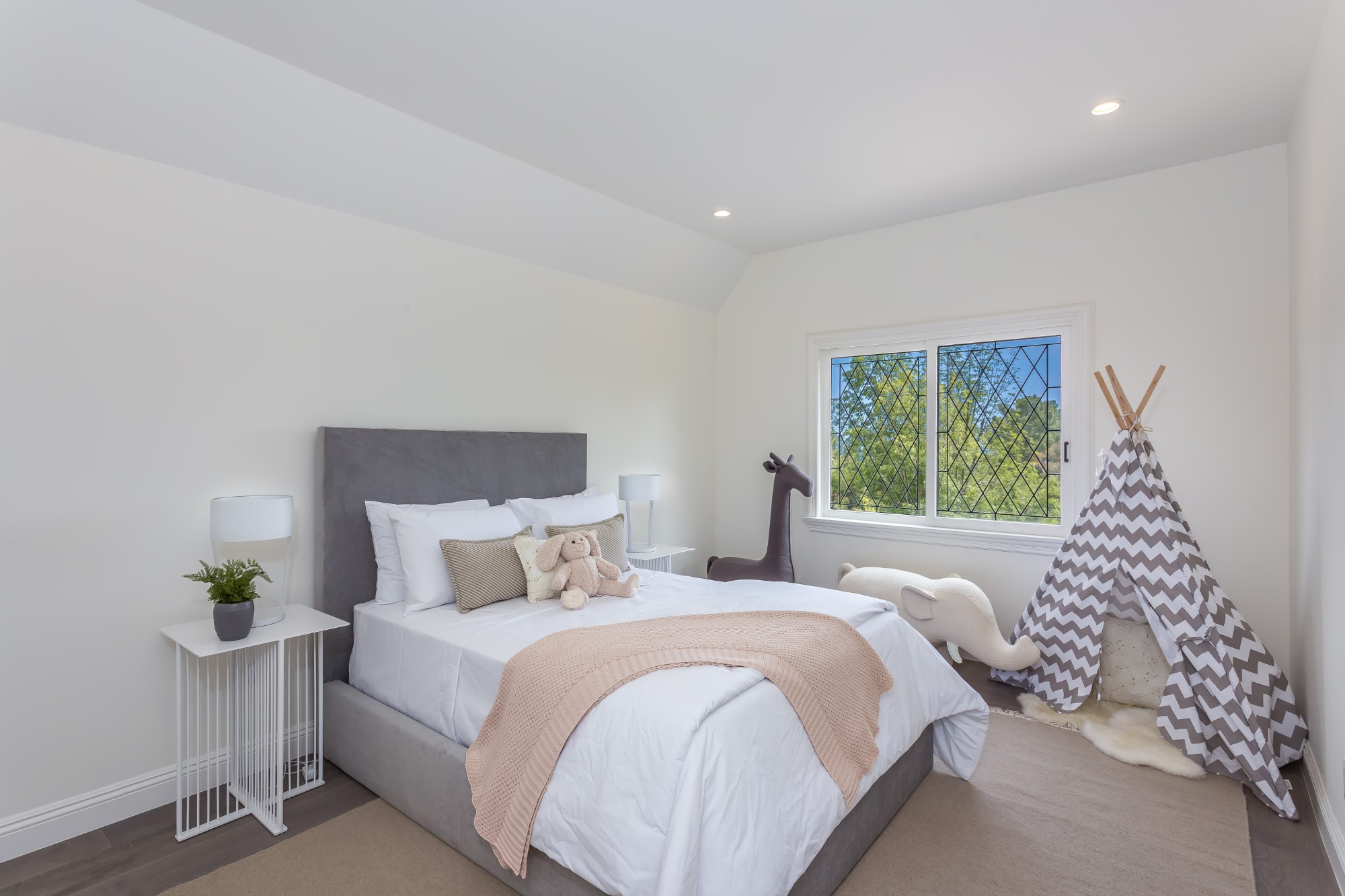 A beautifully remodeled designer residence in coveted Clark Gable Estates, set at the end of a quiet cul-de-sac behind private gates. Boasting greenbelt views, a shared tennis court and large grass field, elevator, sauna, pool, spa, outdoor barbecue area, Japanese garden with multiple water features, movie theater, wine room, and 3-car garage. Smart home technology includes Lutron, Sonos and Alexa. Private overnight neighborhood security officer with patrol car. Award-winning local public elementary school - Lanai Road.