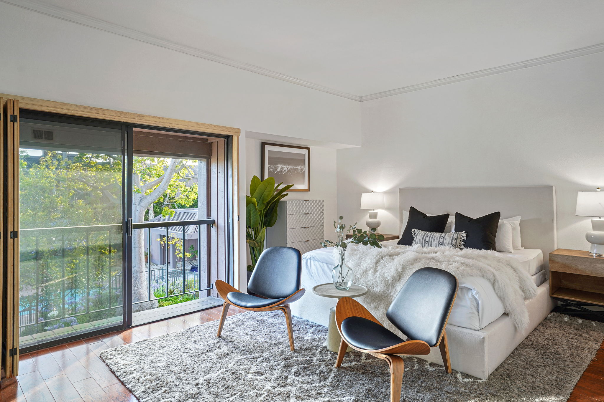 Pristinely refreshed townhome located in the privately gated Villa Vallarta resort community, adjacent to Venice and Playa Vista - the best of Silicon Beach. The luxe living room boasts high ceilings and an elegant gas fireplace. Large glass doors open up to a secluded, serene patio, perfect for entertaining. The kitchen features beautiful cabinetry, all brand new appliances, and granite countertops. The owner's suite is the perfect upstairs retreat with a balcony overlooking the lush courtyard, with an en-suite bathroom featuring an oversized soaking bathtub, double vanity, and separate walk-in shower. A short path leads to one of the community's four impressive swimming pools, providing the feeling of a five-star resort. Private attached 2-car garage.