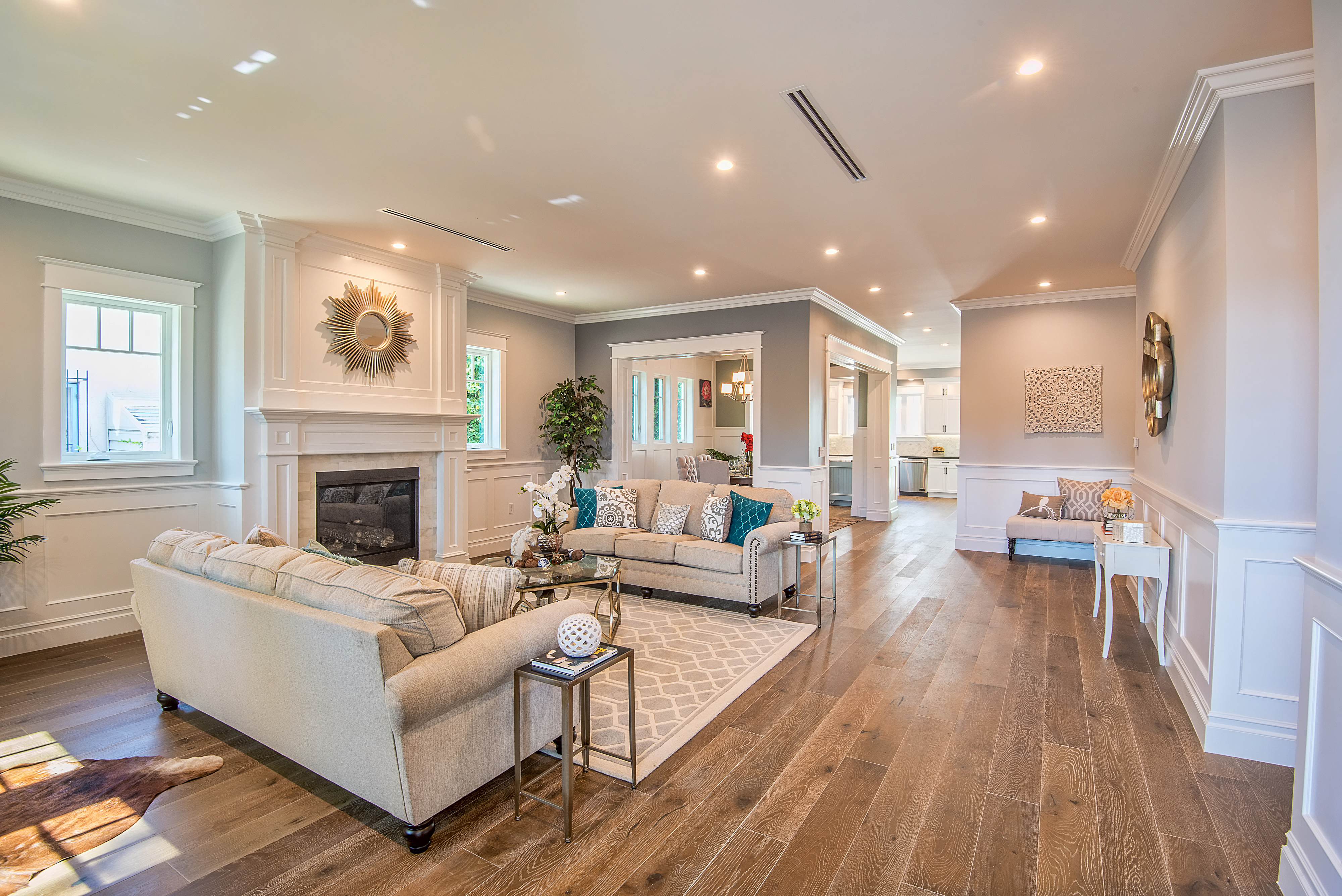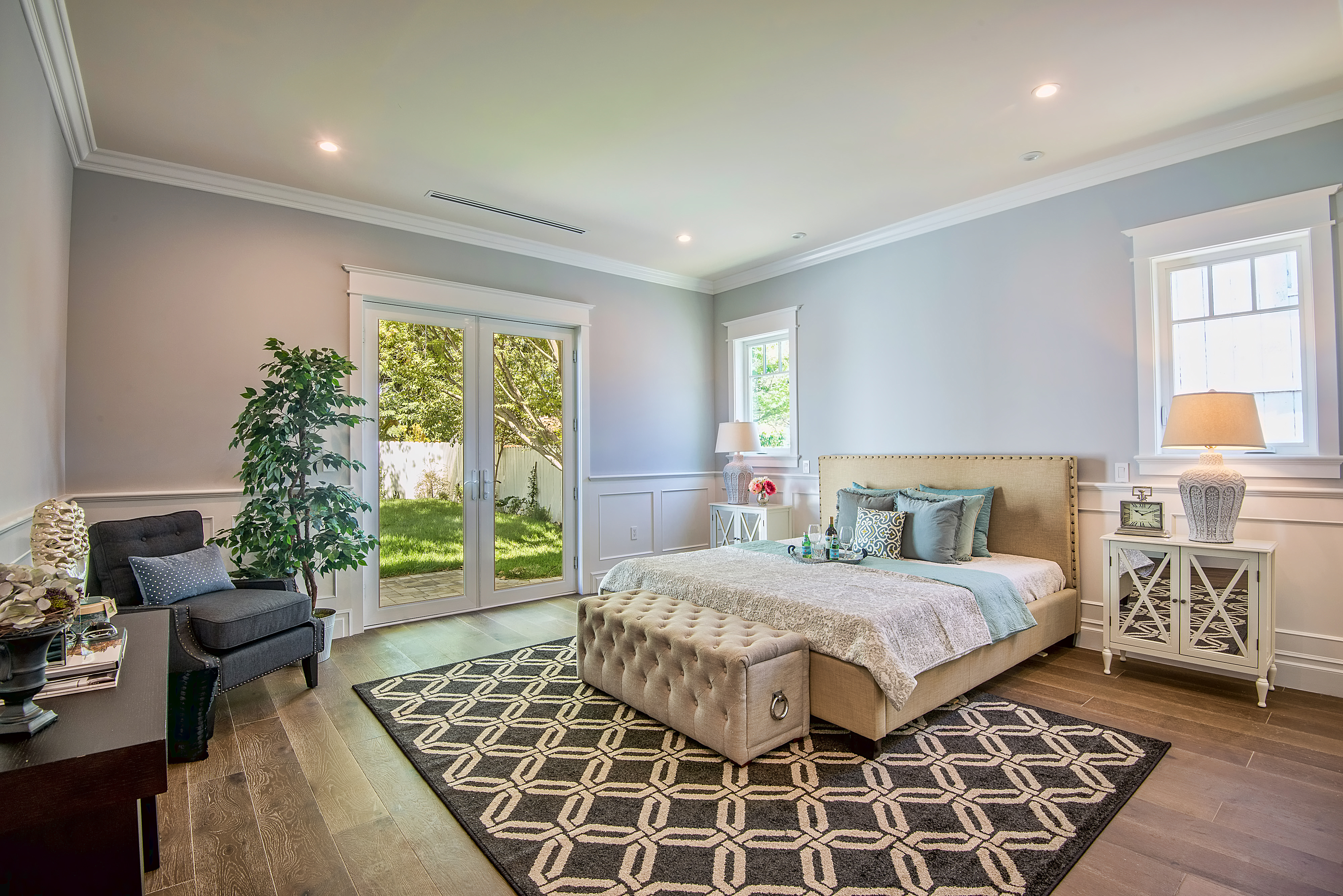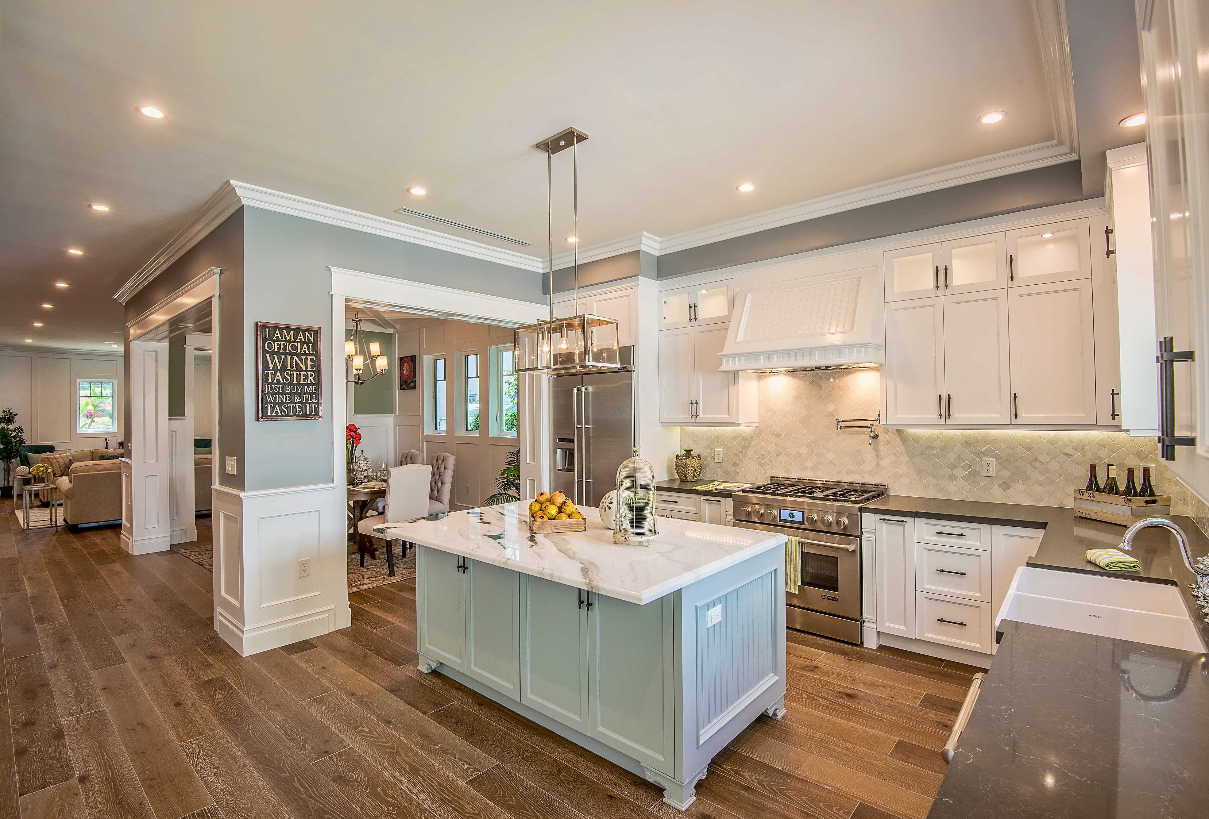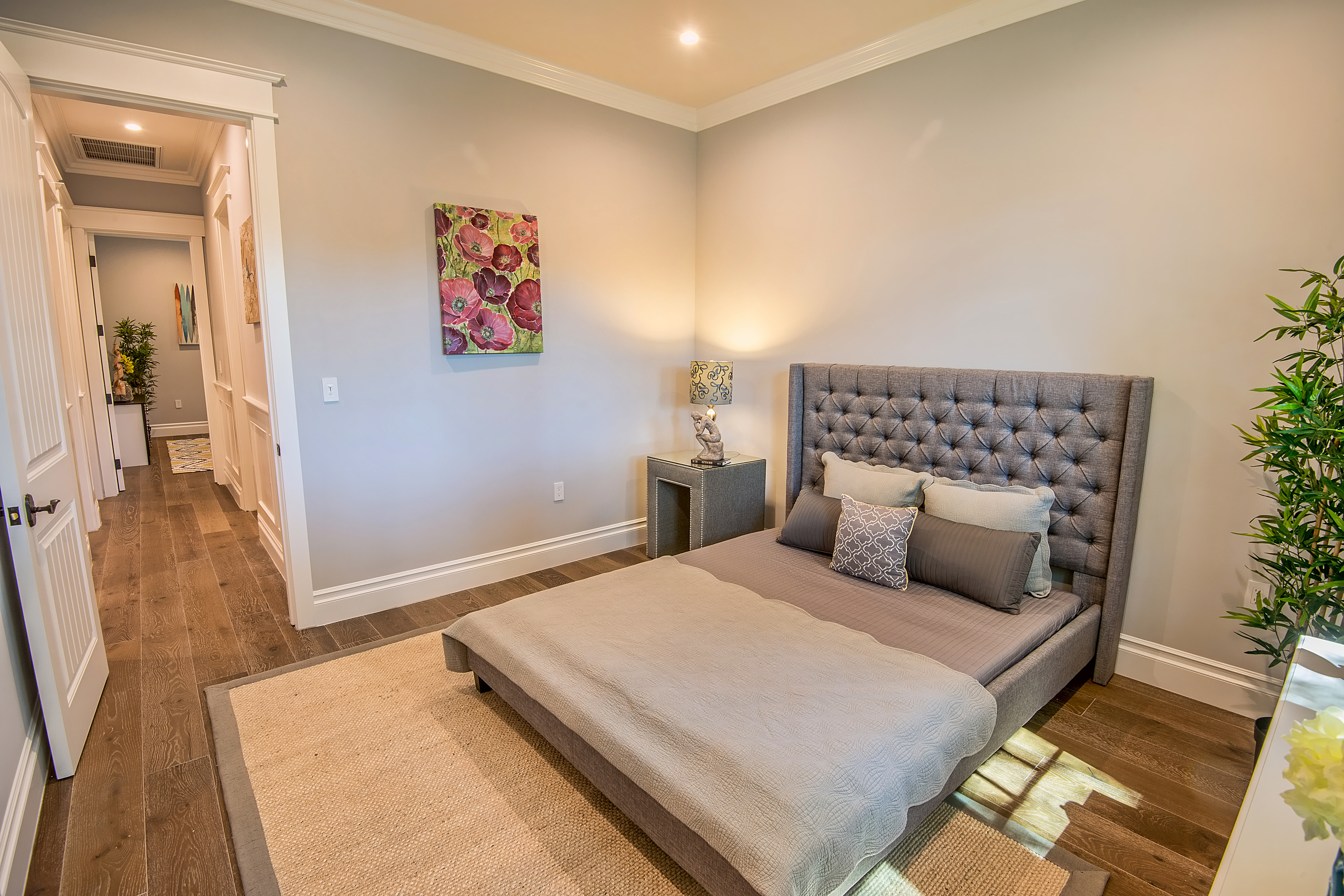 Stunning newly remodeled East Coast traditional home with a large bonus room in prime Sherman Oaks location. Inviting living room with fireplace opens to formal dining room. Chef's kitchen features center island, Caesar Stone counters, Jen Air stainless appliances and lovely breakfast area opening to back patio. Additional top-of-the-line features include distressed European oak wood floors, recess lighting, master suite including luxuriously bathroom with dual vanities, walk-in closet with custom built-ins and French doors open into an outside entertainers' backyard. Two bedrooms complete with built-ins and a large laundry room. Bonus room features laminate floors throughout. Two car garage. Walking distance to Ventura Blvd., shops and restaurants.