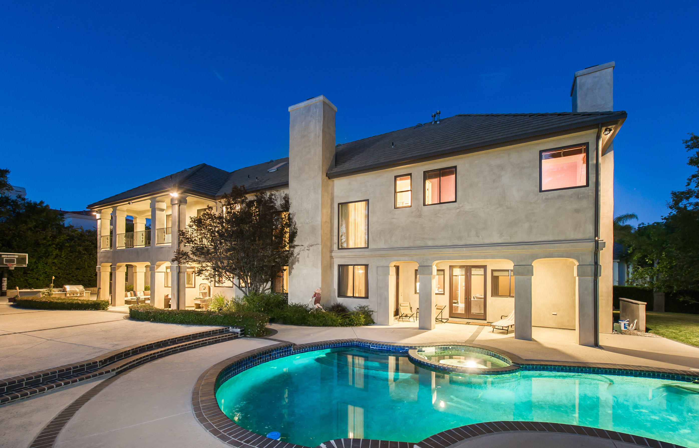 South of the Boulevard on a quiet cul de sac in "The Heights". Private French Chateau gated estate sits at the top of the hill with great views over looking the Valley. Sprawling 5775 square feet with 5 bedrooms, 8 bathrooms and a separate office with custom built ins. Dramatic entry, living room with high volume ceilings open to the second story. Elegant formal dining room. Family room boasts one of the homes 3 fireplaces, a separate seating area and a wet bar all opening to the spectacular back yard. Gourmet kitchen with center island, large breakfast room and walk in pantry. One bedroom and bath conveniently located downstairs. Sumptuous master suite with sitting room, recently remodeled separate his and her bathrooms and private balcony/patio overlooking the rear yard and capturing the stunning views. All bedrooms en-suite. Perfect for entertaining, the backyard boasts pool, spa, sports court, expansive lawn and patio. 3 car garage.