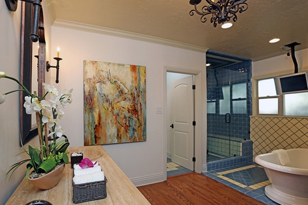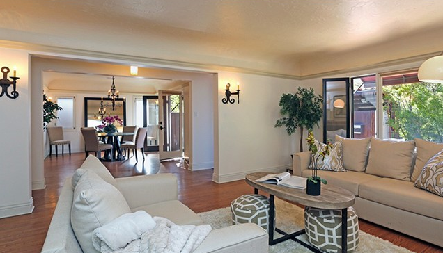 This romantic 1920's Spanish Colonial is truly a sanctuary within the city. It is impossible to ignore the meticulous eye by which this remodel was completed. The front patio/garden is intelligently set just above street level, in turn providing privacy & a perfect harbor for outdoor entertaining. Period finishes garnish the exteriors/interiors [stained-glass windows, iron work (sconces, chandeliers), quaint awnings, Malibu tile]. Enter into a petite foyer, flanked by a lovely formal dining room & spacious living room. Open floor plan affords light to flow between each space (living room into den; dining room into kitchen & down a center hallway to the bedrooms, which are set to the rear. Incorporated seamlessly are modern elements (integrated sound & security systems; automatic/retractable awnings (driveway/back deck) providing shelter on demand; a cooks kitchen featuring updated appliances/roof/windows/flooring; elegantly designed lighting & freshly updated, verdant landscaping.