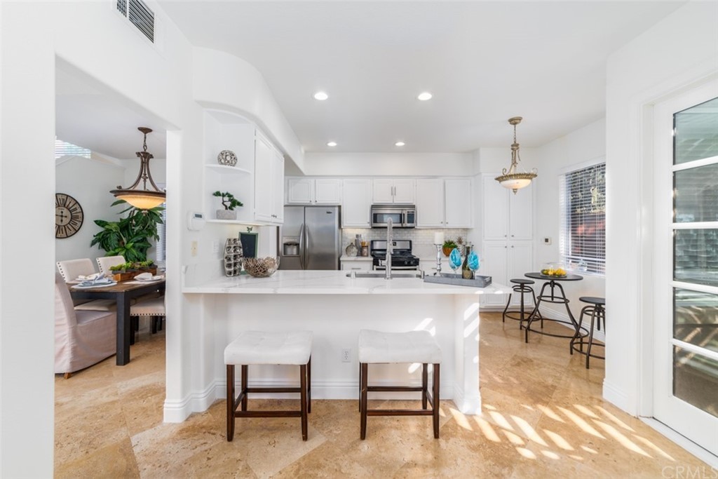 This entertainer’s two-story dream home on the perfect cul-de-sac location of Melinda Heights features an open concept first floor living/dining room area with beautiful natural light and high ceilings. The home was recently painted, brand new window coverings were installed, and travertine flooring, waterproof plank hardwood flooring, and epoxy flooring in the garage was added. The eat-in-kitchen has been completely upgraded with quartz countertops and the kitchen island was leveled and extended for ample seating. The kitchen cabinets were refinished with new paint and hardware - complete with farmer’s sink and a sparkling backsplash. On the second story, the home has 5 total bedrooms (4 bedrooms all with closets + 1 loft space), and two large bathrooms both with double sinks - one of which is the master bathroom suite, complete with a walk in closet and a large soaking tub! The best feature of the home is stepping outside to where your outdoor oasis and retreat awaits you, your family, and your guests. Imagine yourself entertaining on your oversized outdoor patio next to your pebble tec salt water pool and spa listening to the relaxing sound of the water spills. The patio also features a large wood pergola, an outdoor fire pit, and a built in BBQ island! Included in the HOA fees, you will have access to all the RSM community amenities such as the beach club, pools, tennis courts, etc. Most importantly, all Rancho Santa Margarita Schools in the Saddleback Valley School District are well known to be the best there is. This particular area is zoned for the award winning blue ribbon Melinda Heights Elementary school. Prime location and close proximity to toll roads, shopping, restaurants, parks, hiking and biking trails, schools, Lake Mission Viejo and so much more. You won’t want to wait – this home has it all!
