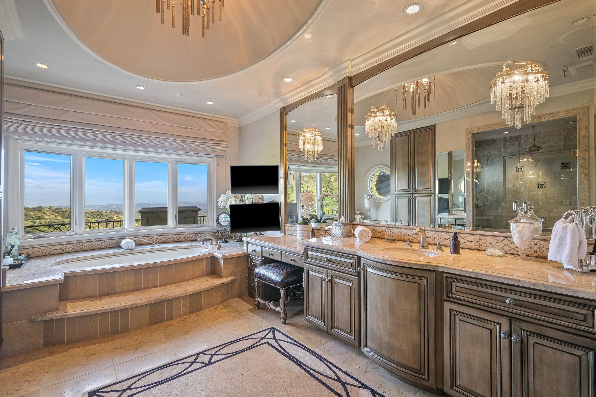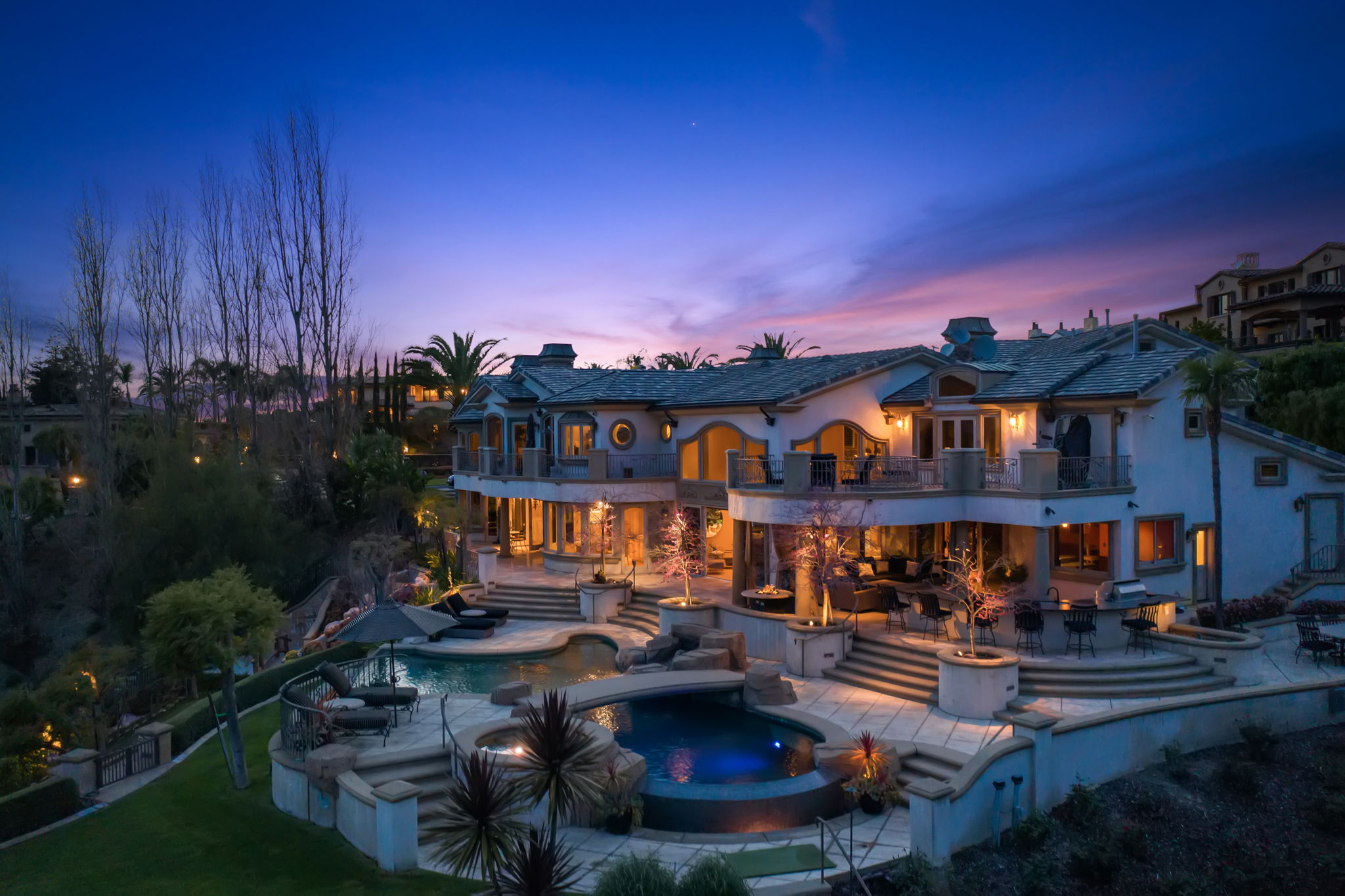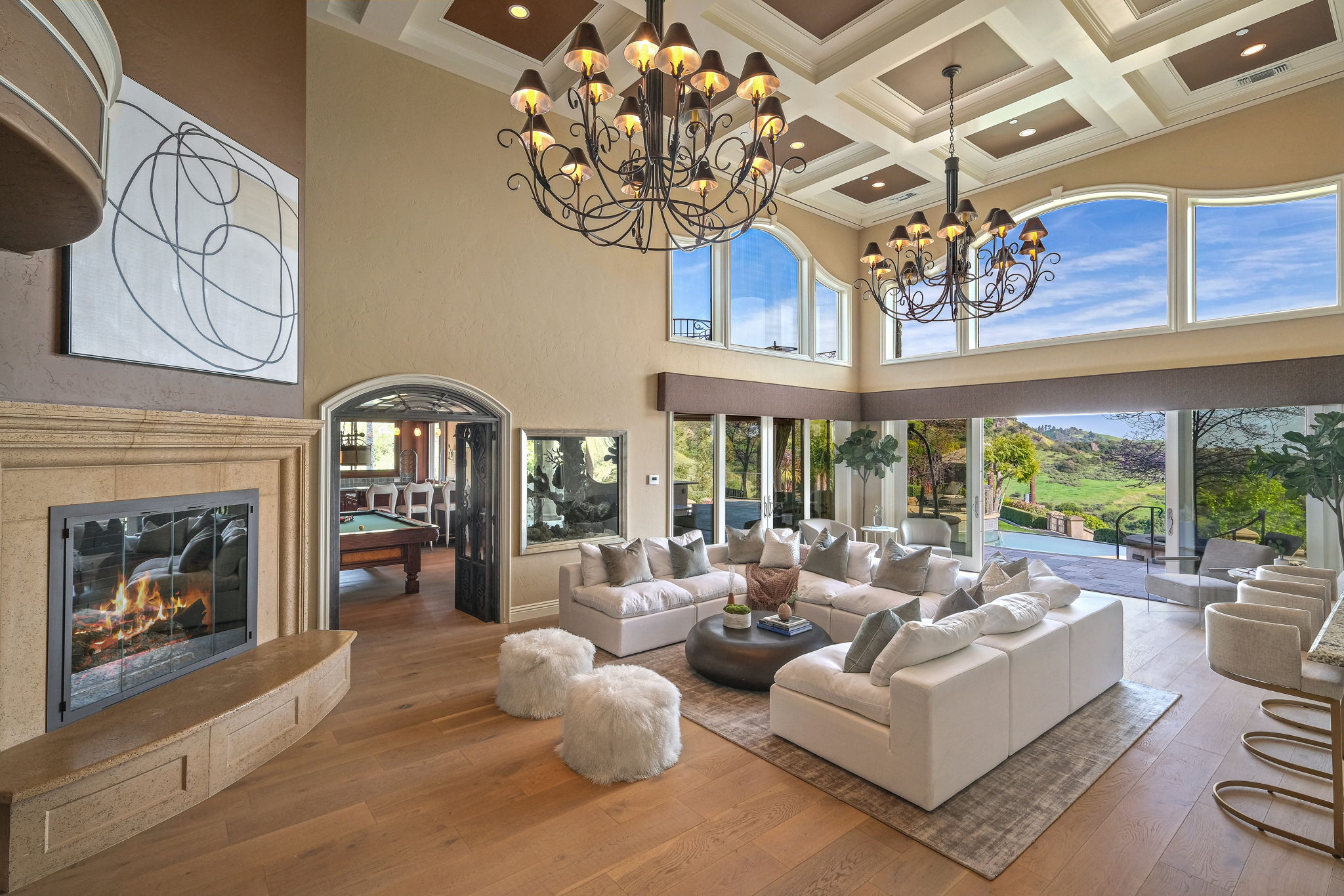 Located within the prestigious guard-gated community of Gordon Highlands, this palatial estate boasts impressive interior scale, phenomenal hilltop and city views, and a massive entertaining yard. The home is a personal resort sanctuary, with more than 8,500SF of interior living space, 1,700SF of covered porches and balconies, nearly 2,000SF of garage space for 8 cars, and an impressive 4 1/2 acres of pristine land. Featuring immaculate outdoor grounds with lush landscaping, complete outdoor kitchen, hilltop cabana, and two infinity-edge pools overlooking the city below. Soaring ceilings allow an abundance of natural light to permeate the home. The gourmet kitchen offers custom cabinetry and only the finest in appliances, including Wolf side-by-side ovens. Other amenities include a personal gym, 15-seat theatre with a fiber optic star ceiling, game-room/bar, formal living and dining rooms, a museum-quality saltwater aquarium, and upgraded technology throughout with Crestron audiovisual automation. This custom home boasts high-end finishes with rich textures and a cohesive blend of organic materials, creating a welcoming yet elegant property, including hand-painted ceilings, Marvin windows, Venetian plaster, and limestone flooring.
