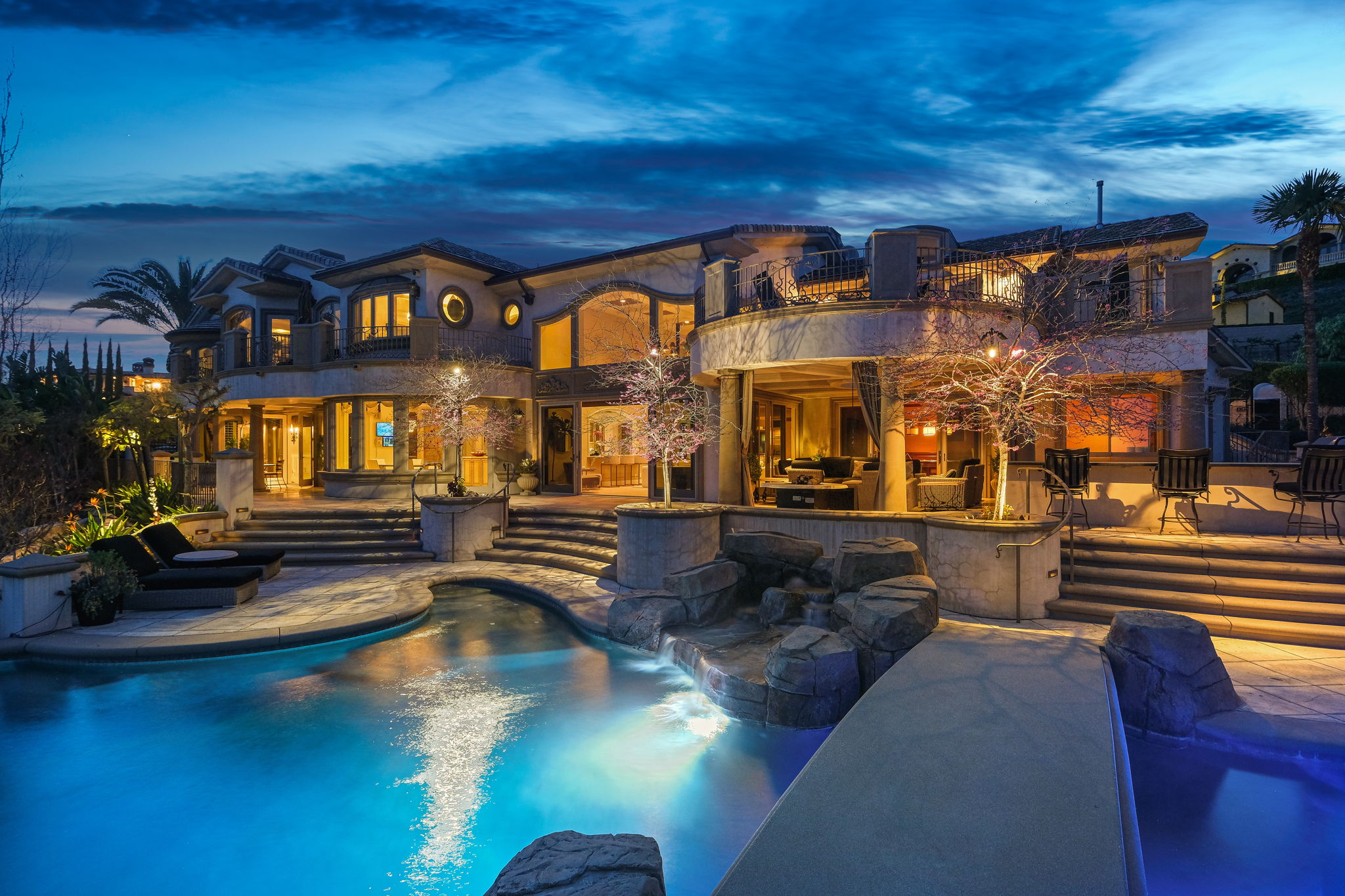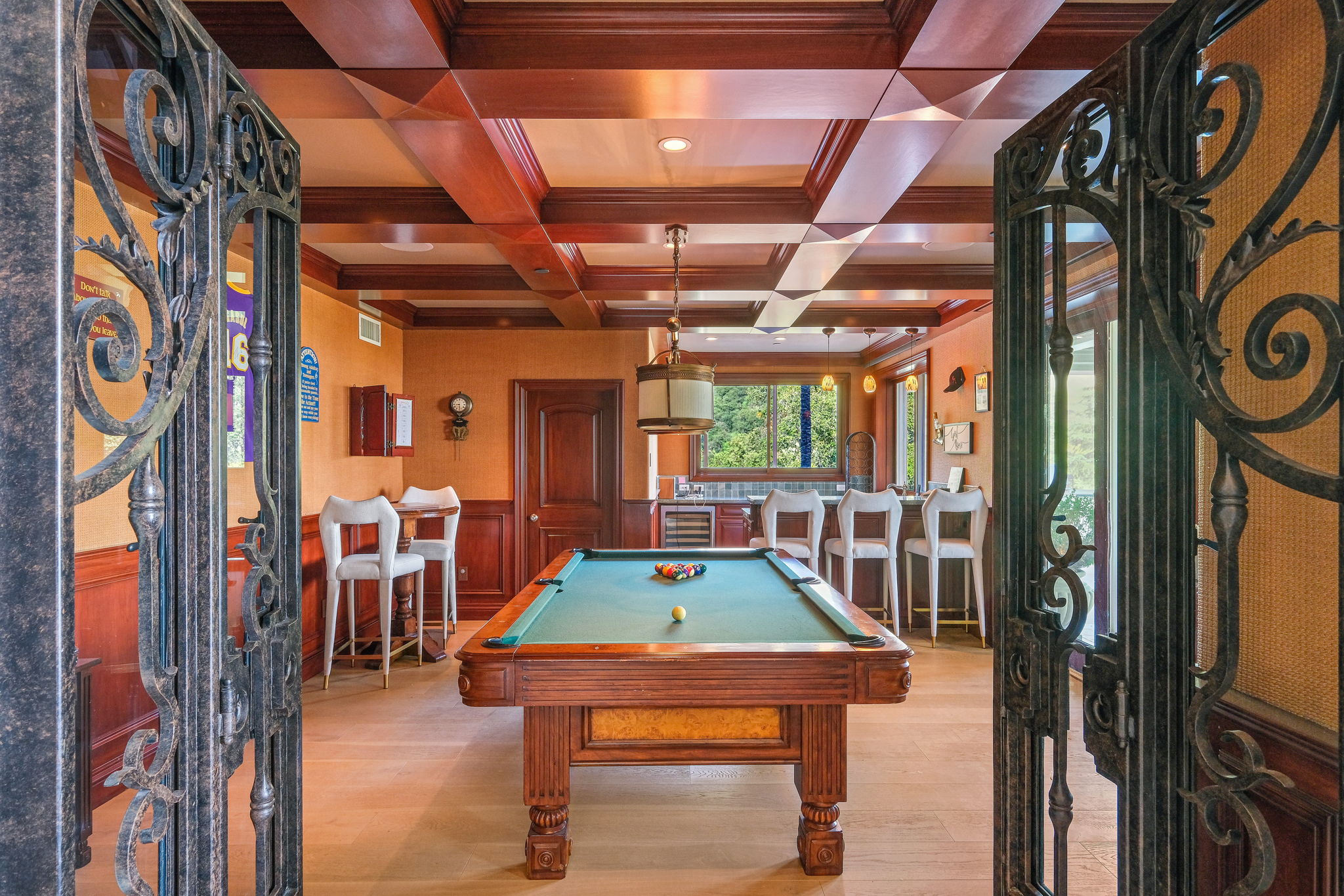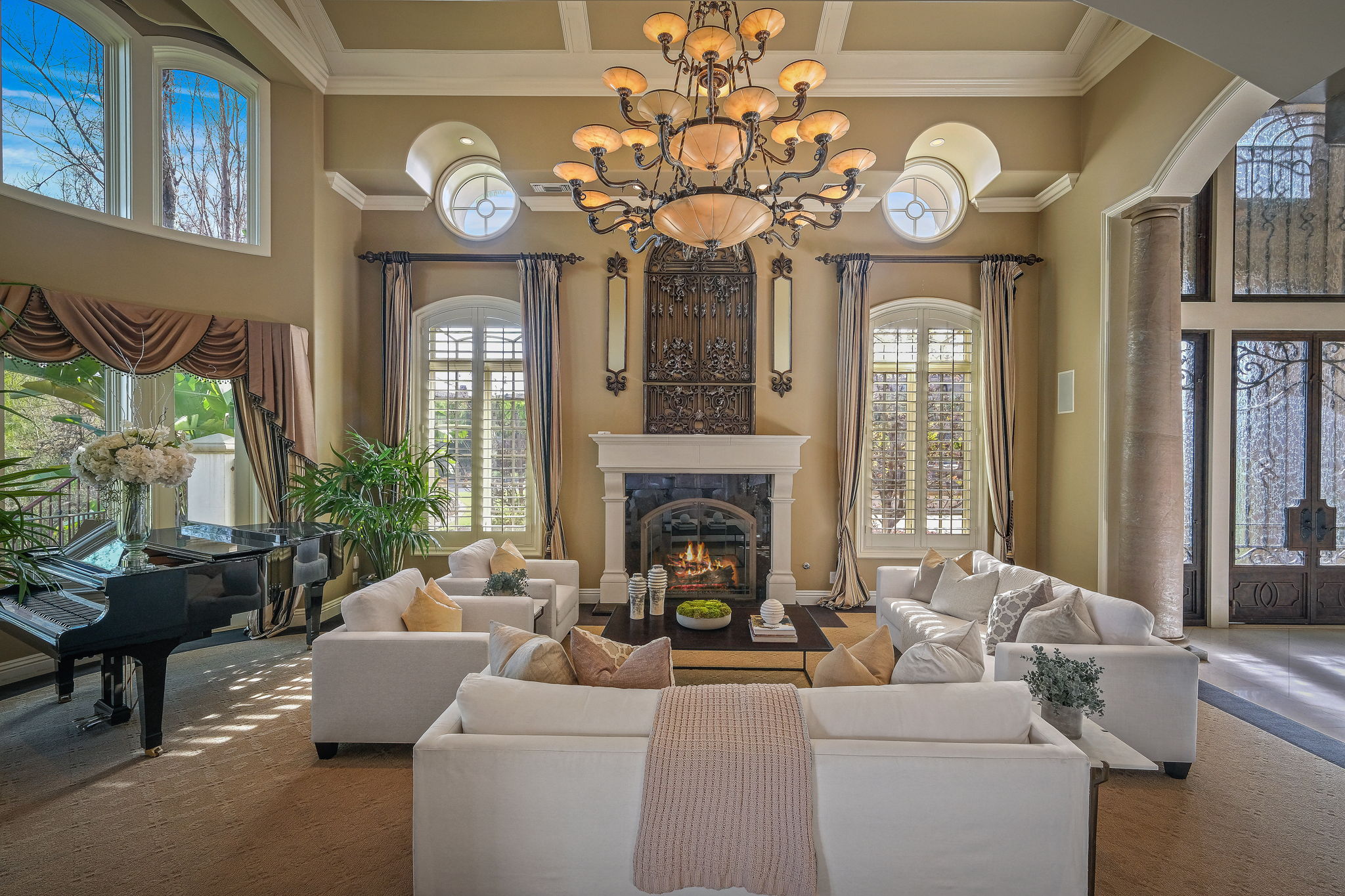 Located within the prestigious guard-gated community of Gordon Highlands, this palatial estate boasts impressive interior scale, phenomenal hilltop and city views, and a massive entertaining yard. The home is a personal resort sanctuary, with more than 8,500SF of interior living space, 1,700SF of covered porches and balconies, nearly 2,000SF of garage space for 8 cars, and an impressive 4 1/2 acres of pristine land. Featuring immaculate outdoor grounds with lush landscaping, complete outdoor kitchen, hilltop cabana, and two infinity-edge pools overlooking the city below. Soaring ceilings allow an abundance of natural light to permeate the home. The gourmet kitchen offers custom cabinetry and only the finest in appliances, including Wolf side-by-side ovens. Other amenities include a personal gym, 15-seat theatre with a fiber optic star ceiling, game-room/bar, formal living and dining rooms, a museum-quality saltwater aquarium, and upgraded technology throughout with Crestron audiovisual automation. This custom home boasts high-end finishes with rich textures and a cohesive blend of organic materials, creating a welcoming yet elegant property, including hand-painted ceilings, Marvin windows, Venetian plaster, and limestone flooring.