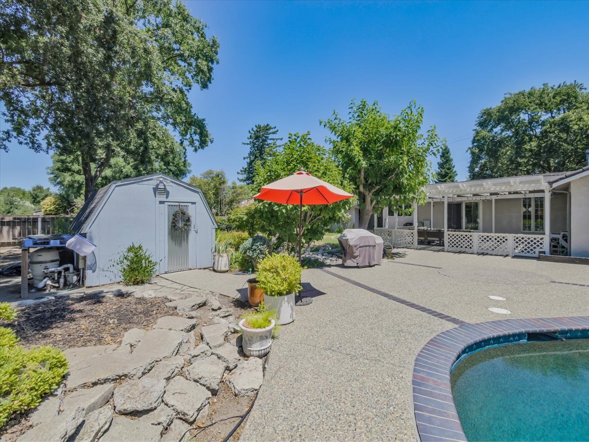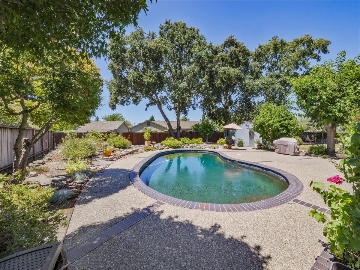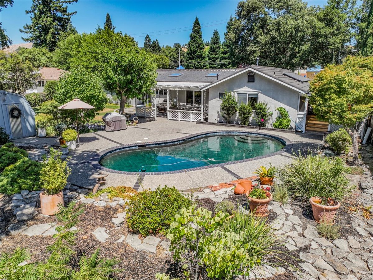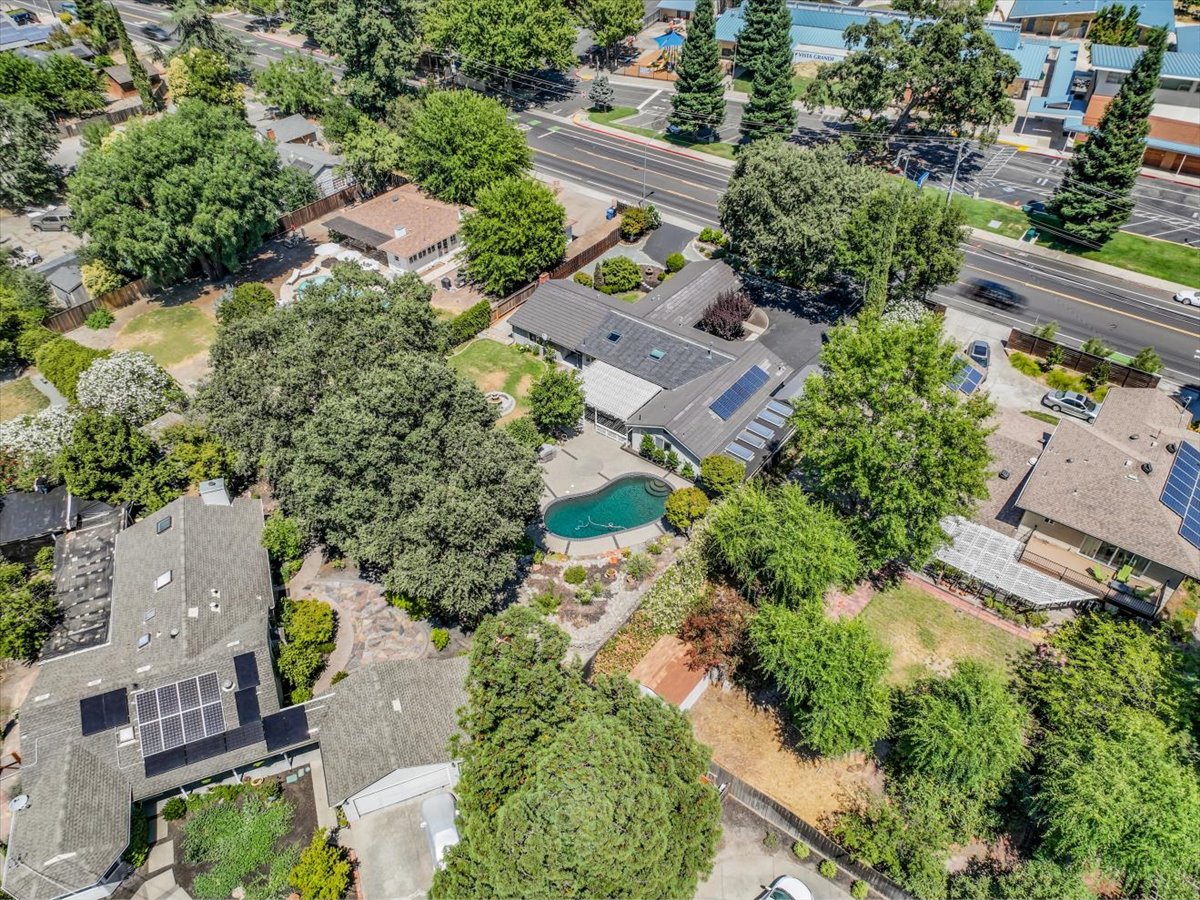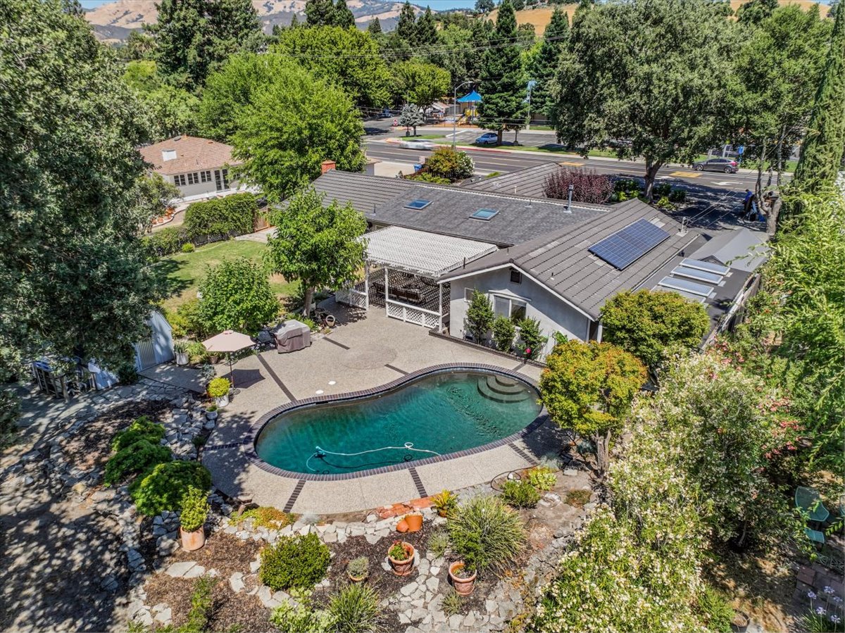 ed, partially upgraded rancher with 3 bedrooms, 2 bathrooms + office room (originally 4 beds). Living and formal dining room with dry bar, wine closet. Upgraded eat-in, light-bright kitchen with double sinks, open ceilings, skylights, family room. Paid-off solar system. Oversize laundry-utility room. 3-zone Central heating and air conditioning systems. Soak in your own swimming pool in a park-like setting within a mature, landscaped backyard. Semicircular driveway with ample parking for residents and guests. No HOA fees. Premium lot with endless possibilities for an ADU with side yard access for an RV and other motorized toys. Fast and easy access to Hwy 680. Conveniently located within close proximity to downtown with great shopping and restaurants, superb district schools, Diablo Country Club, Iron Horse Trail, and an array of community services!