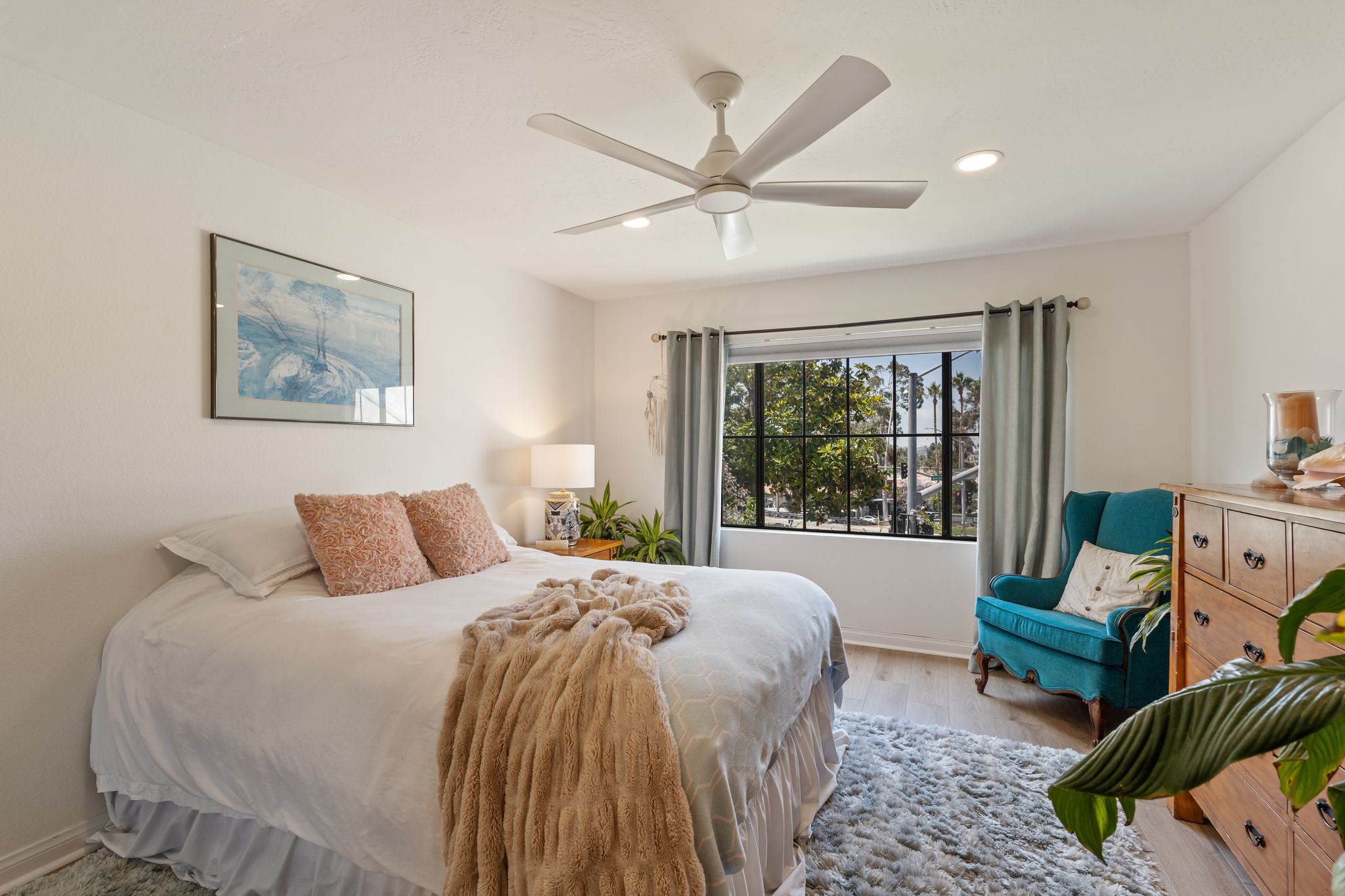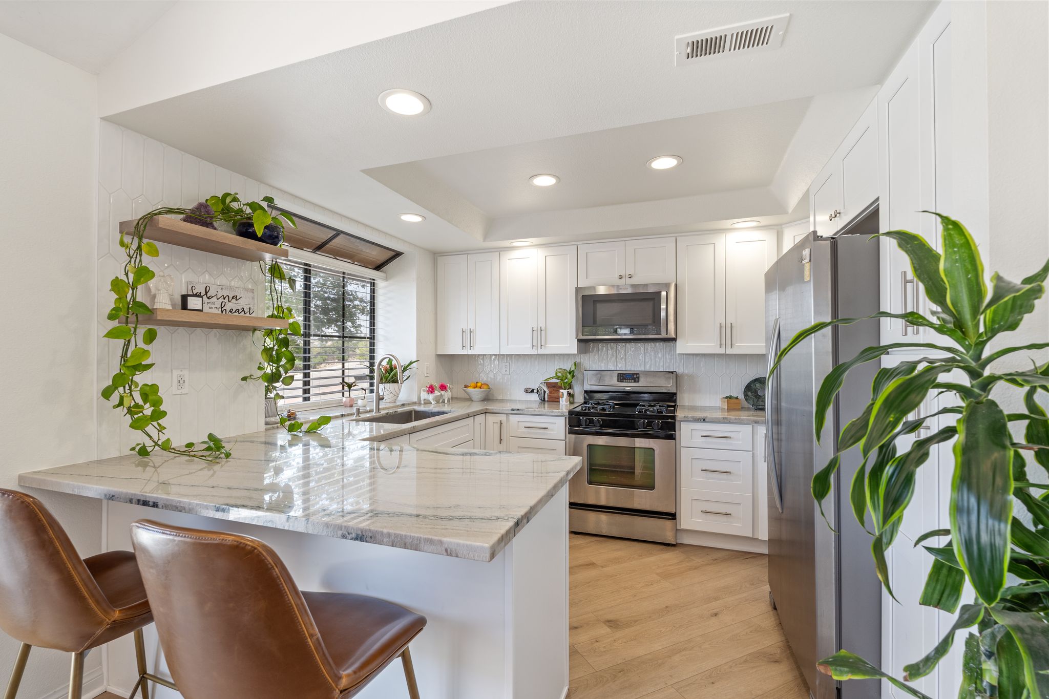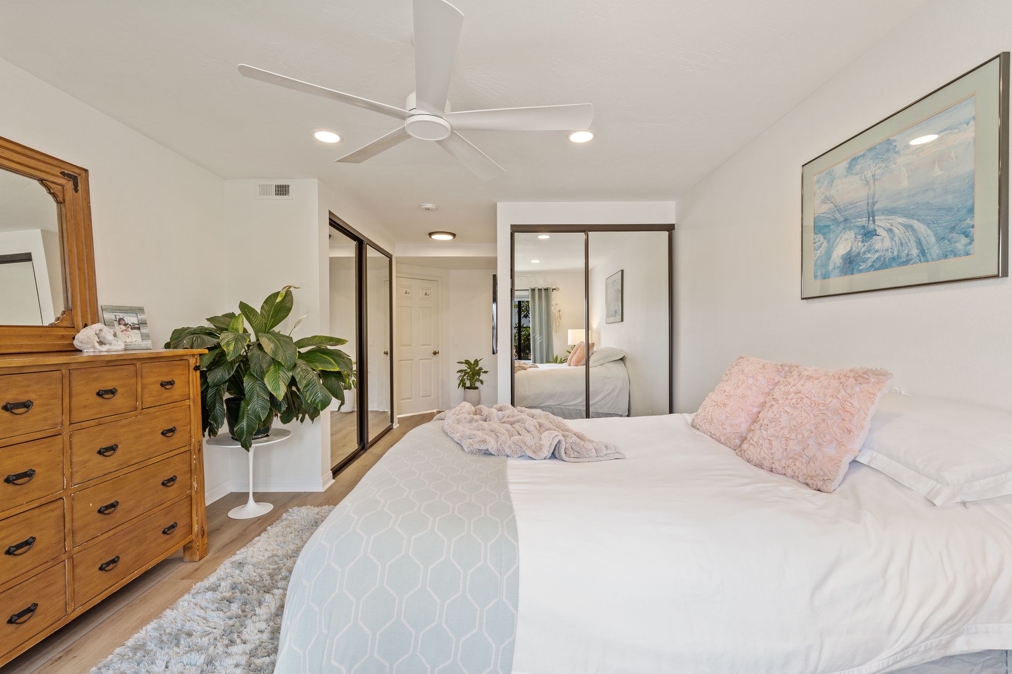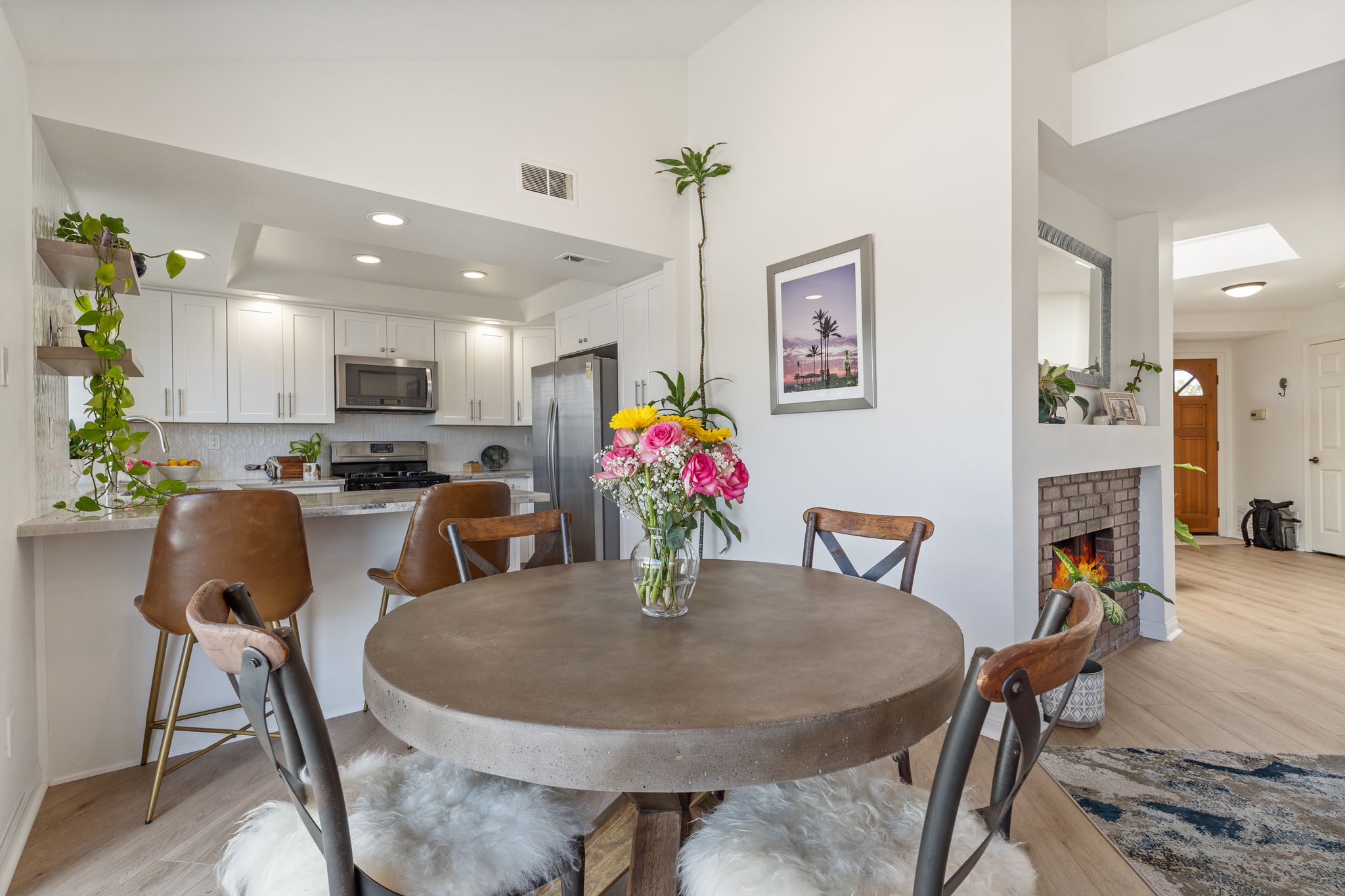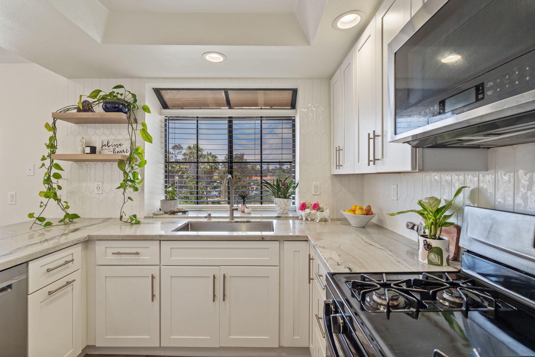 Discover the epitome of coastal serenity in this impeccably upgraded 2-bedroom, 2-bathroom home spanning 1,153 sqft in the heart of Carlsbad! This stunning second-floor retreat captures both ocean breezes and breathtaking sunset views, offering a lifestyle of unparalleled comfort and beauty. Step inside to find a beautifully upgraded kitchen and master bath, showcasing high-end solid wood cabinets with soft-close hardware, complemented by the stunning Aquarella Quartzite premium natural stone counters. The kitchen boasts elegant and modern white oak open shelving, perfect for displaying your finest kitchenware and decor. This spacious living area features high ceilings, exuding tranquility and charm. The master bedroom is a serene oasis, bathed in abundant natural light. The master bath encapsulates opulence and comfort with a designer walk-in shower and an LED light-up mirror, providing a spa-like experience at home. Every detail has been meticulously chosen to provide an experience of luxury, from the Minka Aire fans gracing the bedroom to the upgraded kitchen and bathrooms. The living area features Dura Lux waterproof LVP flooring throughout and a cozy fireplace that invites relaxation on cooler evenings. Step out onto the private balcony to enjoy the beauty of the sunset and the refreshing coastal air. Additional highlights include a brand new LG high-efficiency stackable washer and dryer, ensuring convenience and efficiency. The community offers fantastic amenities such as a pool and spa, perfect for unwinding after a long day. Situated in a sought-after location near top-rated schools, renowned golf courses, and within walking distance of nearby cafes, restaurants, and bars, this home provides the perfect blend of luxury, convenience, and coastal living. Experience the epitome of refined living in this meticulously crafted abode, where every detail speaks to exquisite taste and modern elegance. Welcome to your dream home in beautiful Carlsbad!