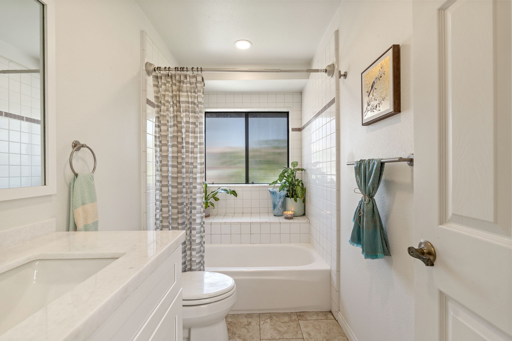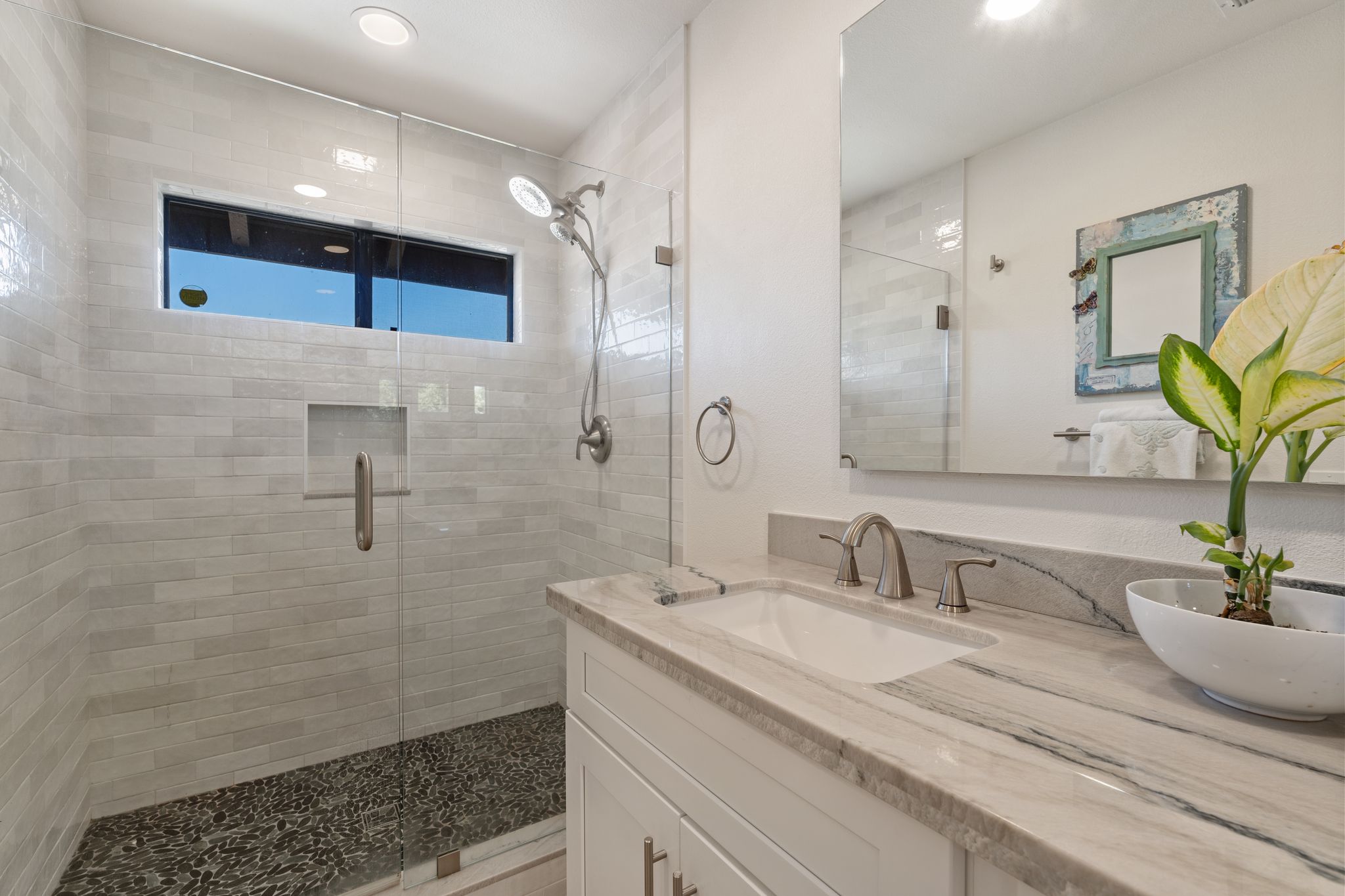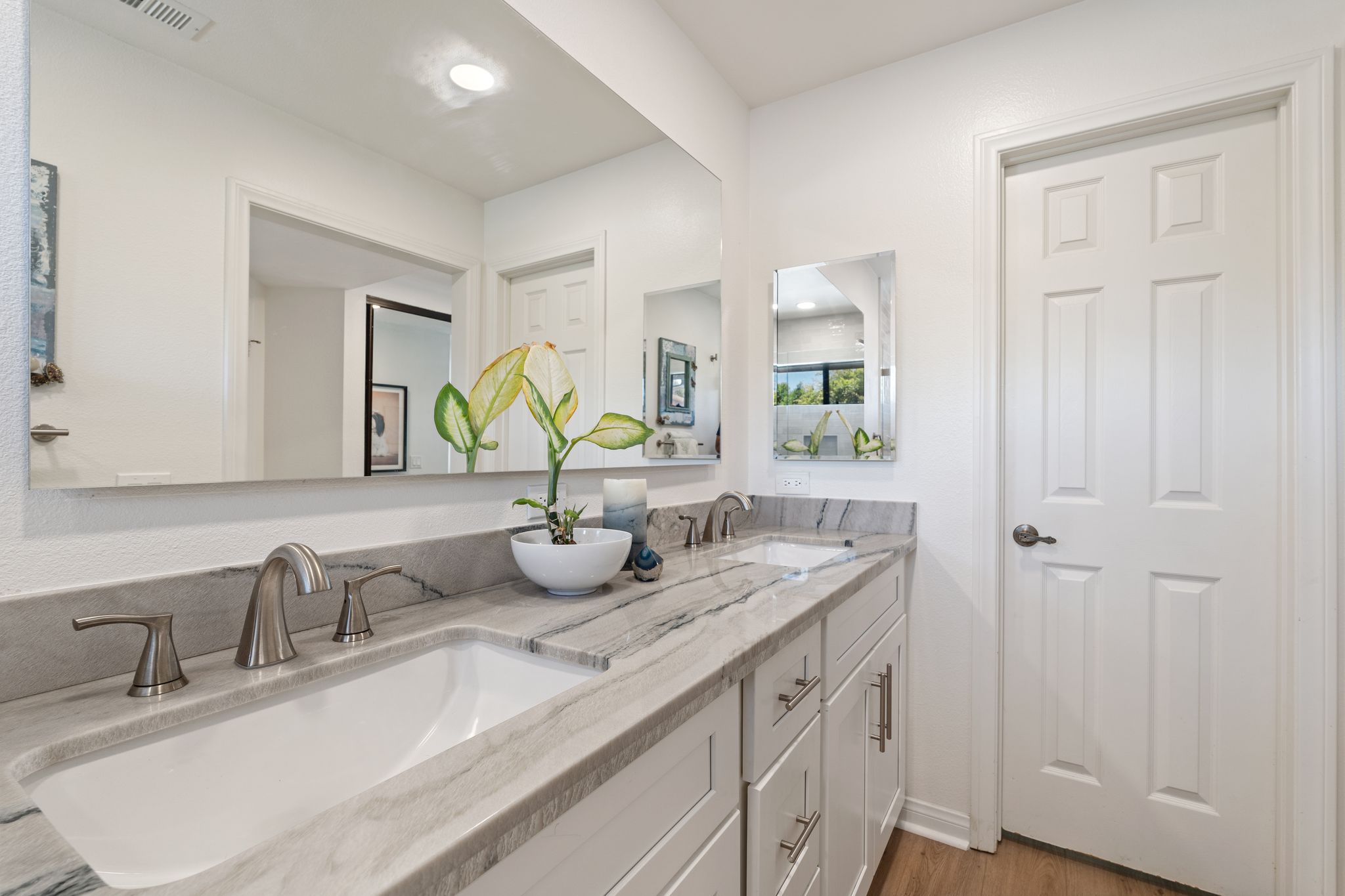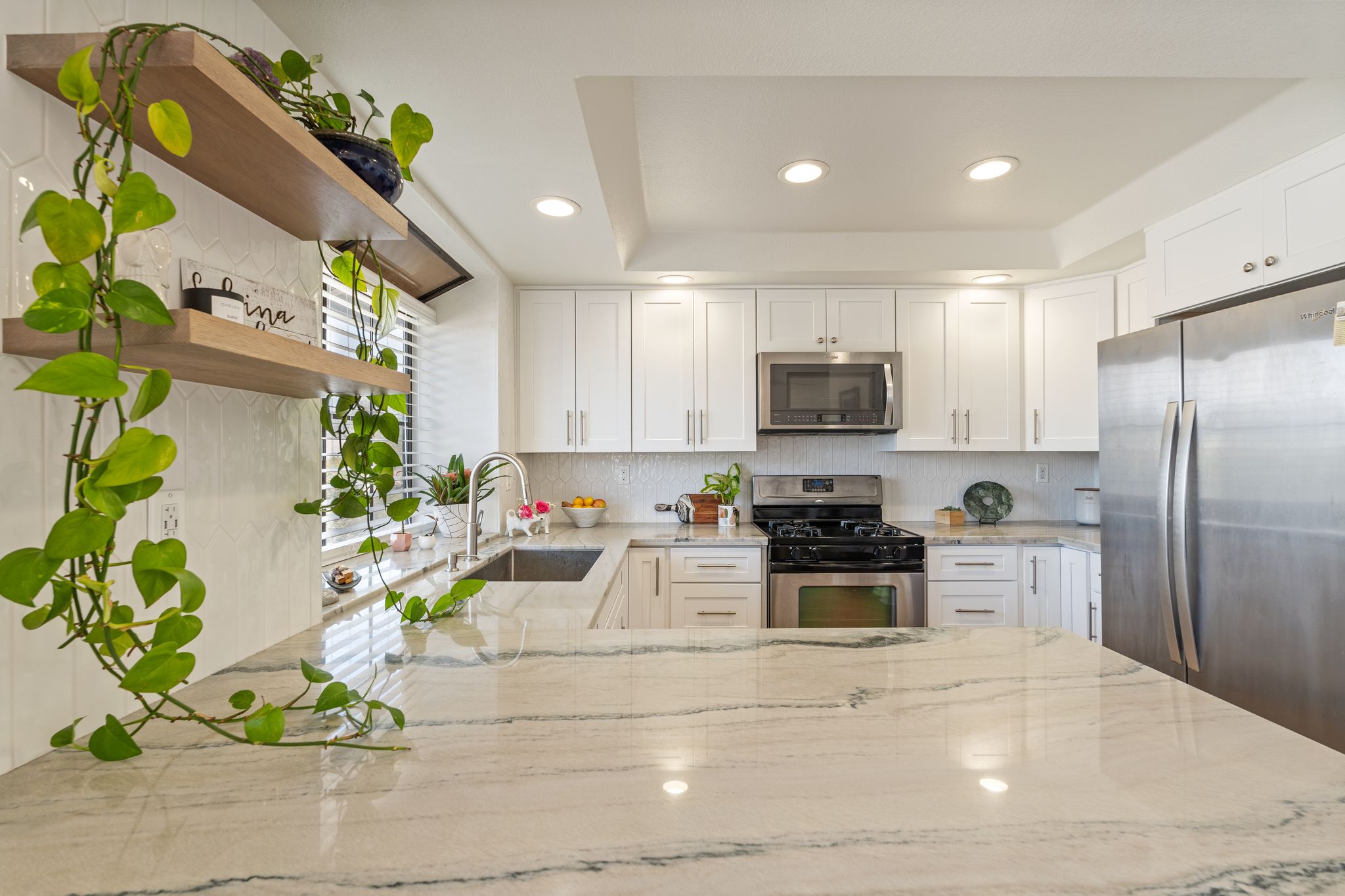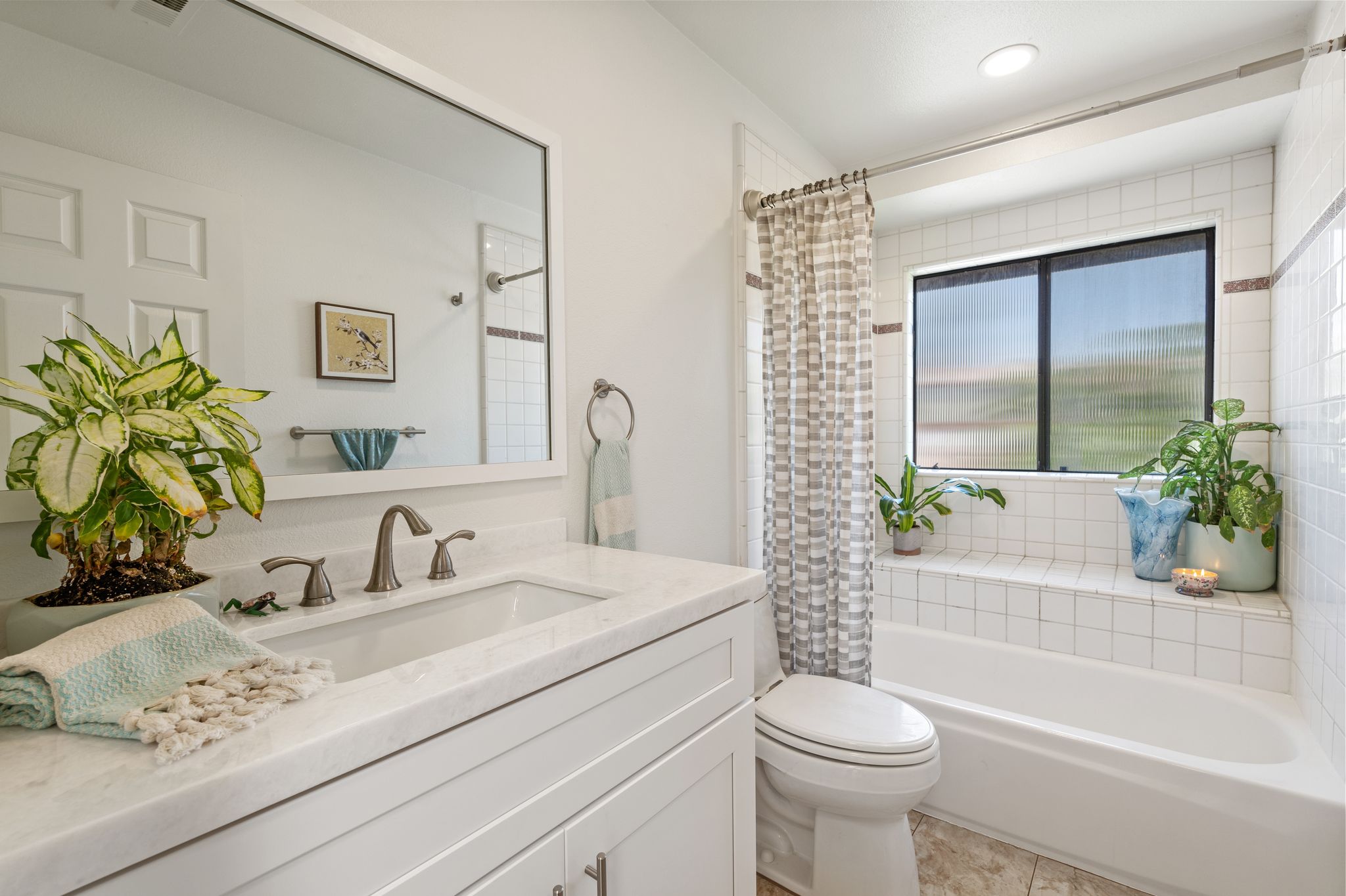 Discover the epitome of coastal serenity in this impeccably upgraded 2-bedroom, 2-bathroom home spanning 1,153 sqft in the heart of Carlsbad! This stunning second-floor retreat captures both ocean breezes and breathtaking sunset views, offering a lifestyle of unparalleled comfort and beauty. Step inside to find a beautifully upgraded kitchen and master bath, showcasing high-end solid wood cabinets with soft-close hardware, complemented by the stunning Aquarella Quartzite premium natural stone counters. The kitchen boasts elegant and modern white oak open shelving, perfect for displaying your finest kitchenware and decor. This spacious living area features high ceilings, exuding tranquility and charm. The master bedroom is a serene oasis, bathed in abundant natural light. The master bath encapsulates opulence and comfort with a designer walk-in shower and an LED light-up mirror, providing a spa-like experience at home. Every detail has been meticulously chosen to provide an experience of luxury, from the Minka Aire fans gracing the bedroom to the upgraded kitchen and bathrooms. The living area features Dura Lux waterproof LVP flooring throughout and a cozy fireplace that invites relaxation on cooler evenings. Step out onto the private balcony to enjoy the beauty of the sunset and the refreshing coastal air. Additional highlights include a brand new LG high-efficiency stackable washer and dryer, ensuring convenience and efficiency. The community offers fantastic amenities such as a pool and spa, perfect for unwinding after a long day. Situated in a sought-after location near top-rated schools, renowned golf courses, and within walking distance of nearby cafes, restaurants, and bars, this home provides the perfect blend of luxury, convenience, and coastal living. Experience the epitome of refined living in this meticulously crafted abode, where every detail speaks to exquisite taste and modern elegance. Welcome to your dream home in beautiful Carlsbad!
