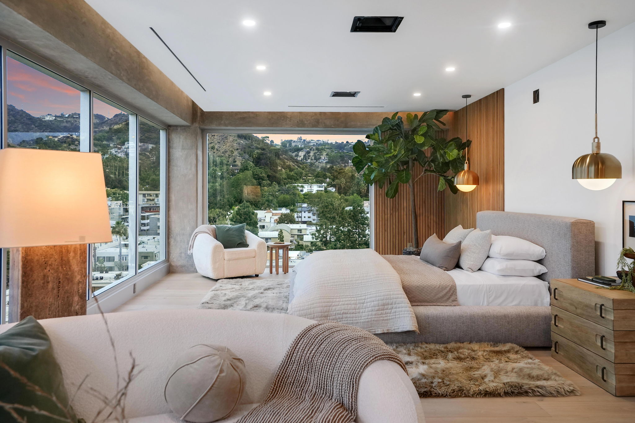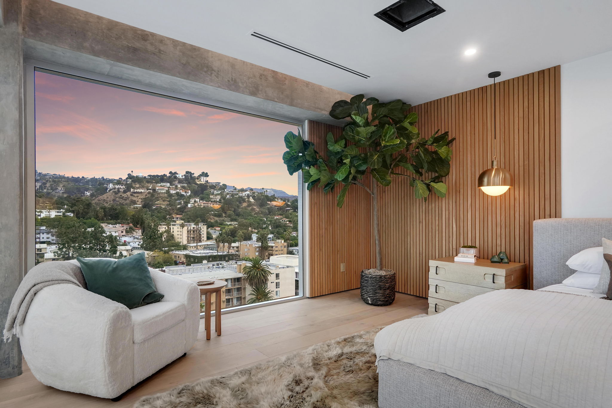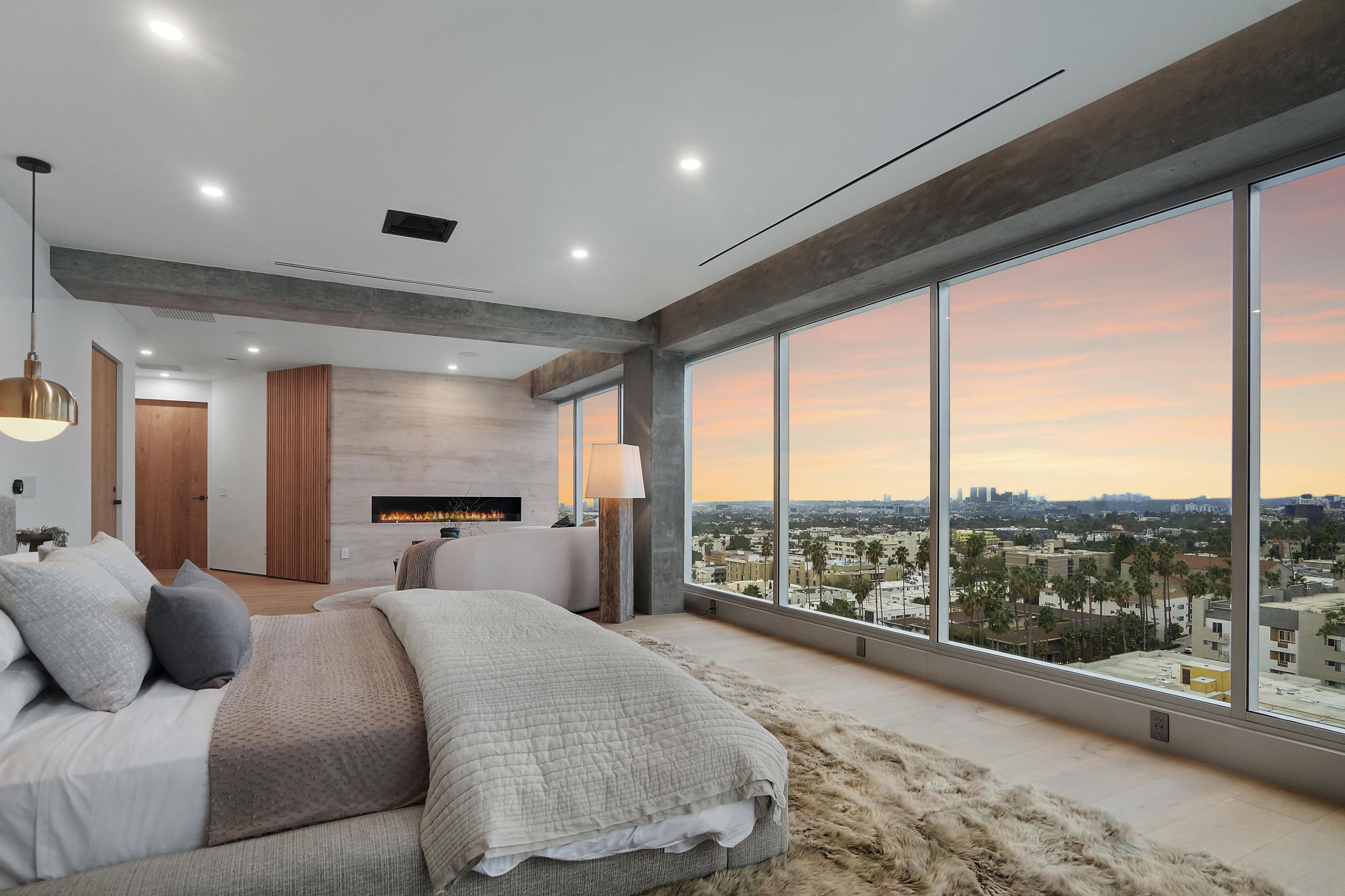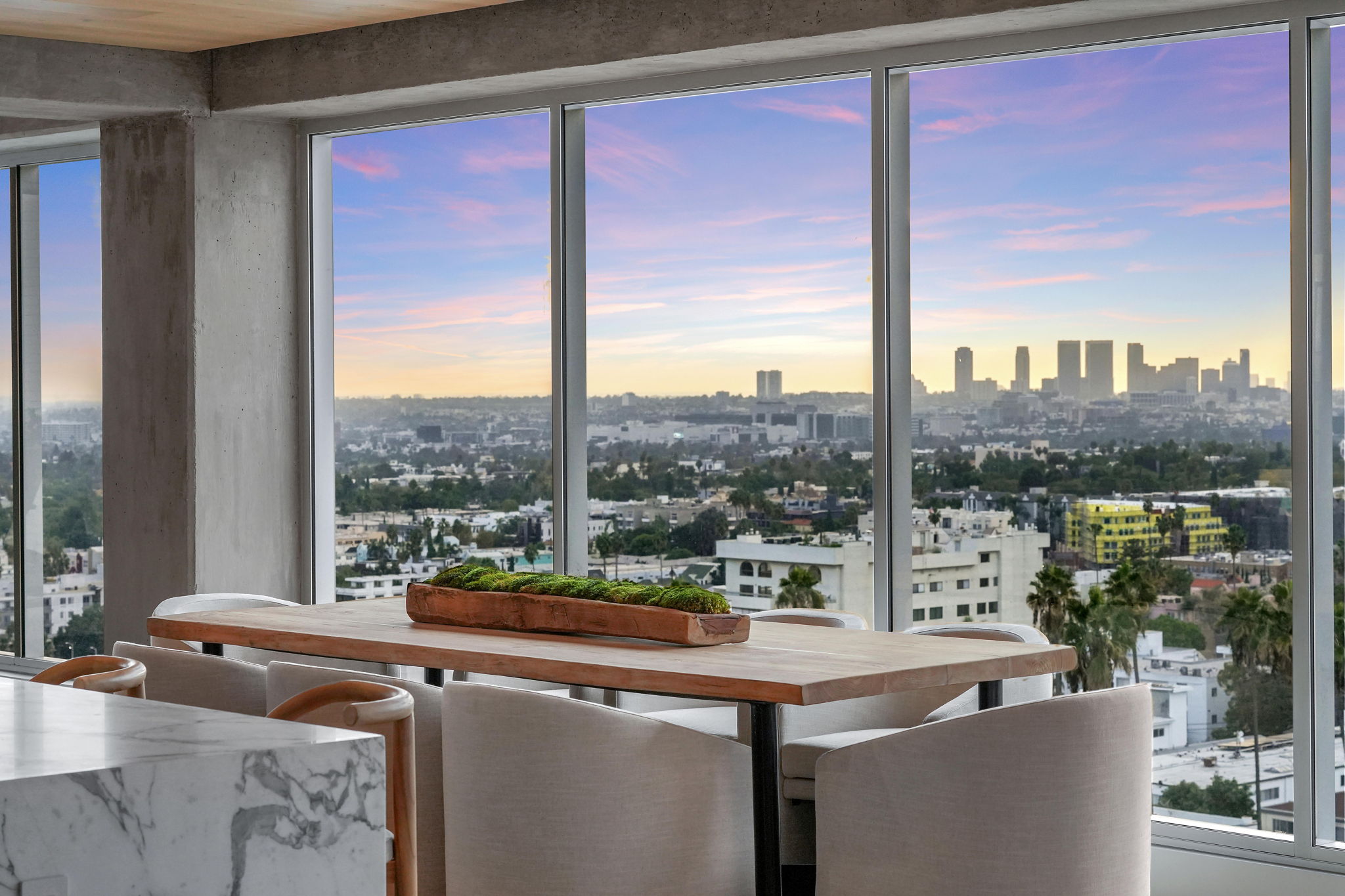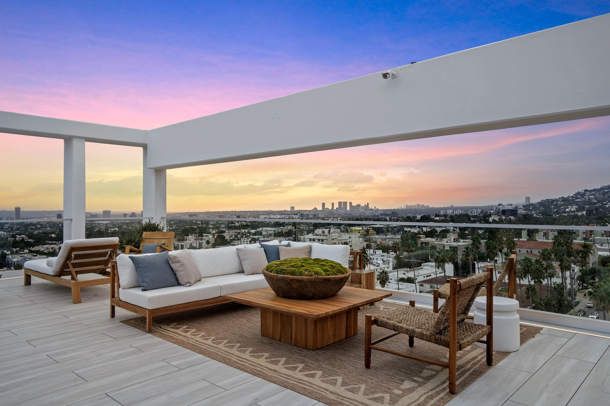 The most unique and exquisitely finished penthouse in all of Los Angeles, showcasing jetliner 360-degree views from the Hollywood sign to downtown and the ocean, as well as 1,685 sq. ft. of private outdoor deck space. Spanning half of the entire top floor in Hollywood's most exclusive full-service building with a newly remodeled lobby (w/valet, doorman, and 24-hour security), Penthouse East has undergone a painstaking 2-year remodel in which every inch has been meticulously curated to perfection, creating the most sophisticated and mesmerizing residence in the entire city. Enter into 3,820 sq. ft. of interior living space, including 3 bedrooms, an office, 4 bathrooms, and an open living/dining room with a built-in bar, all surrounded by floor-to-ceiling glass windows and sliding doors. With the most luxuriously appointed finishes, from wide European oak flooring, to exposed concrete beams, to giant slabs of honed Calacatta Vagli marble and Travertine limestone throughout. A chef's kitchen is fitted with Gaggenau appliances and custom European cabinetry. The luxurious owner's suite boasts a separate sitting area, fireplace, and ensuite bathroom with a free-standing soaking tub, spa-like shower, custom-cut Travertine sink, and an oversized showroom-style walk-in closet with automatic LED lights and privacy glass. The Penthouse offers complete smart home technology and two movie projector systems that drop from the ceiling, in both the living room and primary bedroom, with built-in surround sound. The level of craftsmanship and quality, with a combination of a well-thought-out floor plan and breathtaking amenities, is truly astonishing. 4 dedicated parking spaces are included with the PH. Building amenities include a 24-hour valet, doorman, security, swimming pool, recreation room, fitness center, dog park, and more. An unrivaled offering compared to other luxury condos when considering the design and quality of finishes, size/scale, unobstructed views from the Griffith Observatory to the Pacific Ocean, and outdoor deck space that will not only speak to you but impact you in the most profound way possible. Penthouse East (3,580 sq. ft. of interior living space with 2,885 sq. ft. exterior deck) is also available to purchase for an additional $7,495,000, completing the entire top floor of the building.