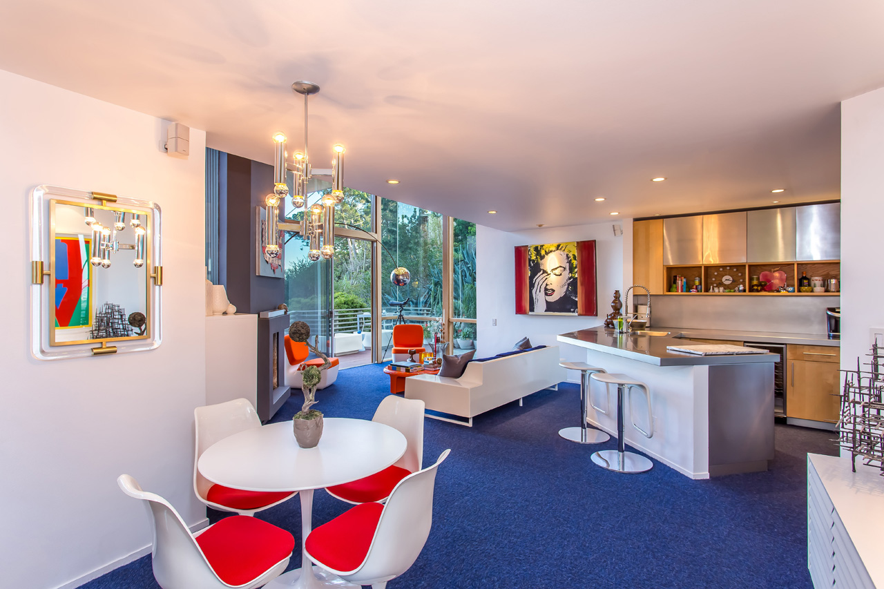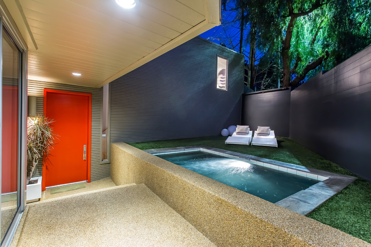 This stunning mid-century architectural in the Outpost Estates is prestigiously located on a quiet and desirable cul-de-sac street. Meticulously renovated and maintained, seamlessly blending the indoor space with the outdoors. The home offers city and canyon views, a relaxing outdoor plunge pool and garden, and a curated interior design. The garage has been thoughtfully adapted as a workspace and is included in the total square footage.