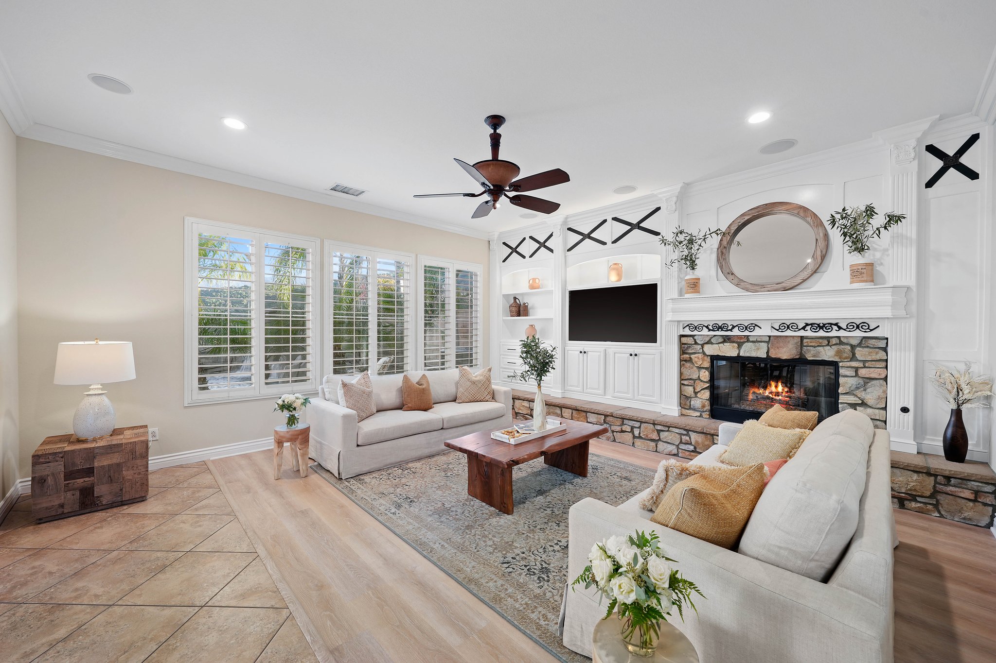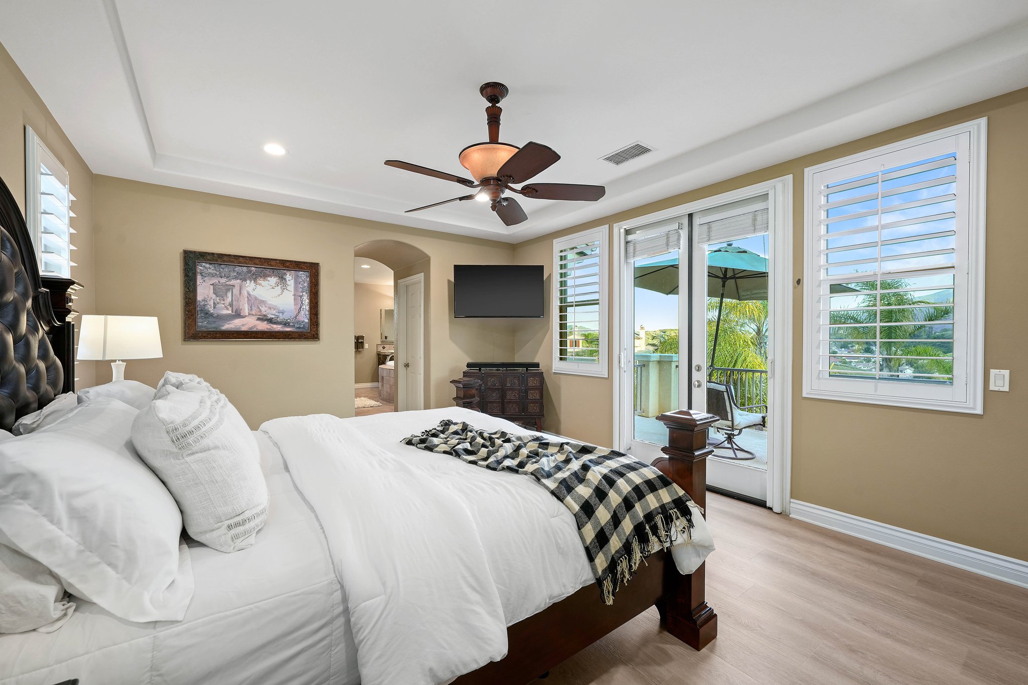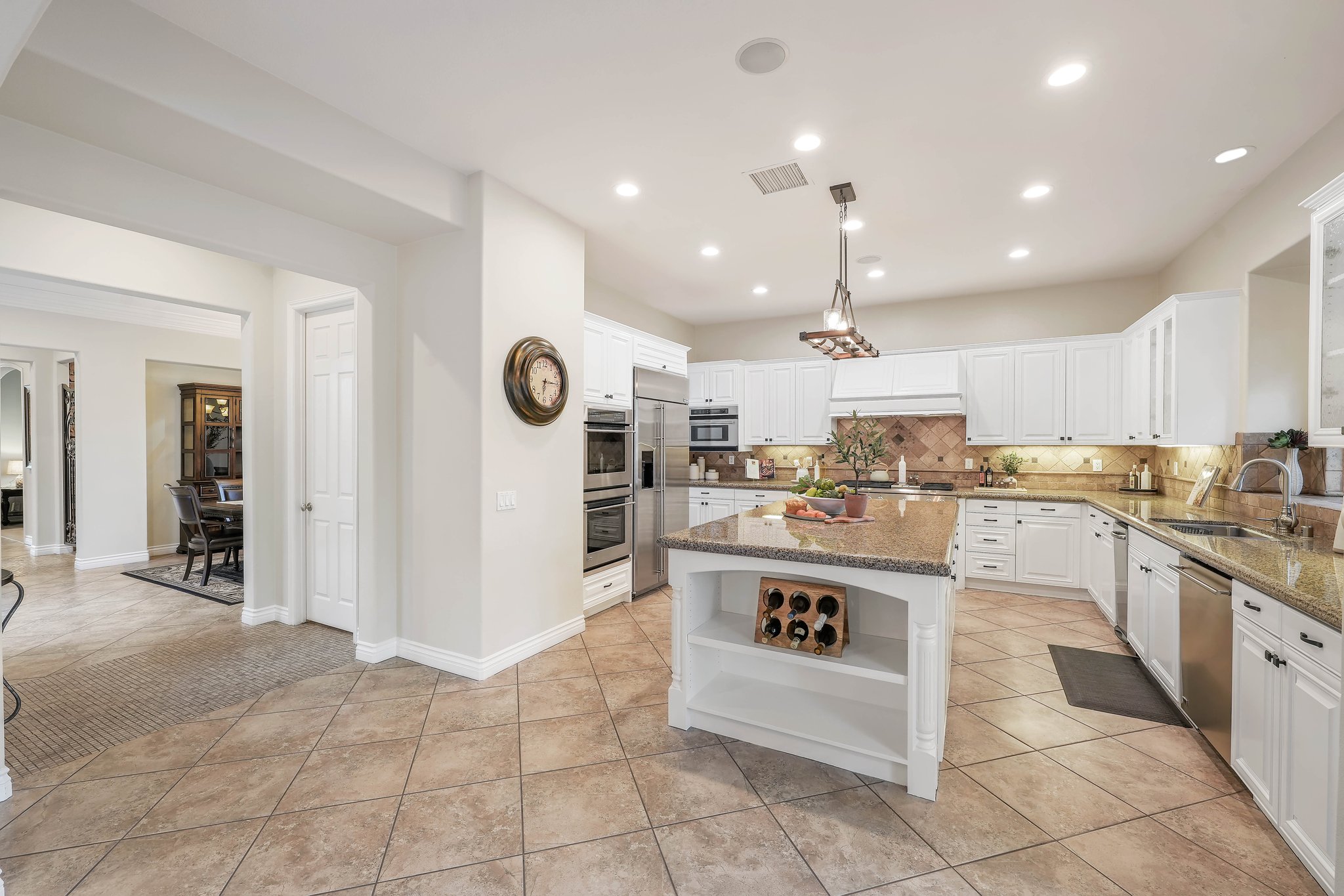 Welcome to the pinnacle of luxurious living amidst a breathtaking backdrop of the mountains within the exclusive gated community of The Retreat. This extraordinary property seamlessly blends ample space with functional design and premium amenities. The open concept main floor showcases a great room, impressive outdoor atrium/courtyard, expansive dining area, home office, wine cellar, family room, and a well-equipped gourmet kitchen which is the heart of the home with its expansive central island and convenient breakfast area. Through the sliding glass doors lies your own private backyard sanctuary, featuring a sprawling pool, spa, and barbecue area perfect for entertaining. The primary bedroom boasts a generously-sized walk-in closet and a spa-like primary bath, complete with dual vanities, a luxurious jacuzzi tub, and a tri-head shower. For the ultimate entertainment experience, this residence includes a dedicated home theater adorned with surround sound speakers, perfect for hosting unforgettable movie nights.