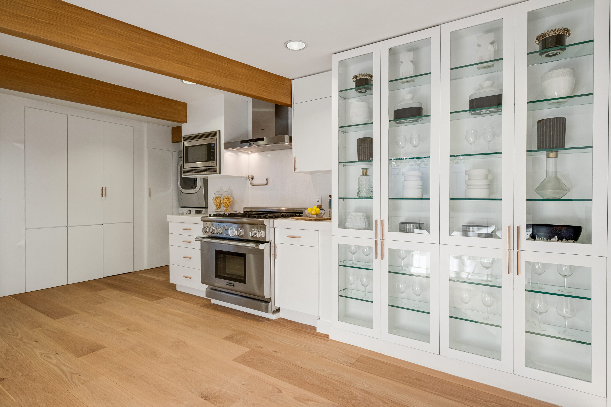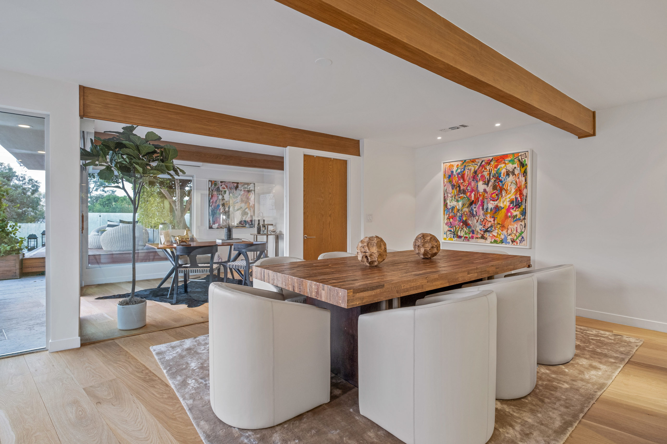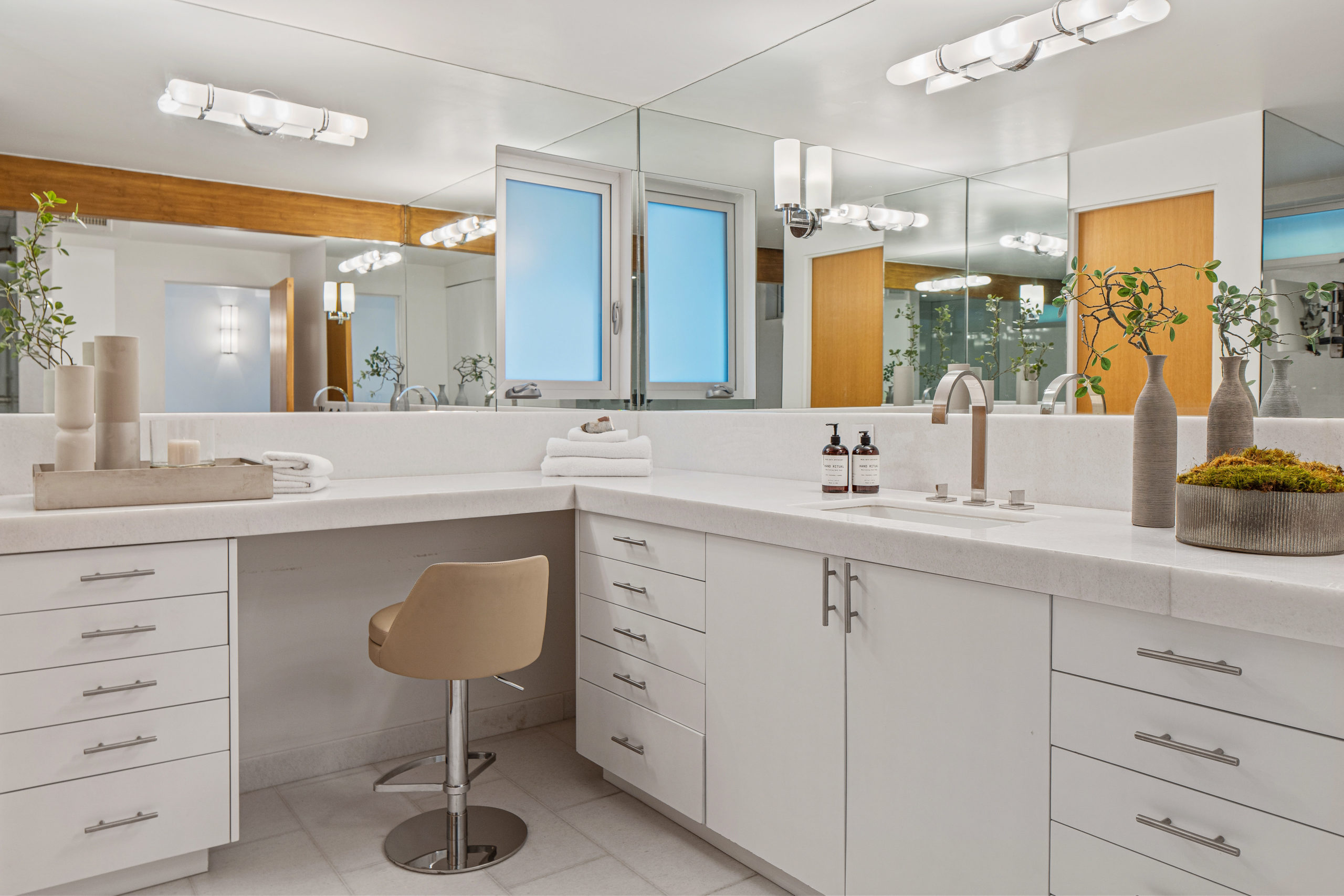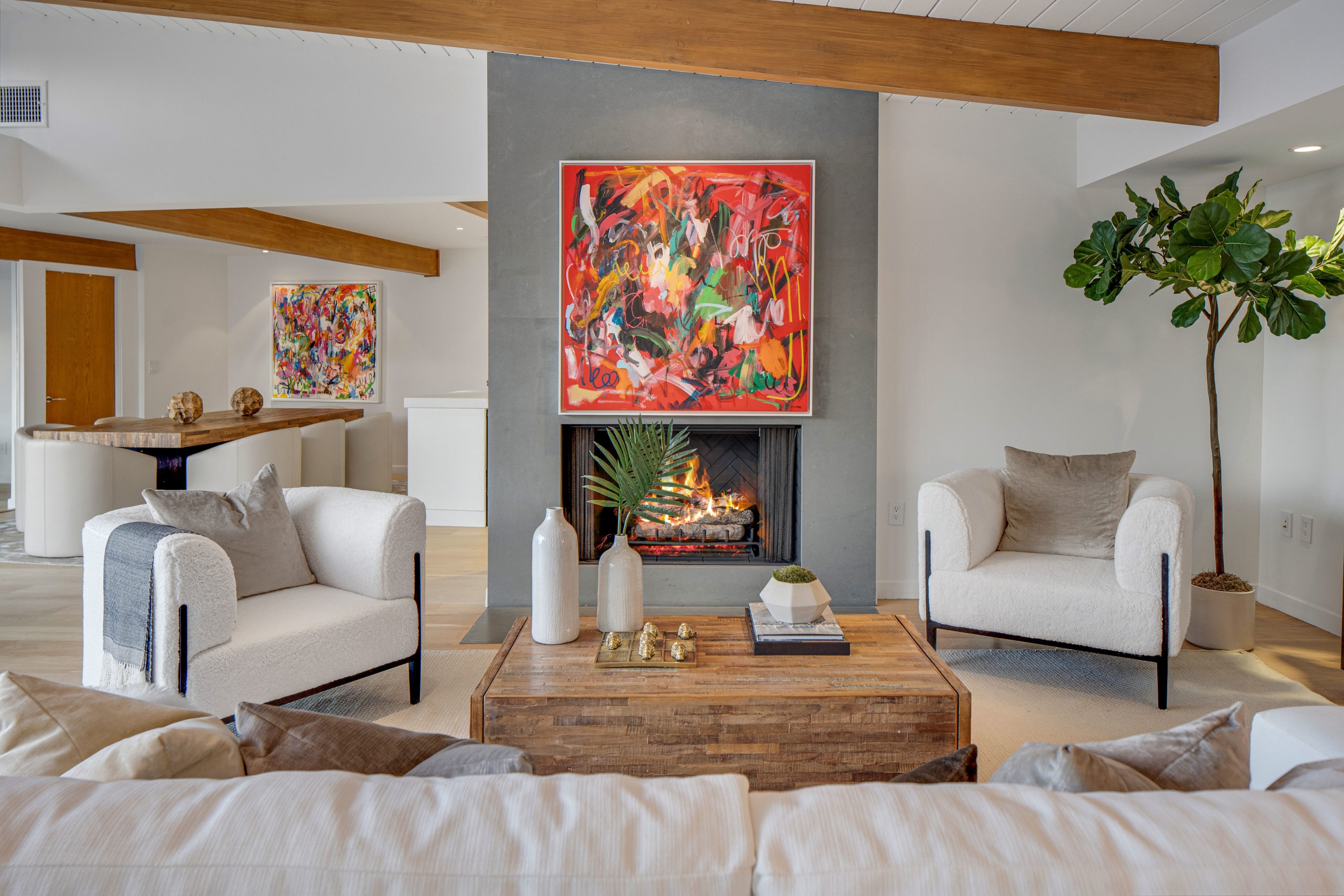 The Bergman Residence, built in 1955, is a quintessential post-and-beam contemporary situated on a quiet cul-de-sac in lower Sunset Plaza with spectacular city views. This unique single-story 3bed/4bath masterpiece boasts a Chef’s kitchen with white Thassos marble countertops, custom built-ins and oak flooring throughout, motorized blinds, natural gas and water filtration systems, and a stone fireplace overlooking a grassy yard with large pool/dual-spa and sweeping treetop and city lights views. Walls of glass provide abundant natural light and allow for seamless enjoyment of the indoor/outdoor spaces. Large outdoor deck extension boasts outside kitchen with black granite worktops, additional spa, fire pit and all-weather Sonos sound system. The garage was converted into a fully soundproofed commercial-grade music studio with acoustic design by legendary acoustician Vincent van Haaff. Beautiful dual-entrance/exit driveway with 4-car parking.