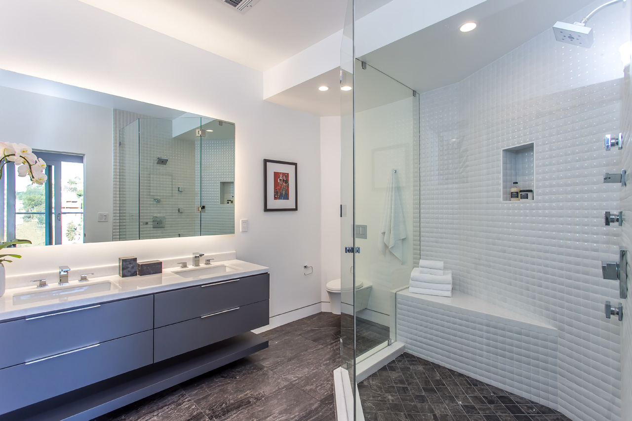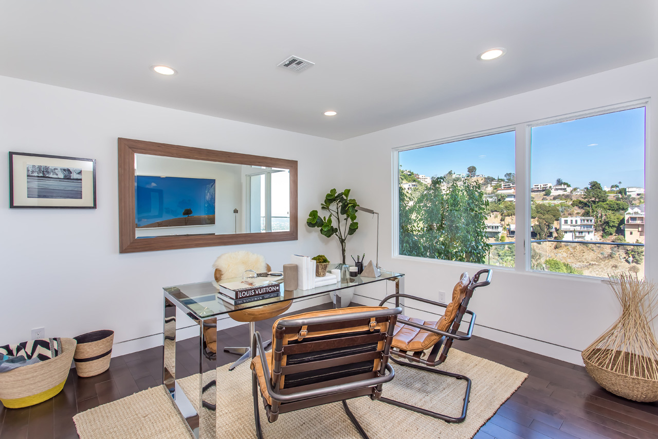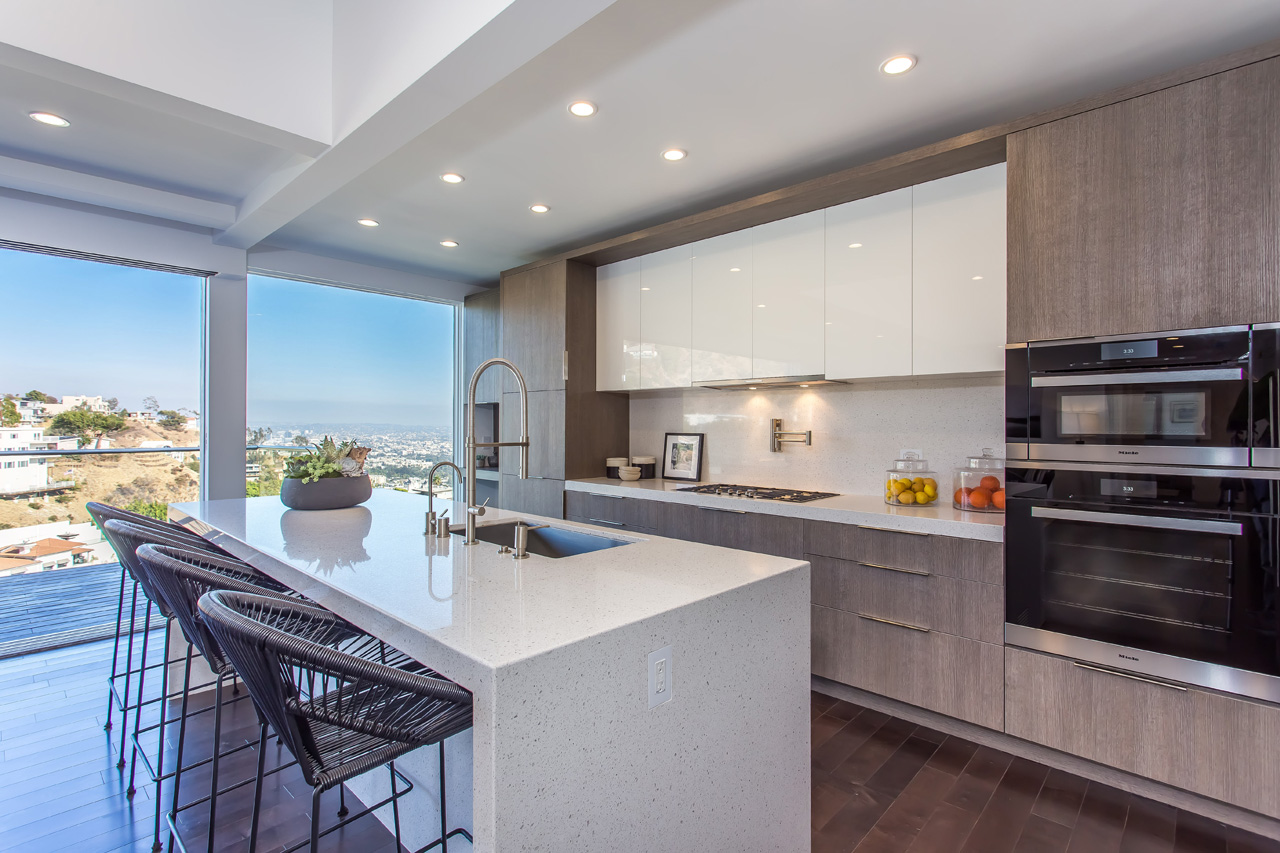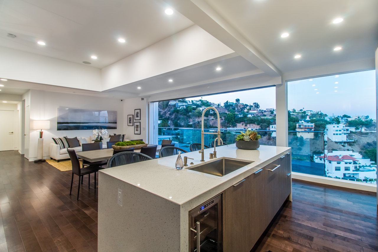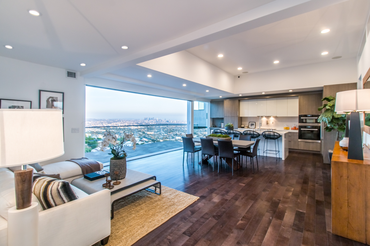 Privately set above the Sunset Strip with sweeping views of Downtown and the city lights, this completely renovated contemporary home boasts refined finishes and tasteful design. An open floor plan with high ceilings allows natural light to pour though the floor-to-ceiling glass doors, and tremendous deck space and a large rooftop deck allow for entertaining and outdoor enjoyment. The large master suite offers an outdoor patio and private spa, with a large bathroom and a finely finished walk-in closet. Every en-suite bedroom enjoys panoramic views. Four-car parking with additional street availability and quietly located on a cul-de-sac street.