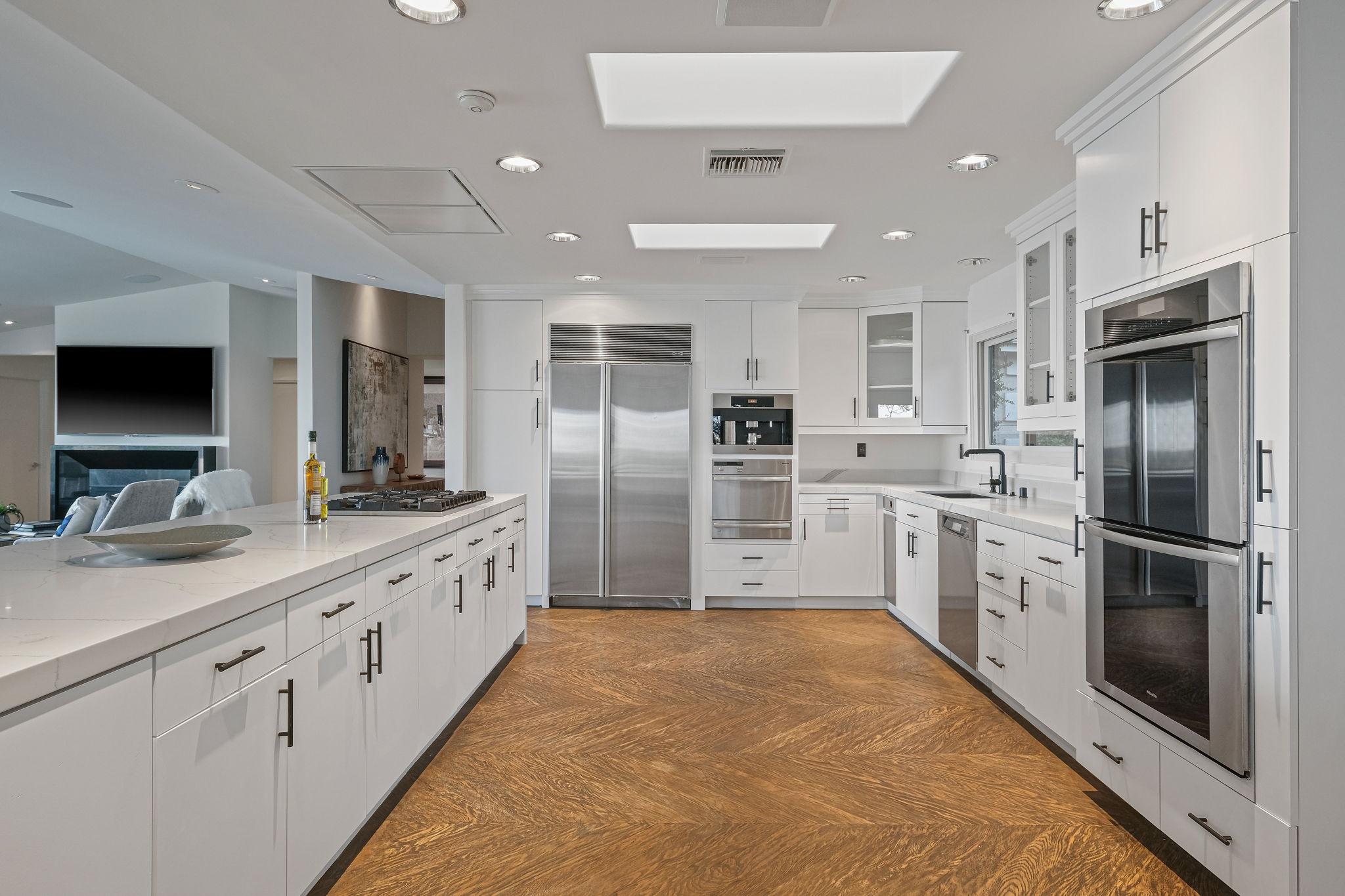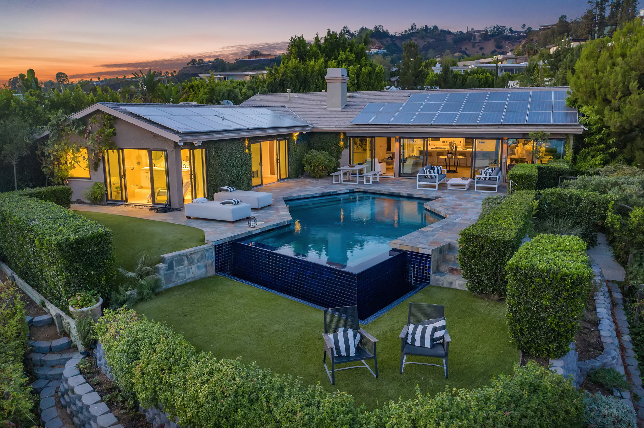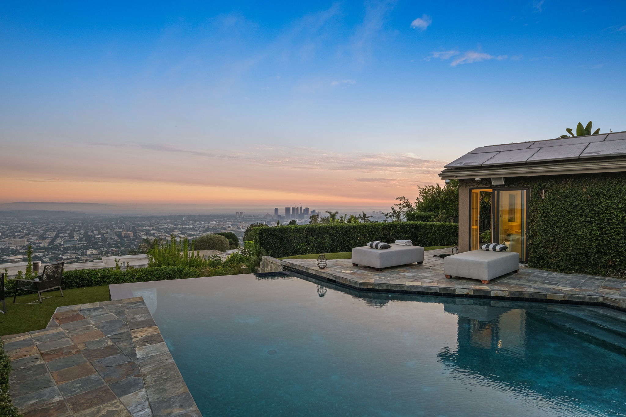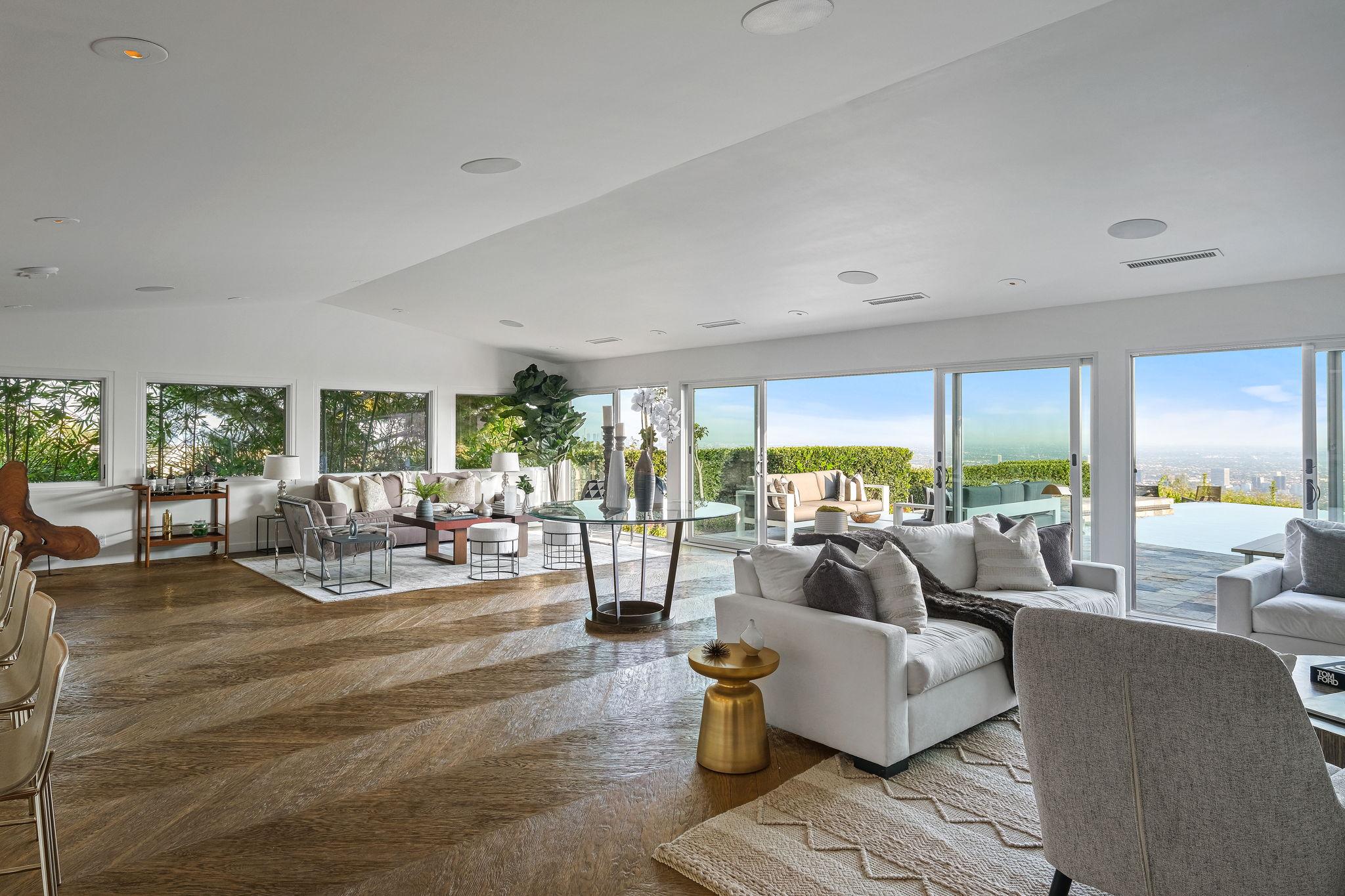 Nestled on a small cul-de-sac off Blue Jay Way in the exclusive Bird Streets, this is unquestionably the finest view promontory available in the Bird Streets, allowing an 8,000+ sq. ft. house to be built. The current single-story jewel-box boasts unobstructed 180-degree jetliner views from Downtown LA to the Ocean. With an open floor plan, the living area offers ceilings and stunning herringbone-patterned wood floors. The recently remodeled chef’s kitchen opens to the striking view with a massive center island with gorgeous marble waterfall countertops and built-in seating for 6. An impressive owner’s suite opens out to the sleek infinity-edge pool, stone-tiled deck, and grassy yard with an outdoor kitchen/BBQ. 2-car garage with additional private driveway spaces. With complete privacy, timeless architecture, and unparalleled views, this is a once-in-a-lifetime opportunity to own such a mesmerizing home on such a desirable and flat parcel of land.