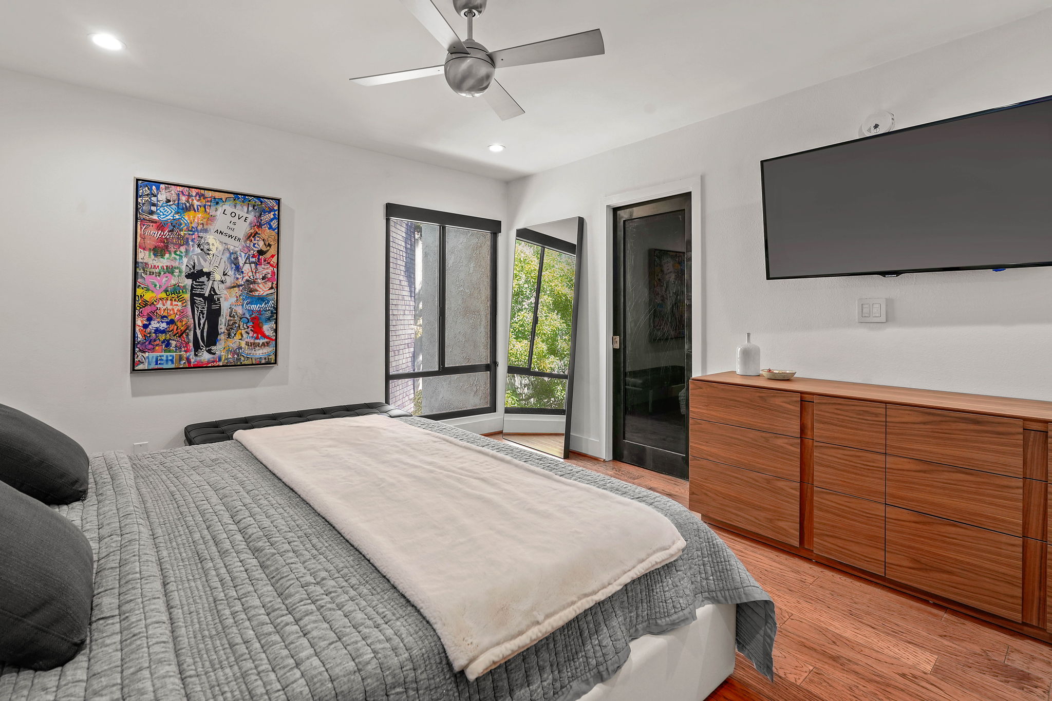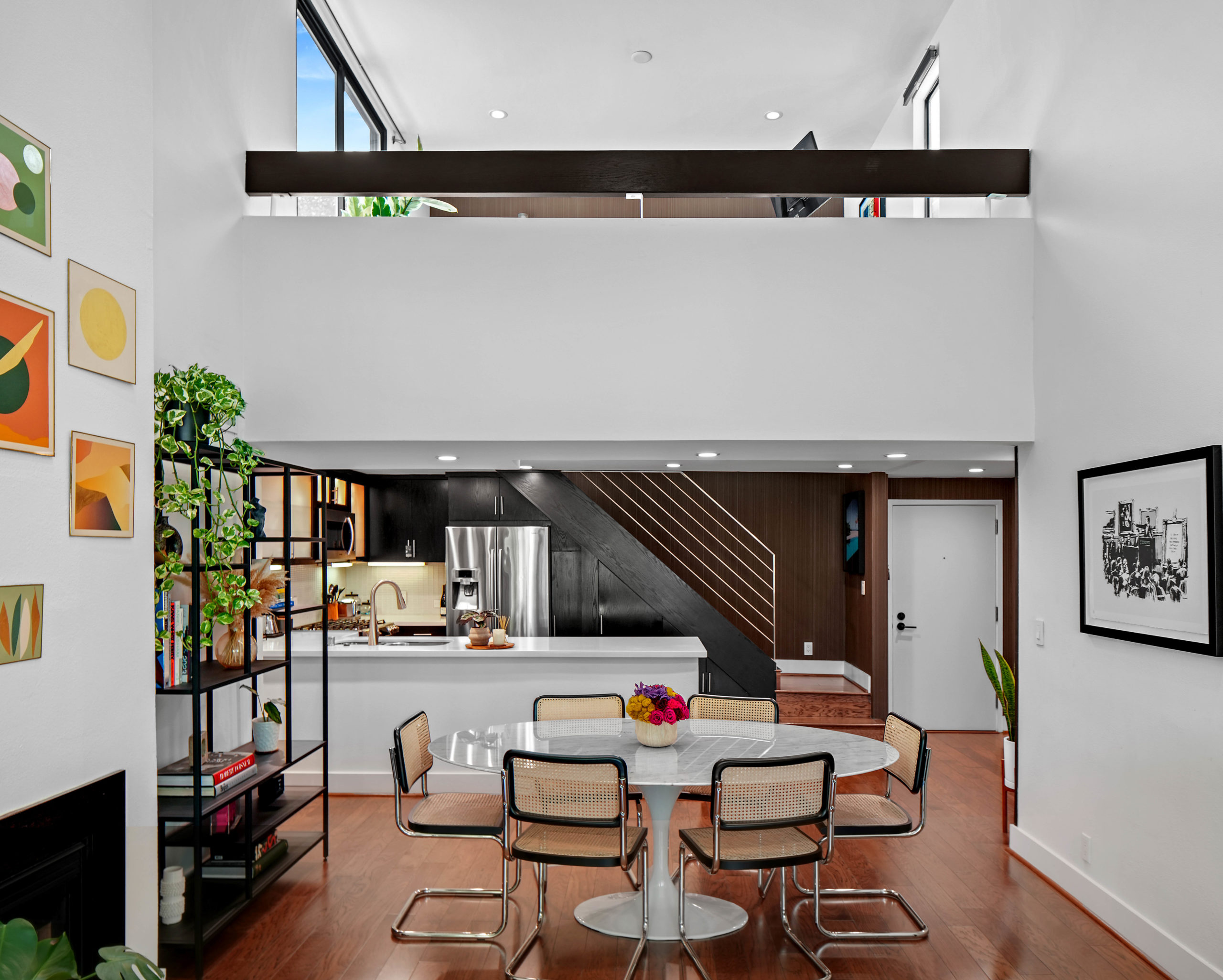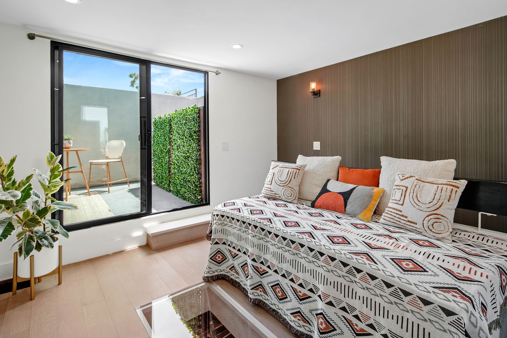 Situated in one of the most sought-after pockets of West Hollywood, this fully-updated two-bedroom, two-bathroom loft-style penthouse is one of the best units at the coveted Courtyards Condominiums. Featuring soaring ceilings, an ideal configuration with the 2 bedrooms set apart, a bonus loft/office space large enough to accommodate a third bed, as well as a beautiful private rooftop patio, this condo has been fully reimagined for the most discerning of buyers. The open floor plan is replete with top-of-the-line finishes and rich hardwood flooring, designer kitchen and bathrooms, Samsung appliances including in-unit washer/dryer, Google Nest thermostat, and LED lighting throughout. The master bedroom is equipped with blackout blinds and remote-operated Lutron lighting and fan switches. The condo is extremely quiet and private, with only one neighboring unit. Property amenities include side-by-side parking with two large storage units, pool, spa, gym, sauna, library/conference room, night security, an on-site manager and maintenance team. A few minutes walk from Gelsons, Melrose Farmers Market, the best new restaurants and storefronts, this truly is the perfect West Hollywood condo. All furniture is available for separate purchase.
