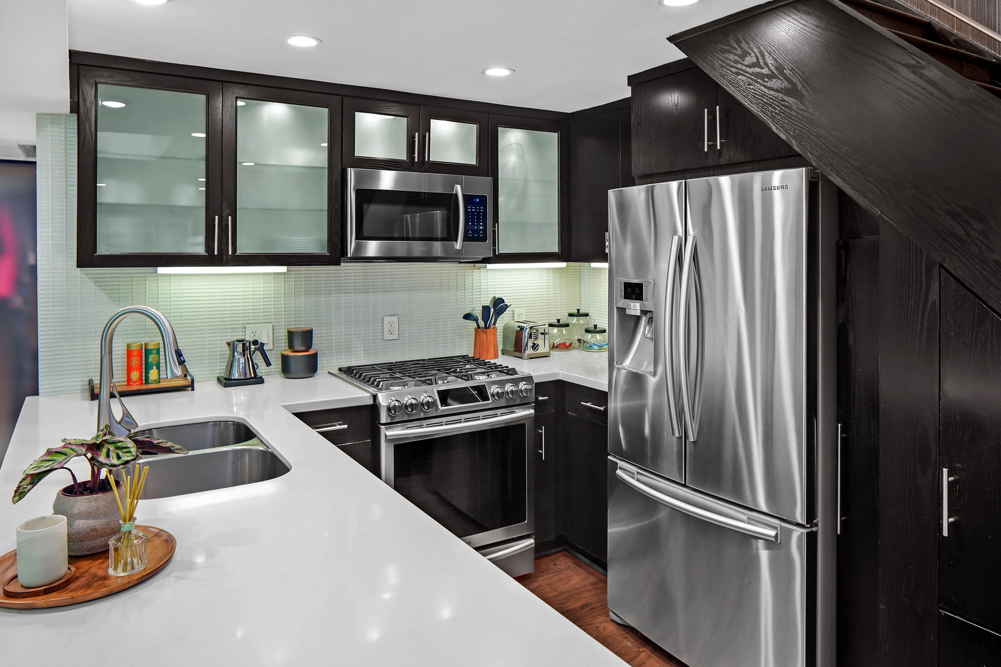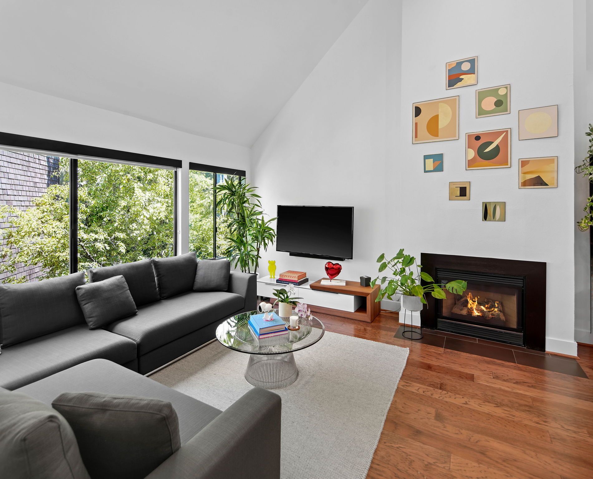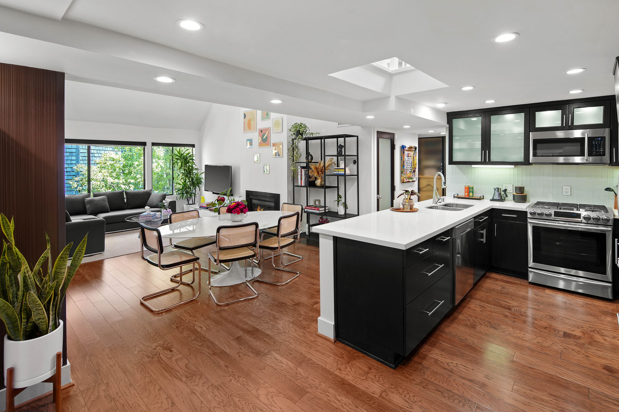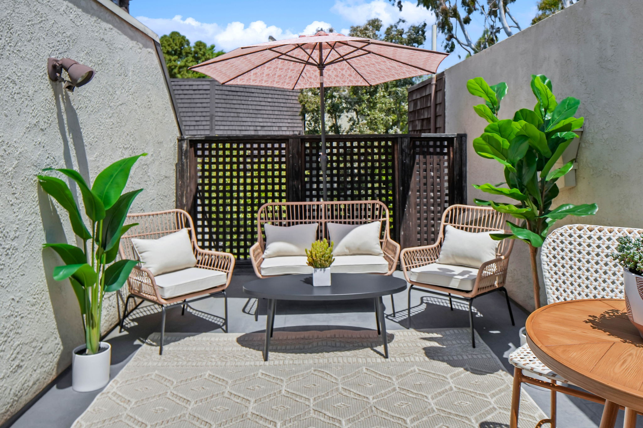 Situated in one of the most sought-after pockets of West Hollywood, this fully-updated two-bedroom, two-bathroom loft-style penthouse is one of the best units at the coveted Courtyards Condominiums. Featuring soaring ceilings, an ideal configuration with the 2 bedrooms set apart, a bonus loft/office space large enough to accommodate a third bed, as well as a beautiful private rooftop patio, this condo has been fully reimagined for the most discerning of buyers. The open floor plan is replete with top-of-the-line finishes and rich hardwood flooring, designer kitchen and bathrooms, Samsung appliances including in-unit washer/dryer, Google Nest thermostat, and LED lighting throughout. The master bedroom is equipped with blackout blinds and remote-operated Lutron lighting and fan switches. The condo is extremely quiet and private, with only one neighboring unit. Property amenities include side-by-side parking with two large storage units, pool, spa, gym, sauna, library/conference room, night security, an on-site manager and maintenance team. A few minutes walk from Gelsons, Melrose Farmers Market, the best new restaurants and storefronts, this truly is the perfect West Hollywood condo. All furniture is available for separate purchase.